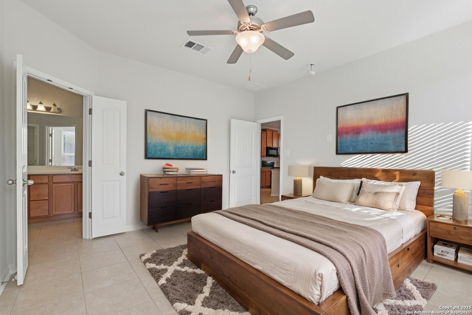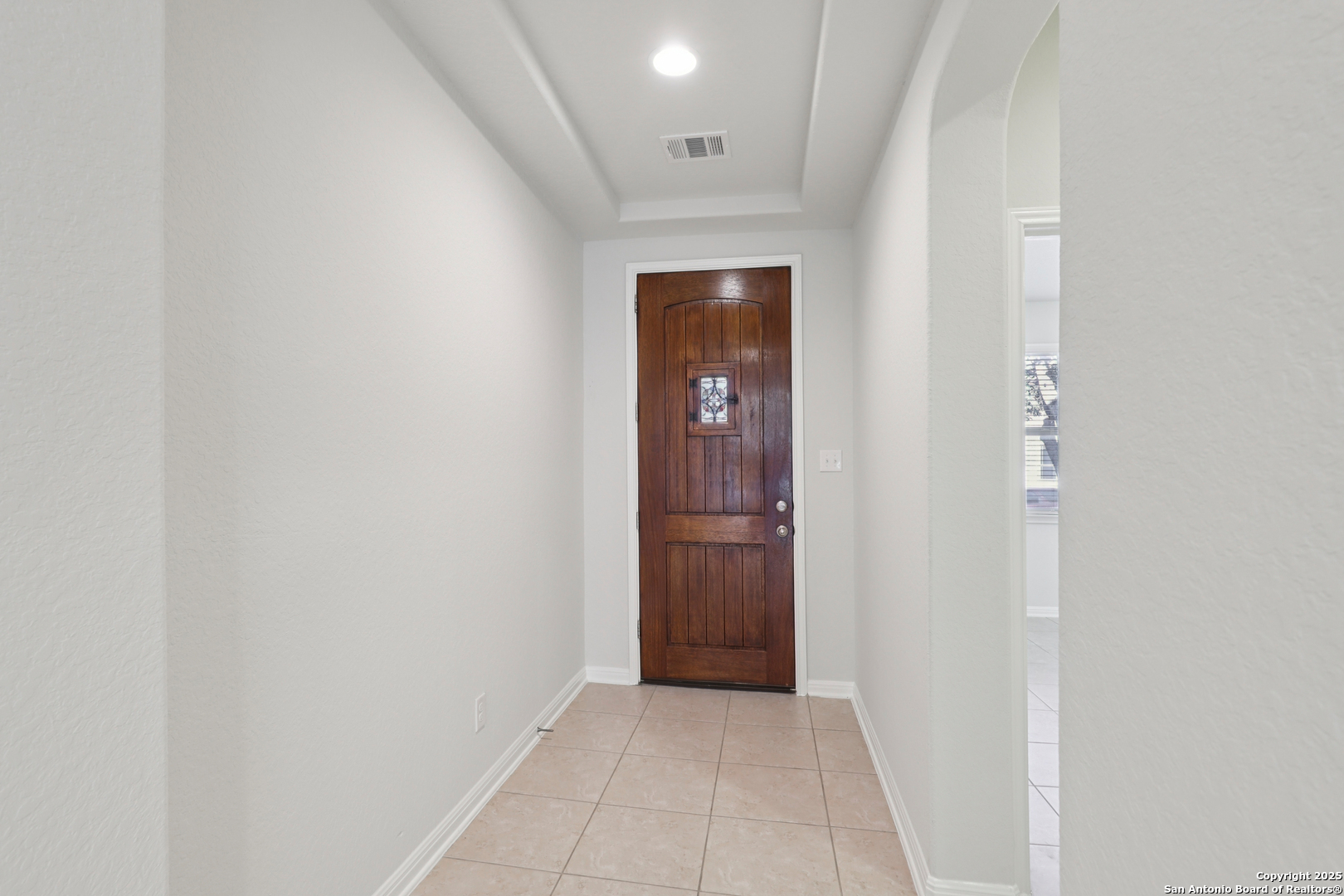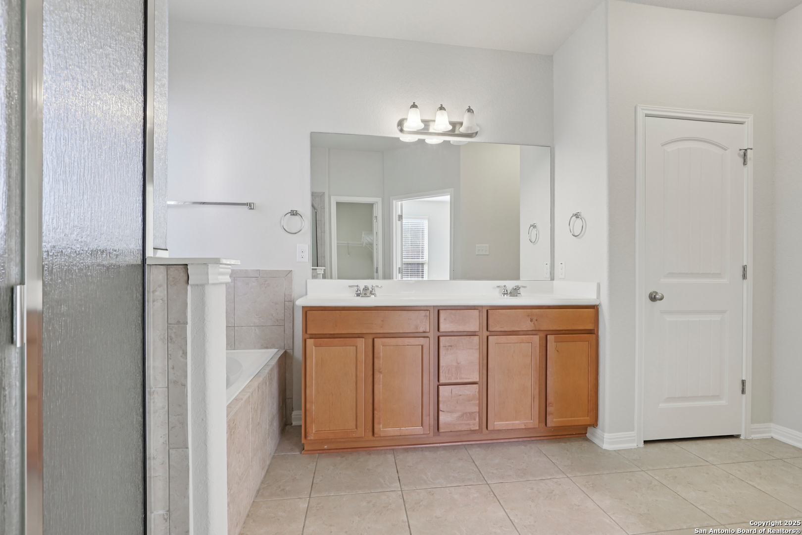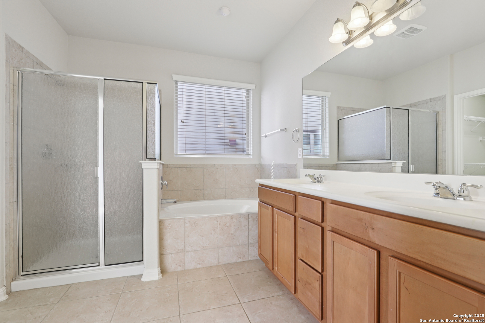 Welcome to 112 Grand Vista, a charming single-story home featuring 3 bedrooms, a versatile flex room, and 2 bathrooms. A beautiful front archway and mature trees create an inviting curb appeal. Inside, the open floorplan is filled with natural light, with a spacious kitchen that includes a large island with seating and abundant cabinet space. The primary suite offers a private bathroom with dual vanities, a garden tub, and a separate shower. Enjoy outdoor living on the large covered patio overlooking a fully fenced backyard for added privacy. Recent updates include a new A/C unit with a 10-year warranty, prep for a water softener, and a dishwasher in excellent condition. Located in the Cibolo Vistas community, residents enjoy access to a park, pool, and splash pad!