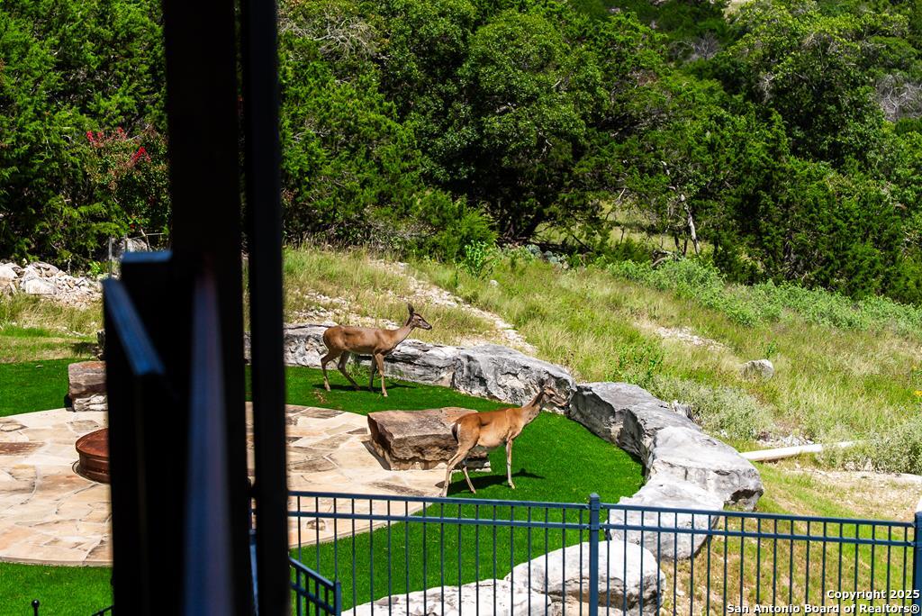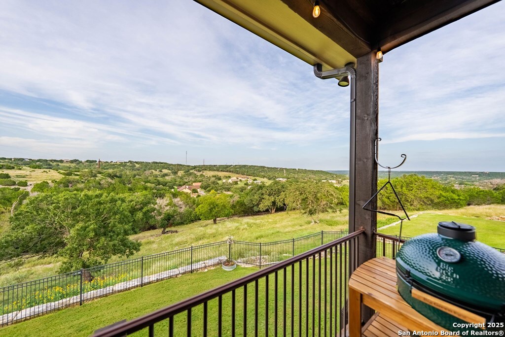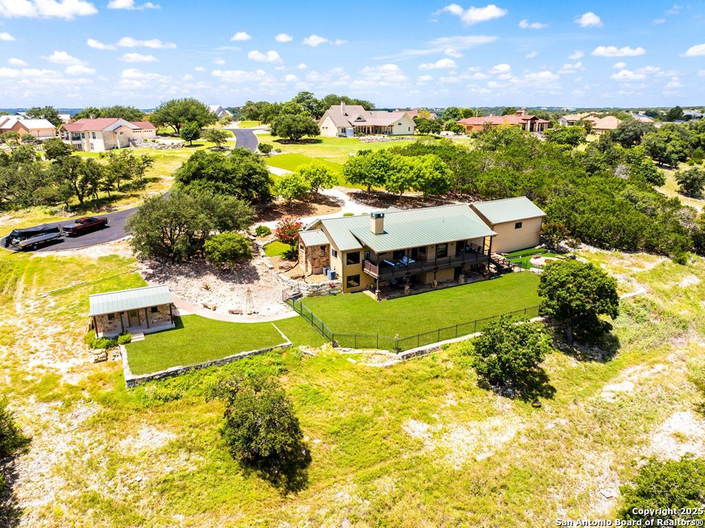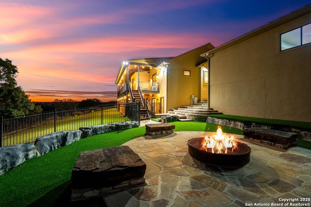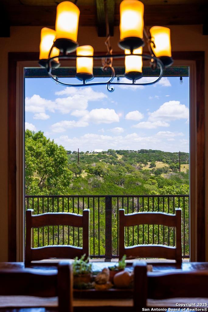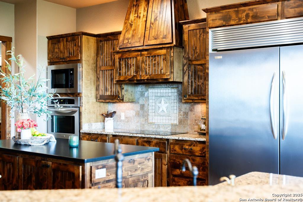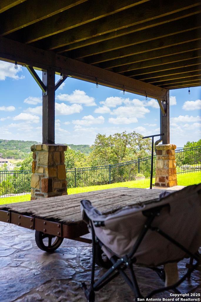 Experience Hill Country living situated high in the hills in this beautifully designed Centurion Homes residence, surrounded by mature landscaping and stunning views. Enjoy peaceful mornings & evening gatherings on multiple east-facing patios, perfect for spotting deer & exotic antelope. Inside, a spacious living area features a stone fireplace, wood beams, & plantation shutters for a cozy yet elegant feel. The kitchen is a chef's dream with a built-in oversized refrigerator, brand new Frigidaire microwave & Frigidaire induction cooktop, ample storage, prep space, a central island ideal for entertaining. The private primary suite offers its own outdoor sitting area a luxurious bath w/soaking tub, dual vanities, & walk-in shower. Two main-level bedrooms share a Jack-and-Jill bath, while the downstairs includes a game room with wet bar, additional bedroom, office space, full bath, and patio with a fire pit ready for entertaining your guests. A three-car garage & separate workshop with its own garage door provide generous storage and workspace. Cypress Springs Estates is just minutes back into Kerrville. Amenities include gated entrance, pool, pickleball/tennis, TOP rated Ingram ISD.