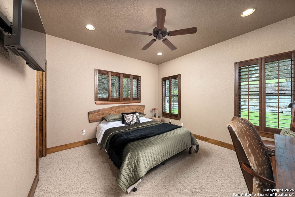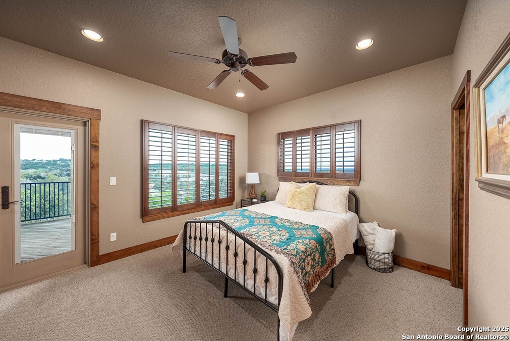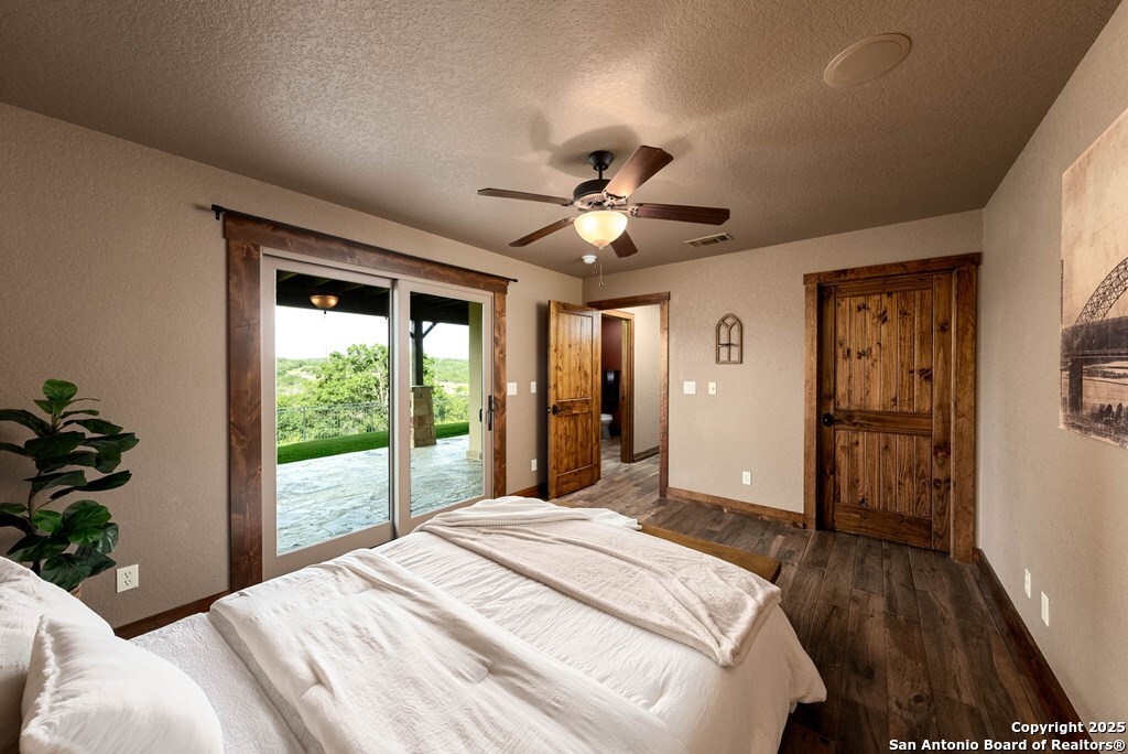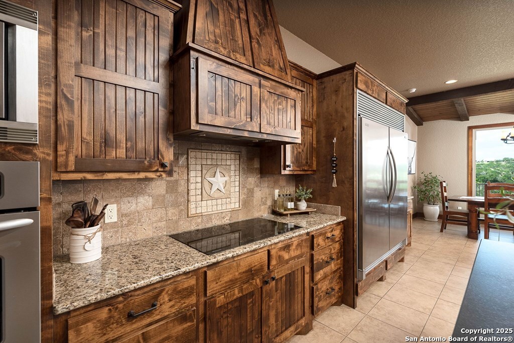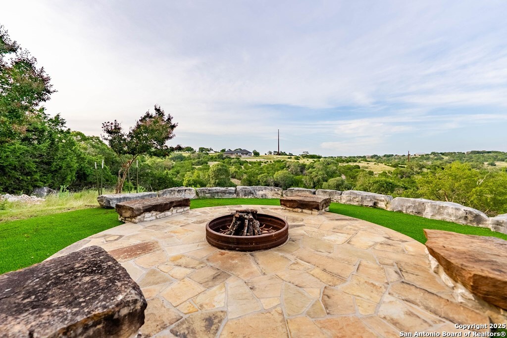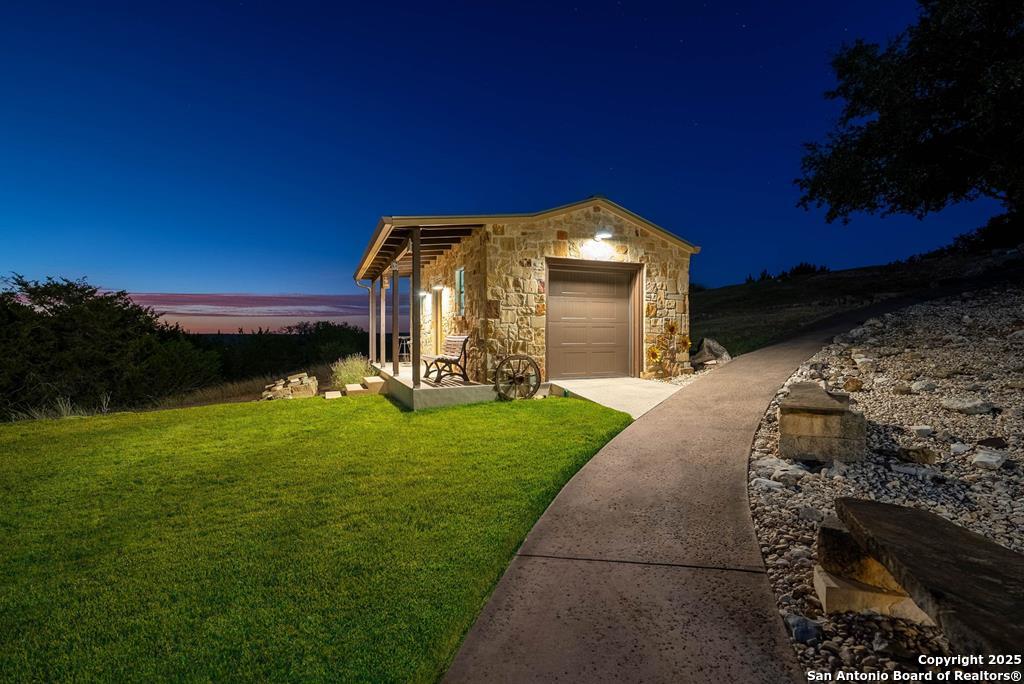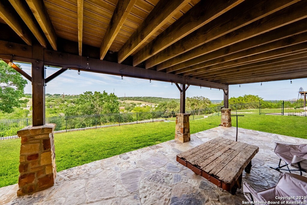 Experience Hill Country living situated high in the hills in this beautifully designed Centurion Homes residence, surrounded by mature landscaping and stunning views. Enjoy peaceful mornings & evening gatherings on multiple east-facing patios, perfect for spotting deer & exotic antelope. Inside, a spacious living area features a stone fireplace, wood beams, & plantation shutters for a cozy yet elegant feel. The kitchen is a chef's dream with a built-in oversized refrigerator, brand new Frigidaire microwave & Frigidaire induction cooktop, ample storage, prep space, a central island ideal for entertaining. The private primary suite offers its own outdoor sitting area a luxurious bath w/soaking tub, dual vanities, & walk-in shower. Two main-level bedrooms share a Jack-and-Jill bath, while the downstairs includes a game room with wet bar, additional bedroom, office space, full bath, and patio with a fire pit ready for entertaining your guests. A three-car garage & separate workshop with its own garage door provide generous storage and workspace. Cypress Springs Estates is just minutes back into Kerrville. Amenities include gated entrance, pool, pickleball/tennis, TOP rated Ingram ISD.