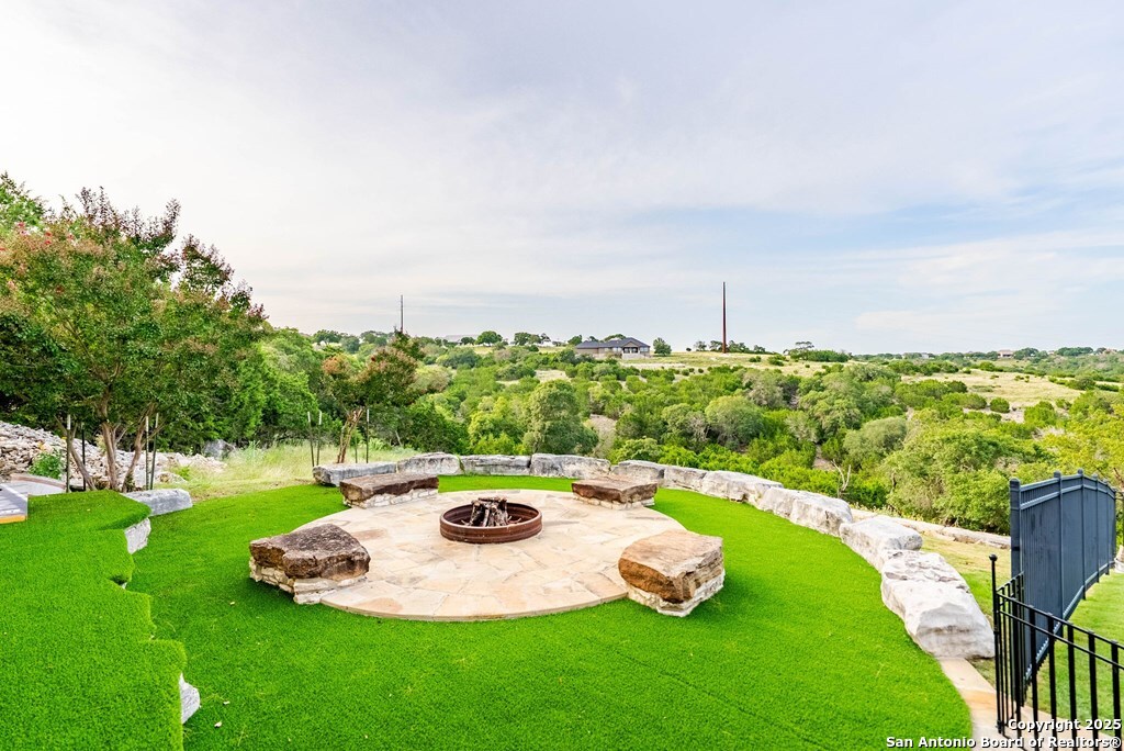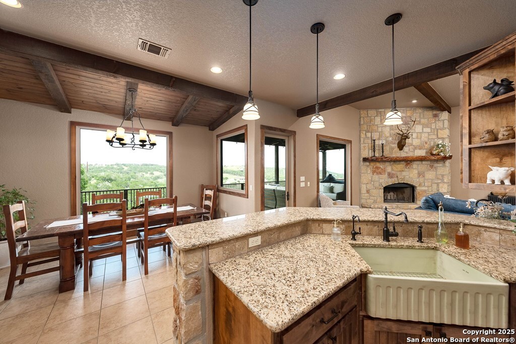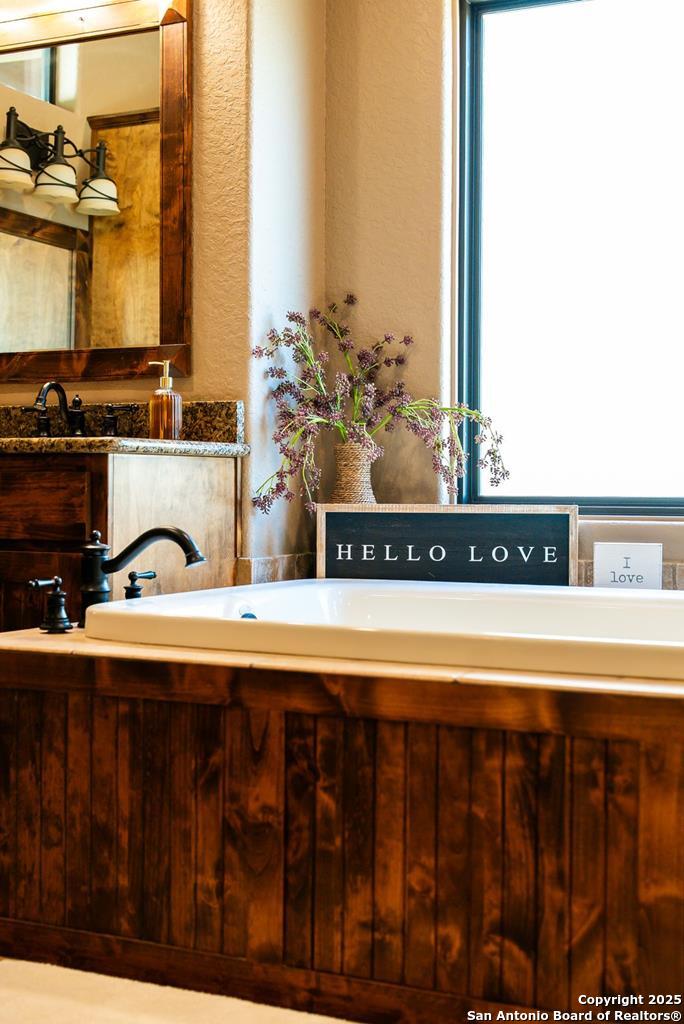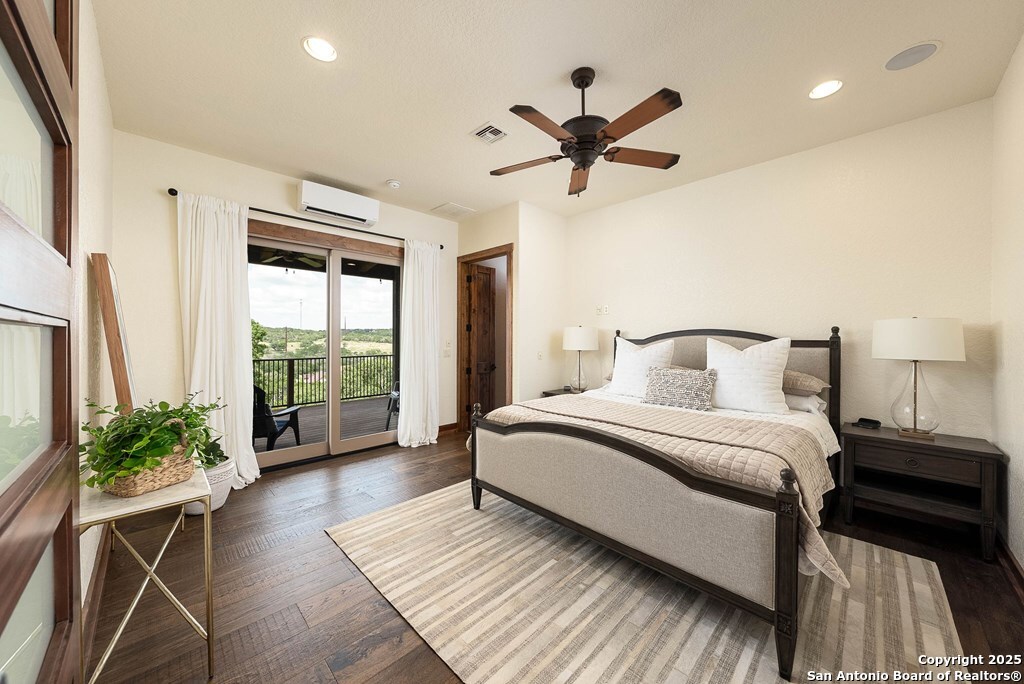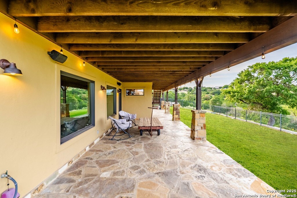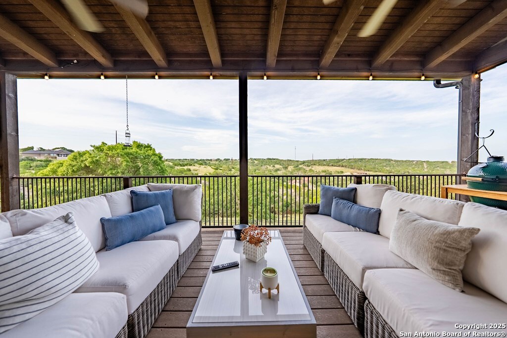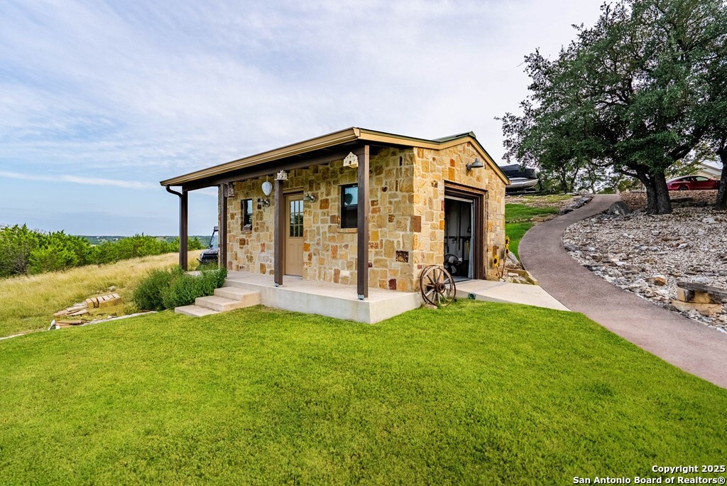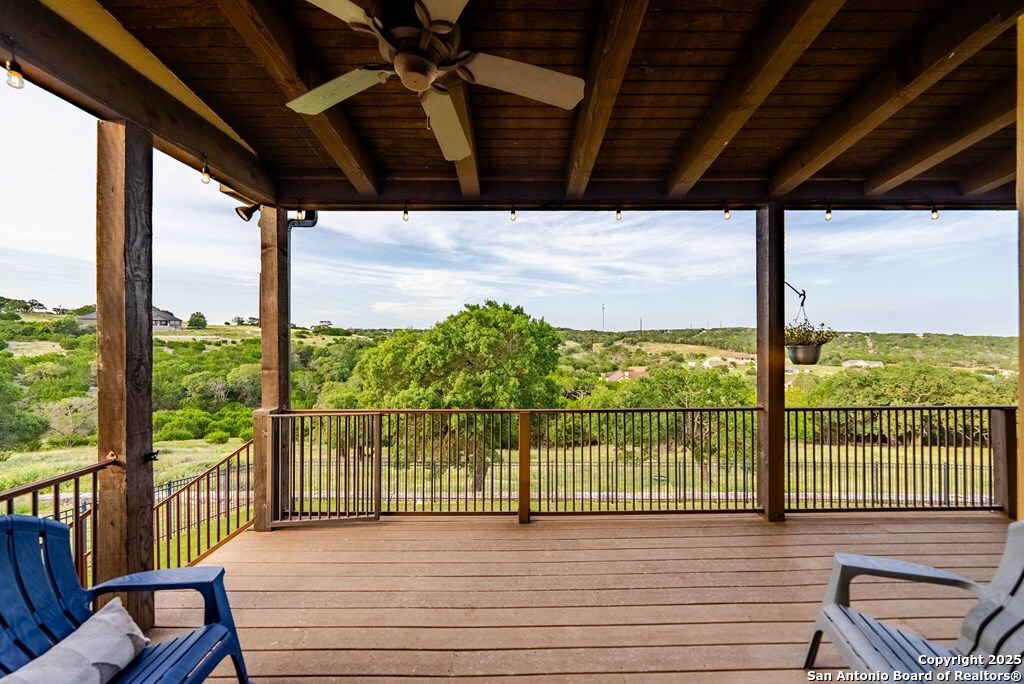 Experience Hill Country living situated high in the hills in this beautifully designed Centurion Homes residence, surrounded by mature landscaping and stunning views. Enjoy peaceful mornings & evening gatherings on multiple east-facing patios, perfect for spotting deer & exotic antelope. Inside, a spacious living area features a stone fireplace, wood beams, & plantation shutters for a cozy yet elegant feel. The kitchen is a chef's dream with a built-in oversized refrigerator, brand new Frigidaire microwave & Frigidaire induction cooktop, ample storage, prep space, a central island ideal for entertaining. The private primary suite offers its own outdoor sitting area a luxurious bath w/soaking tub, dual vanities, & walk-in shower. Two main-level bedrooms share a Jack-and-Jill bath, while the downstairs includes a game room with wet bar, additional bedroom, office space, full bath, and patio with a fire pit ready for entertaining your guests. A three-car garage & separate workshop with its own garage door provide generous storage and workspace. Cypress Springs Estates is just minutes back into Kerrville. Amenities include gated entrance, pool, pickleball/tennis, TOP rated Ingram ISD.