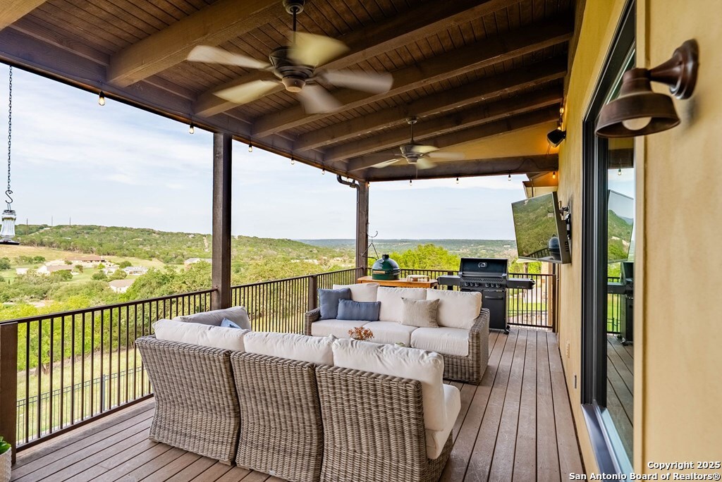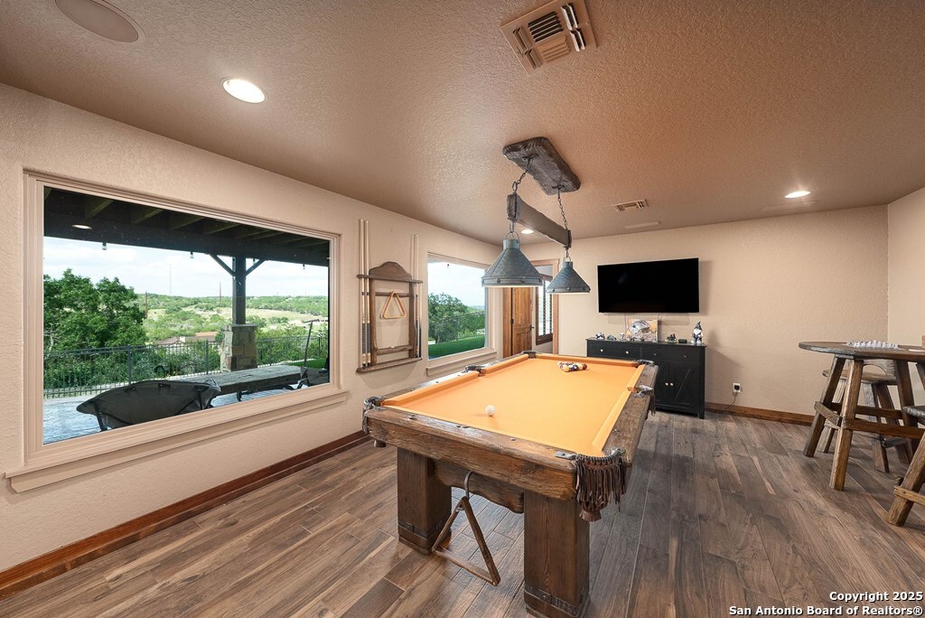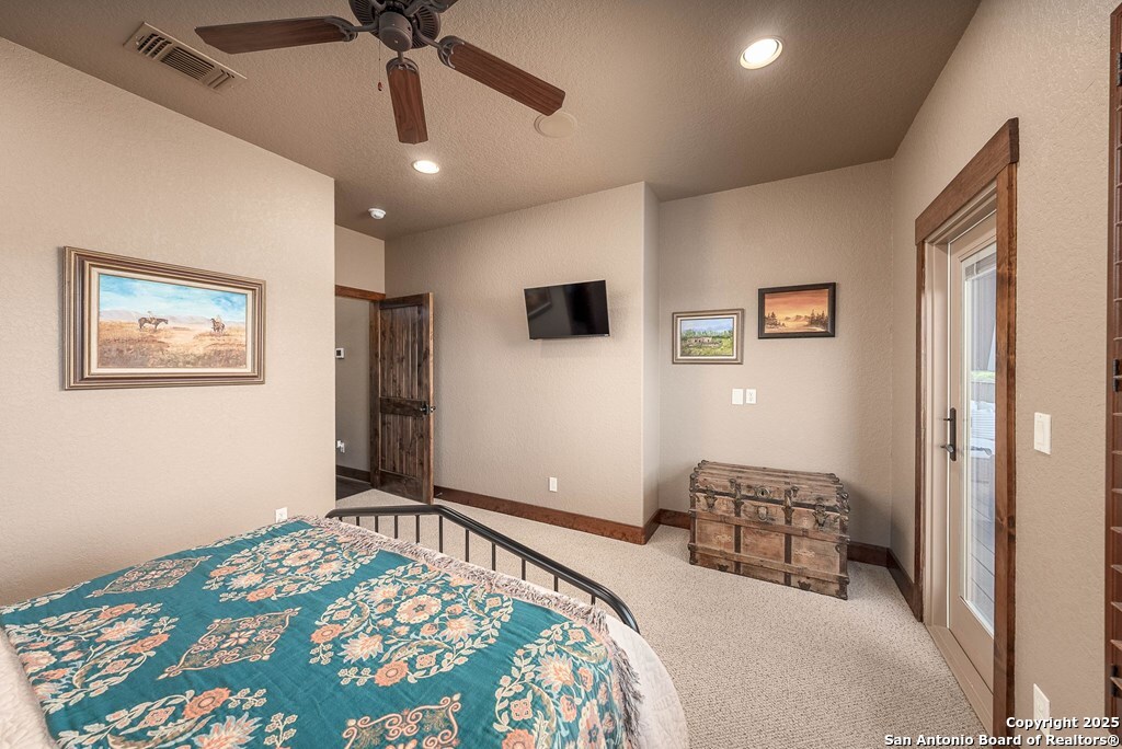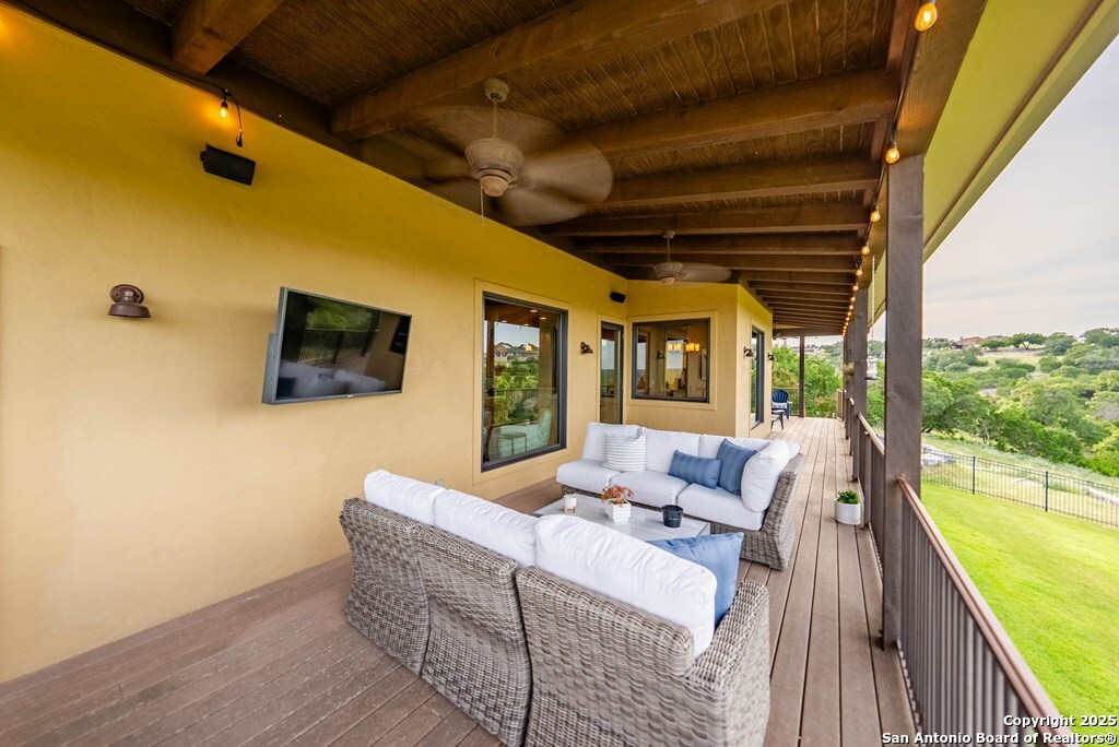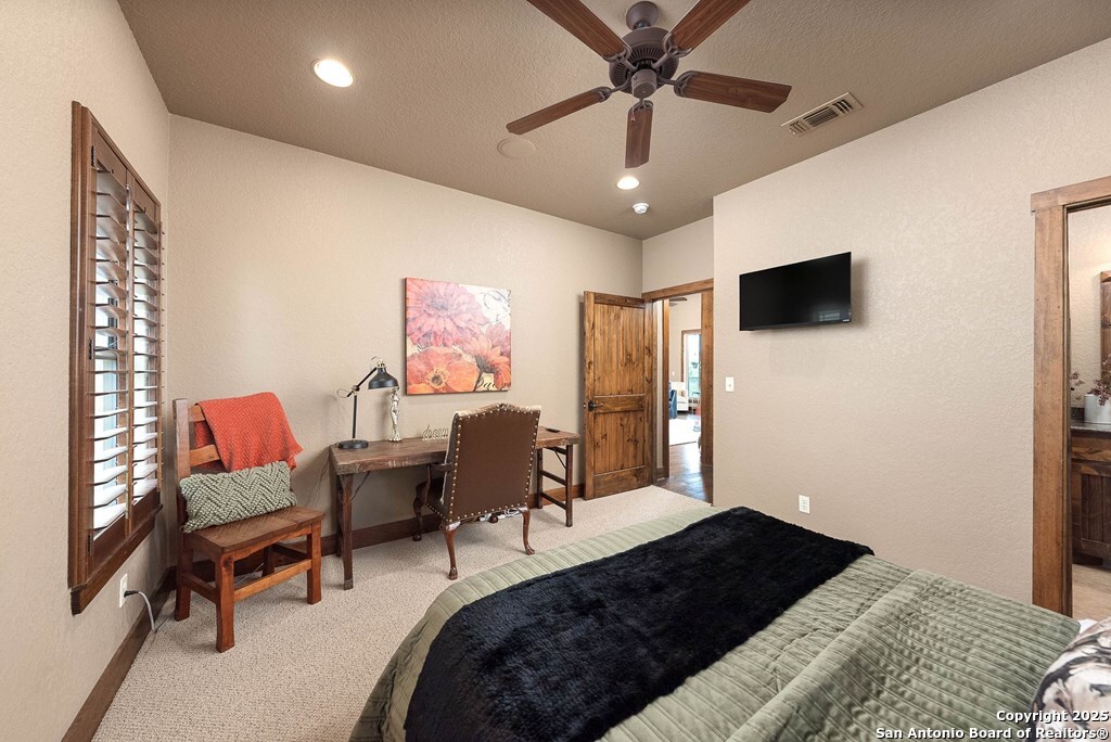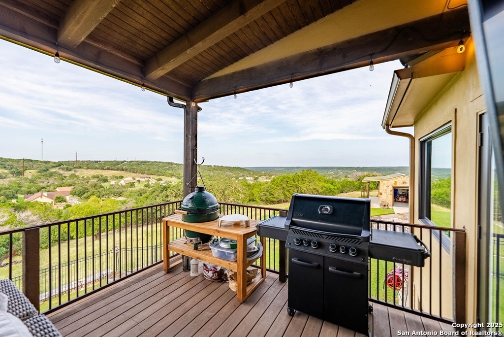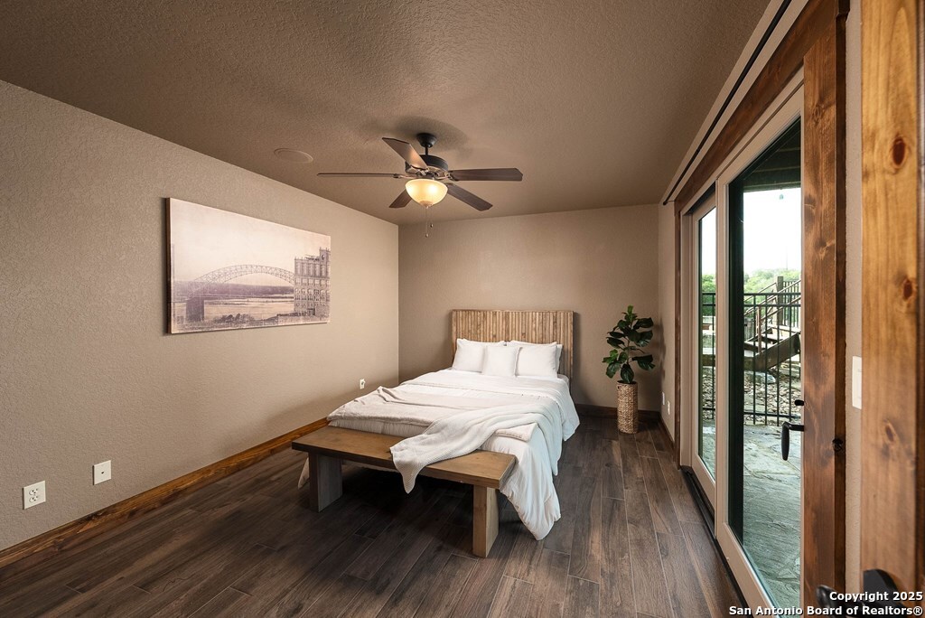 Experience Hill Country living situated high in the hills in this beautifully designed Centurion Homes residence, surrounded by mature landscaping and stunning views. Enjoy peaceful mornings & evening gatherings on multiple east-facing patios, perfect for spotting deer & exotic antelope. Inside, a spacious living area features a stone fireplace, wood beams, & plantation shutters for a cozy yet elegant feel. The kitchen is a chef's dream with a built-in oversized refrigerator, brand new Frigidaire microwave & Frigidaire induction cooktop, ample storage, prep space, a central island ideal for entertaining. The private primary suite offers its own outdoor sitting area a luxurious bath w/soaking tub, dual vanities, & walk-in shower. Two main-level bedrooms share a Jack-and-Jill bath, while the downstairs includes a game room with wet bar, additional bedroom, office space, full bath, and patio with a fire pit ready for entertaining your guests. A three-car garage & separate workshop with its own garage door provide generous storage and workspace. Cypress Springs Estates is just minutes back into Kerrville. Amenities include gated entrance, pool, pickleball/tennis, TOP rated Ingram ISD.
