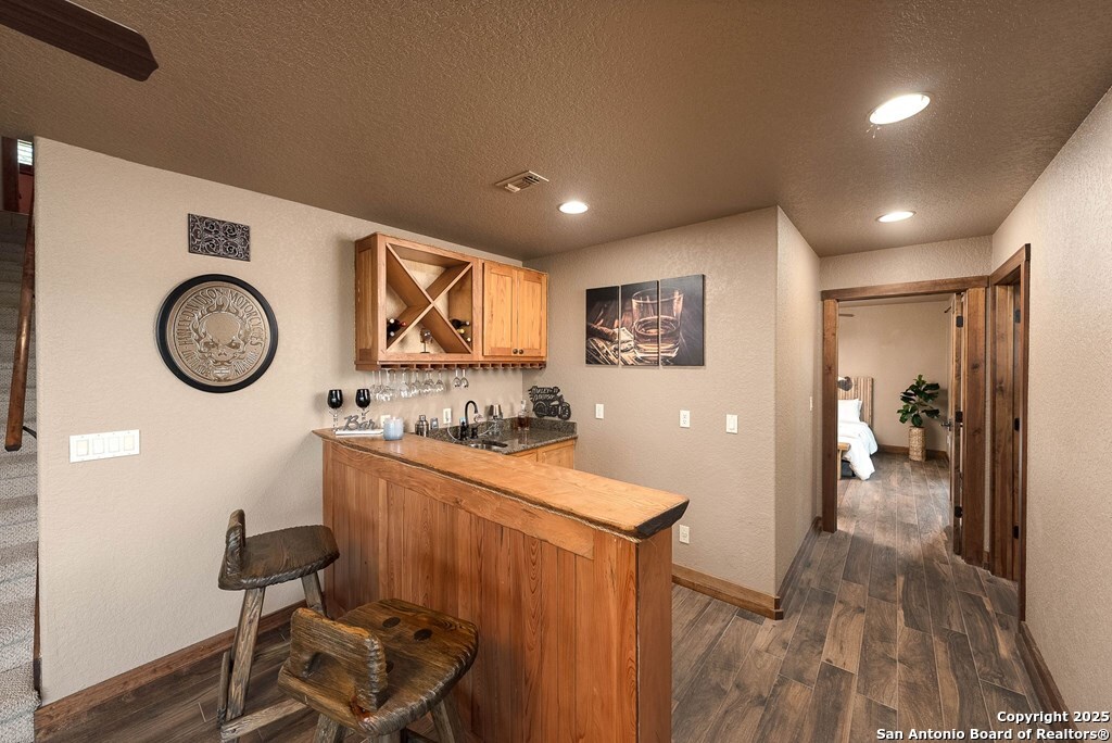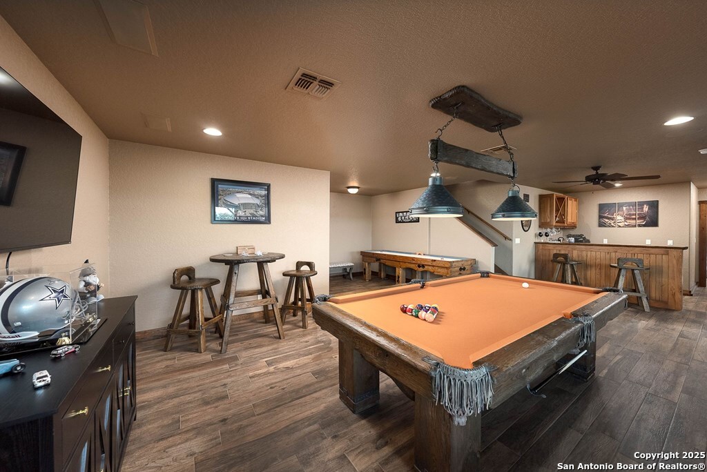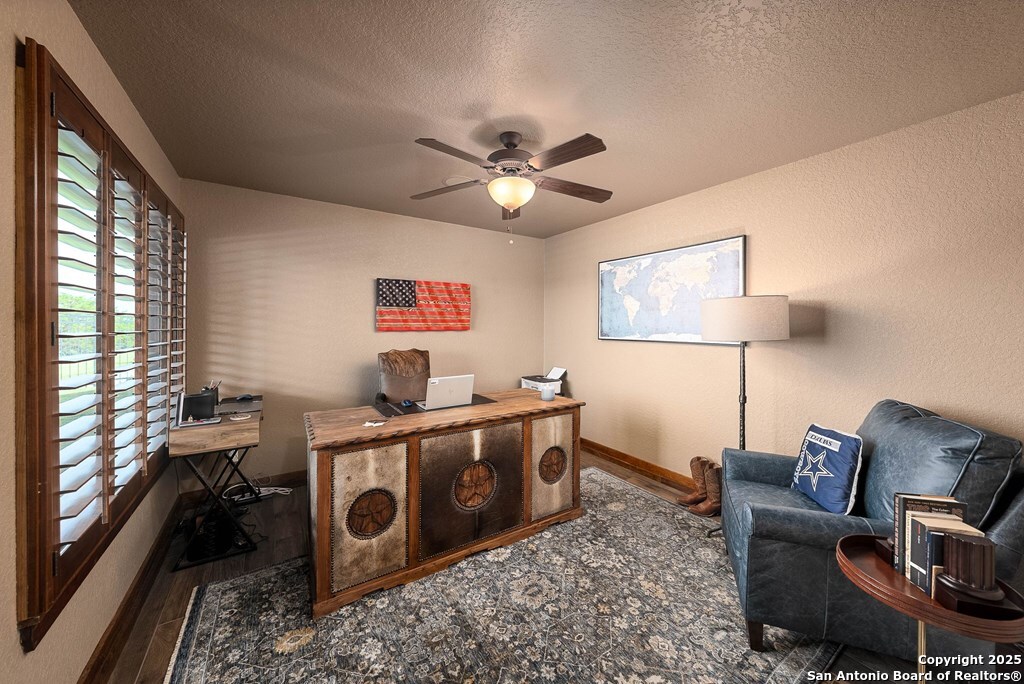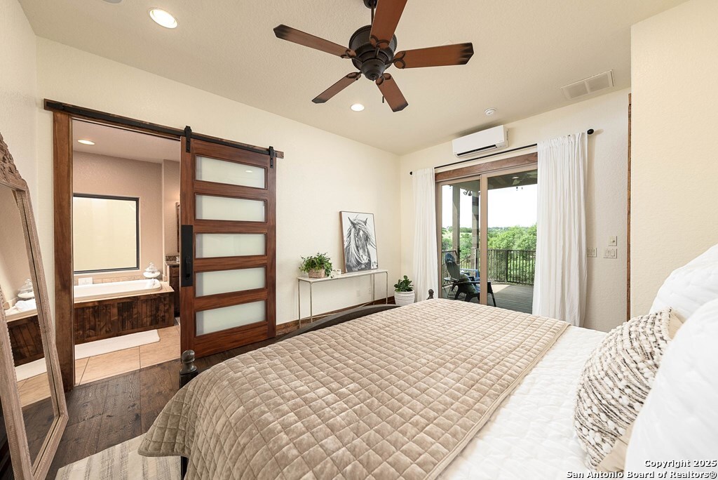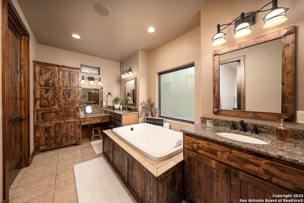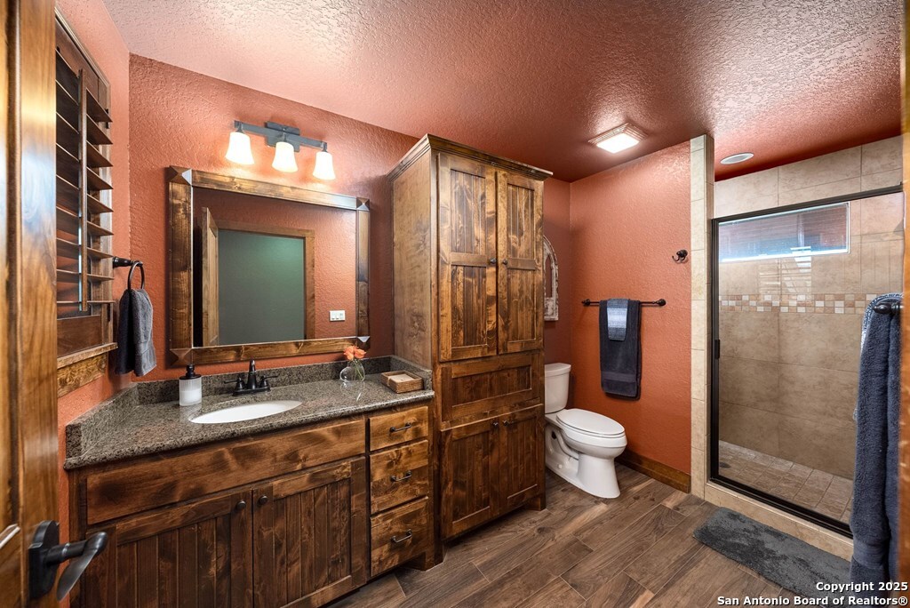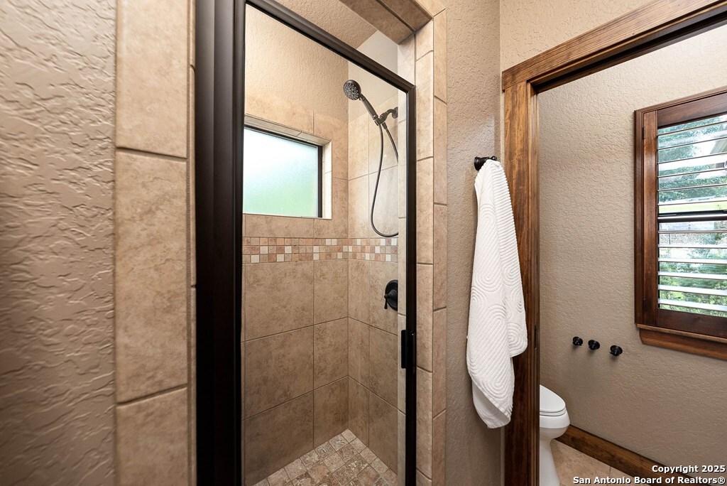 Experience Hill Country living situated high in the hills in this beautifully designed Centurion Homes residence, surrounded by mature landscaping and stunning views. Enjoy peaceful mornings & evening gatherings on multiple east-facing patios, perfect for spotting deer & exotic antelope. Inside, a spacious living area features a stone fireplace, wood beams, & plantation shutters for a cozy yet elegant feel. The kitchen is a chef's dream with a built-in oversized refrigerator, brand new Frigidaire microwave & Frigidaire induction cooktop, ample storage, prep space, a central island ideal for entertaining. The private primary suite offers its own outdoor sitting area a luxurious bath w/soaking tub, dual vanities, & walk-in shower. Two main-level bedrooms share a Jack-and-Jill bath, while the downstairs includes a game room with wet bar, additional bedroom, office space, full bath, and patio with a fire pit ready for entertaining your guests. A three-car garage & separate workshop with its own garage door provide generous storage and workspace. Cypress Springs Estates is just minutes back into Kerrville. Amenities include gated entrance, pool, pickleball/tennis, TOP rated Ingram ISD.