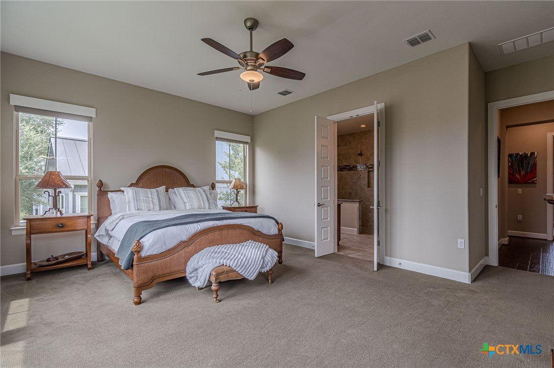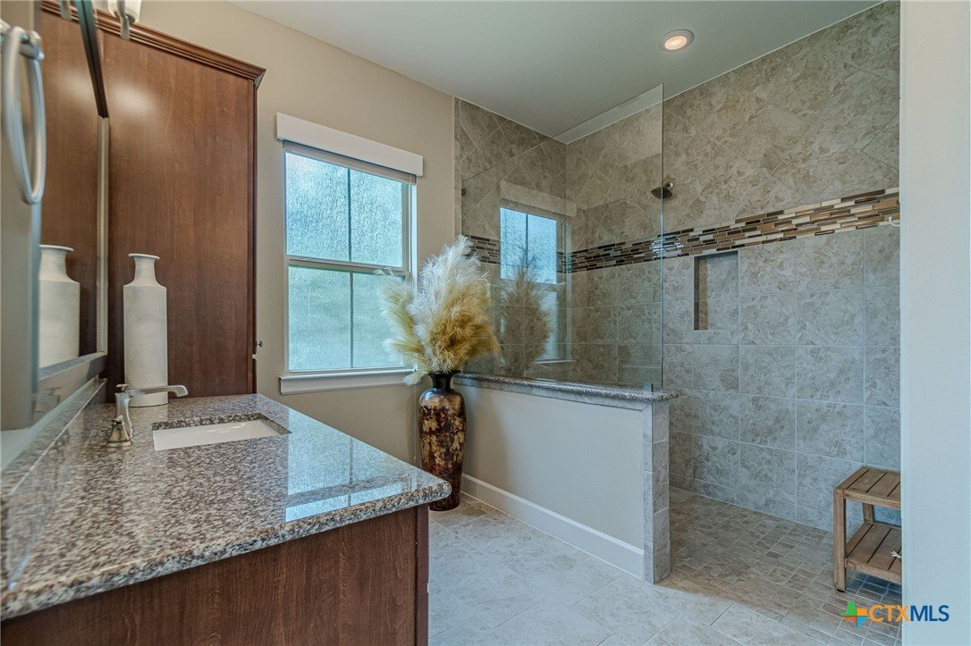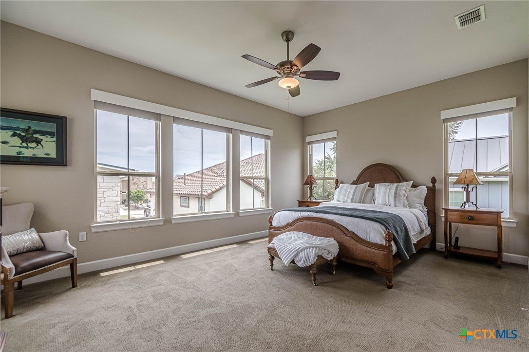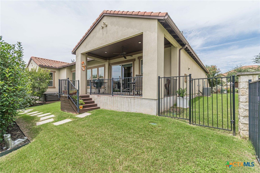 Welcome to this stunning Santa Barbara stucco home – Where Comfort Meets Style! This beautiful home sits proudly on a wide 90-foot lot, boasting exceptional curb appeal and a thoughtfully designed layout that’s hard to find. This street is unique with only 4 homes on each side of the street - offering great street appeal!!! With 2 bedrooms, 2.5 baths, and custom features throughout, this residence combines elegance with everyday functionality. Step into a soaring two-story entryway that opens into a spacious open-concept layout—perfect for both relaxed living and entertaining. The chef-inspired kitchen features an oversized island, a butler’s pantry, rich custom cabinetry, and windows that flood the space with natural light. Whether you're hosting dinner parties on the east facing patio, or enjoying a quiet breakfast, this kitchen is ready to impress. Adjacent to the kitchen, the dry bar offers the flexibility to be your coffee station, wine bar, or a buffet serving area. The seamless flow between the kitchen, dining, and living areas creates an inviting space for family and friends to gather. The study—just off the main living area—offers French doors for privacy, making it the ideal spot for a home office or a quiet reading room. You'll love the wood floors throughout, the spacious laundry room with extra cabinetry and a large closet for optimal storage, and the oversized back patio—a peaceful retreat for morning coffee or evening relaxation. From its stylish design to its practical layout, this home truly checks all the boxes. Don’t miss your chance to own this rare gem in the Bryant Floor Plan! BONUS TO BUYER - a whole year of HOA dues paid! WOW! Schedule your private showing now!