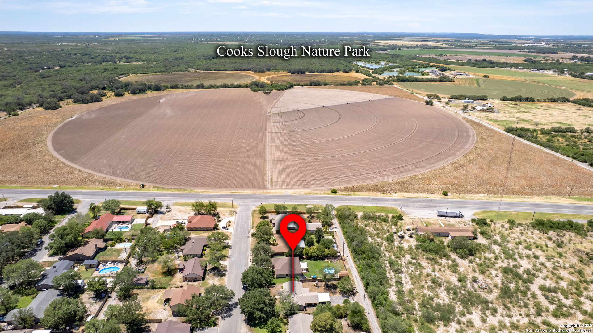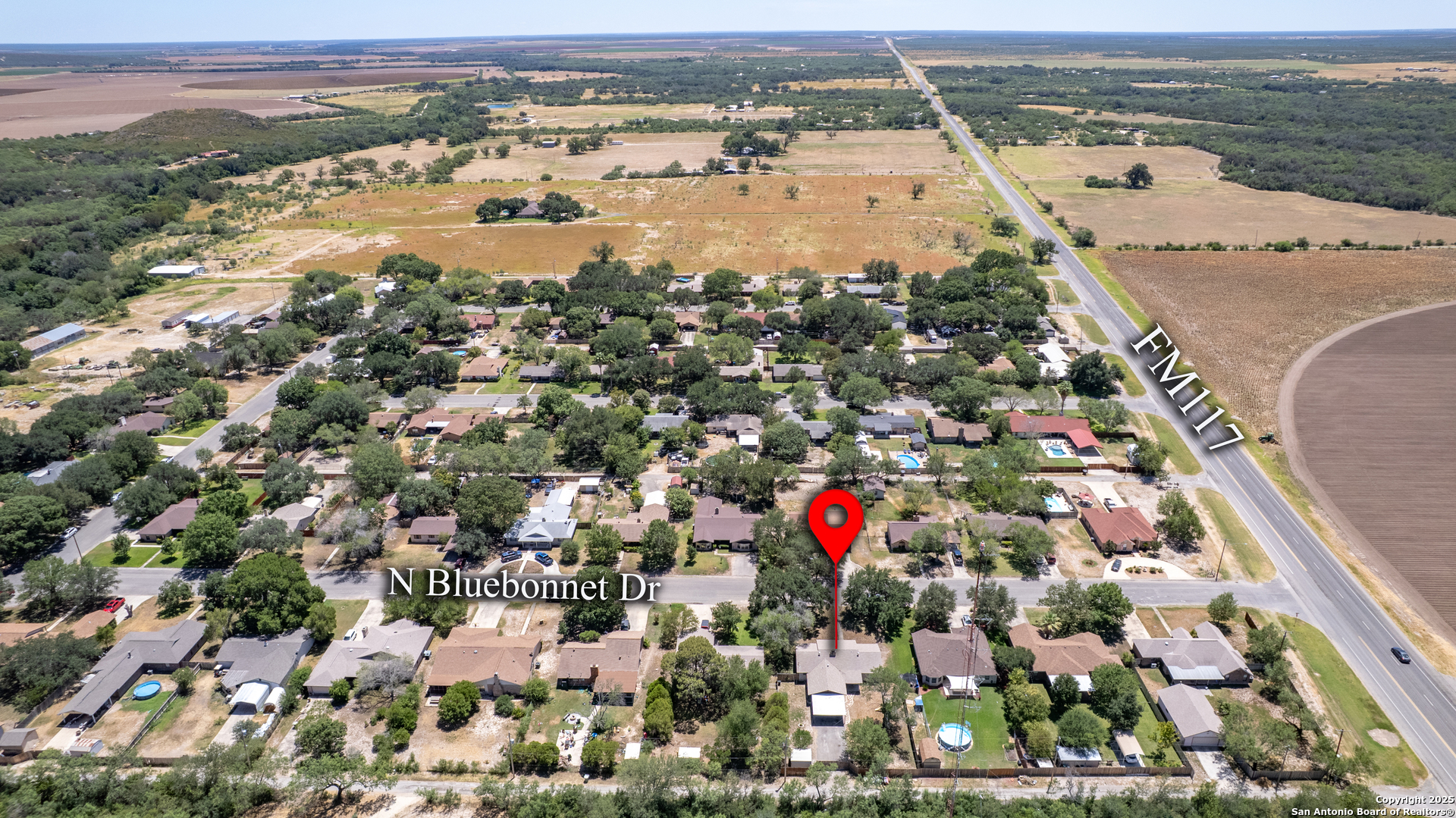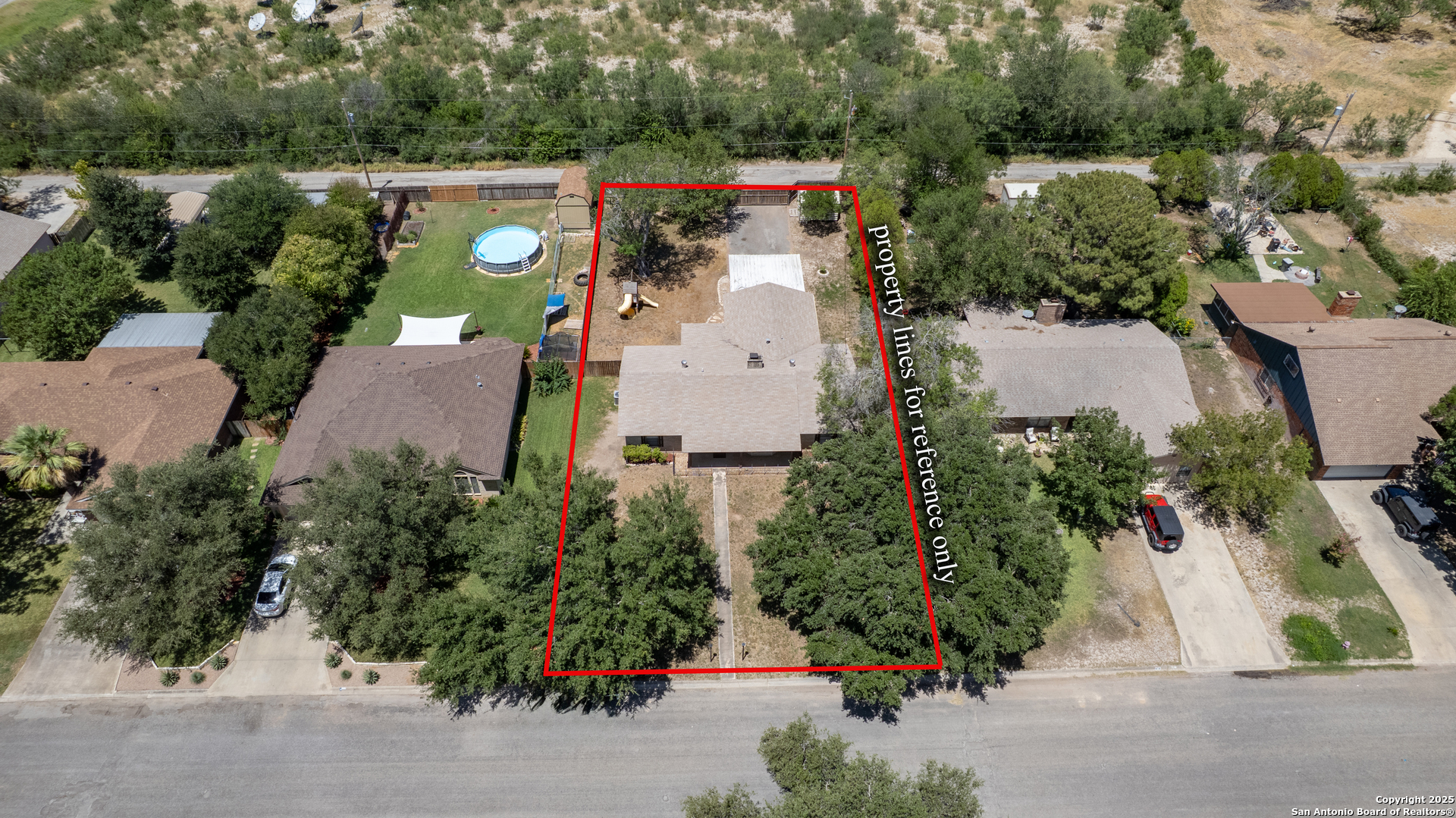 Tucked just south of town in a peaceful, well-kept neighborhood, this 3-bedroom brick home combines a country feel with city convenience. Built in 1979, it offers 1,595 sq. ft. of comfortable living space on a tree-shaded 0.30-acre lot. Inside, the living room features a bay window and a cozy brick fireplace. The kitchen is both functional and inviting with a mix of open and closed shelving, a breakfast bar, and French doors in the dining area that open to the back patio. All appliances convey-including cooktop, in-wall oven, microwave, refrigerator, dishwasher, washer, and dryer-so it's ready for move-in from day one. The primary suite includes a remodeled bathroom with updated countertop, fixtures, and tub-shower combo. Two additional bedrooms, each with ceiling fans, share a stylish hallway bath highlighted by granite counters, ornamental cabinetry, and a colonial-style mirror. Ceramic tile runs through the main living areas while bedrooms feature plush carpeting. Outdoors, the property is set up for both relaxation and play with a storage shed, children's playset, and privacy fencing on three sides. Parking is plentiful with a finished two-car garage (complete with ceiling fans, flooring, and a window unit-perfect for a game room, workshop, or gym), plus an attached two-car carport and asphalt rear drive with an electric gate. All of this is just minutes from H-E-B, the new hospital, and Southwest Texas Junior College, making this home an ideal blend of charm, comfort, and convenience.