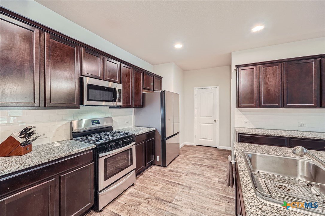 Discover this lovely home in the highly sought-after Mager Meadows neighborhood, just minutes from Hutto Elementary. This 2057 square feet open floor plan features 4 bedrooms and 2 full baths. The generous kitchen, complete with a large island, is perfect for cooking, dining, and entertaining. The open dining and living areas offer the perfect canvas for your own interior design flair. Retreat to the vast primary bedroom with it's own spacious en-suite bath and ample closet space with additional shelving. The backyard area is ideal for creating your personal oasis. Don't miss out on nearby attractions like the Co-Op, charming downtown Hutto, and vibrant community events. Come see all this home has to offer!