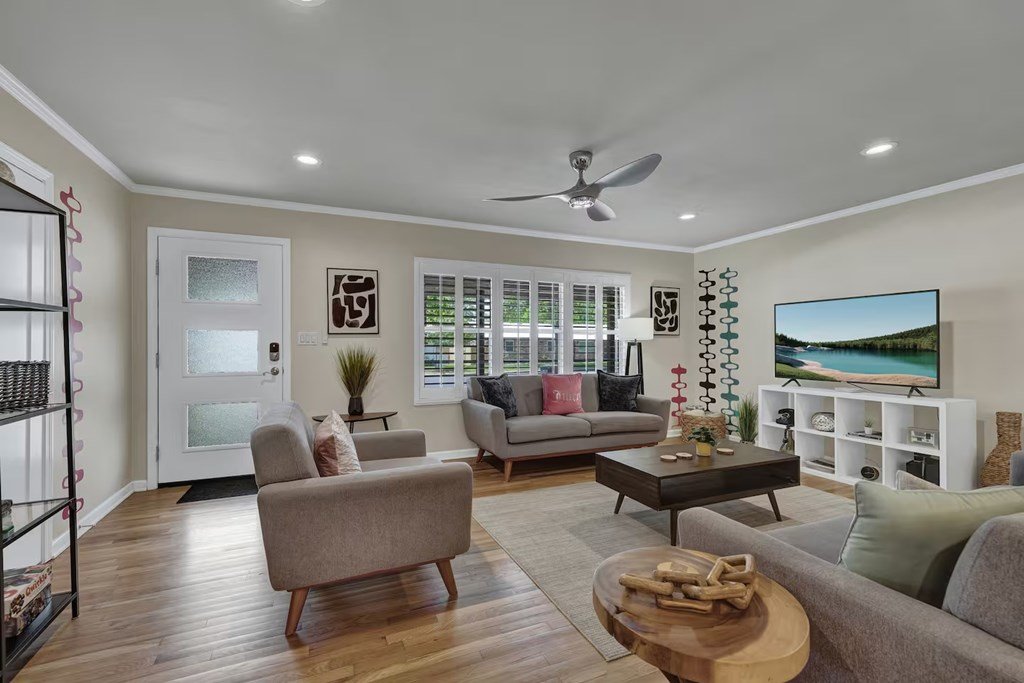 Mulberry Haus is a permitted and active short-term rental property set on a lovely treed, oversized, 14,000 sqft city lot within easy reach of Fredericksburg's vibrant downtown. This warm and welcoming home blends modern elements with touches of mid-century character and has an attractive curb appeal, enhanced by beautiful shade-bearing Pecan trees. This extremely well-maintained house has a light-filled interior layout that includes three bedrooms, two bathrooms, and a versatile game room for all age groups to enjoy. Integrated living and dining areas offer comfortable space for central gathering; morning coffee, evening cocktails, dining, movie viewing and relaxing. The kitchen features Samsung stainless steel appliances, granite countertops, counter seating along with a dedicated dining area. Off the kitchen is a large laundry/mud room that goes out to the gorgeous patio and garden. The back of the property is fenced and cross-fenced adding diversity, it has convenient alley access and provides a shed topped with a metal roof for storage or to serve as a workshop. 112 West Mulberry is currently an income-producing investment property but is well-suited as a primary residence for those moving to Fredericksburg. The short-term rental permit will convey to a new owner with the option for furnishings, fittings and future bookings. There are a variety of opportunities for the new owners of this Fredericksburg property.