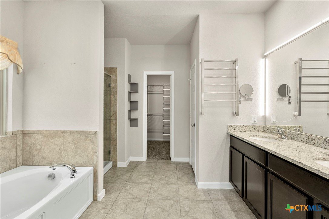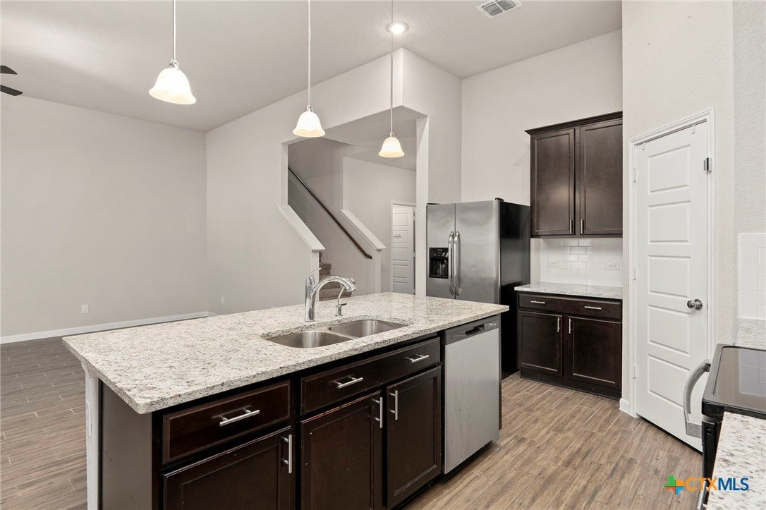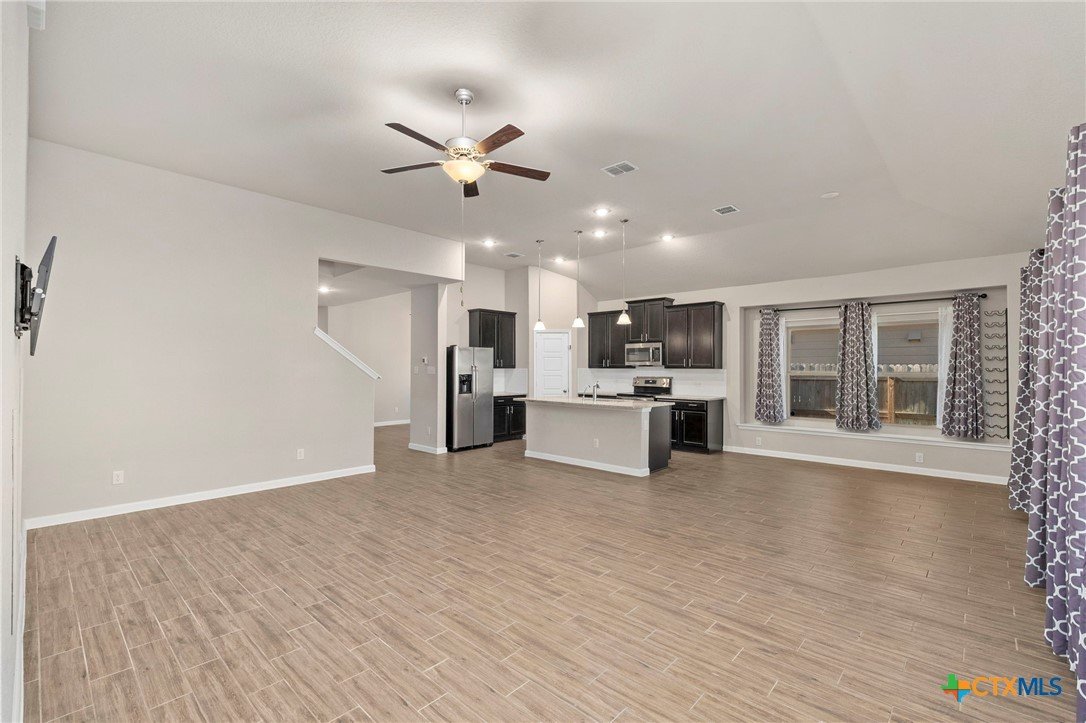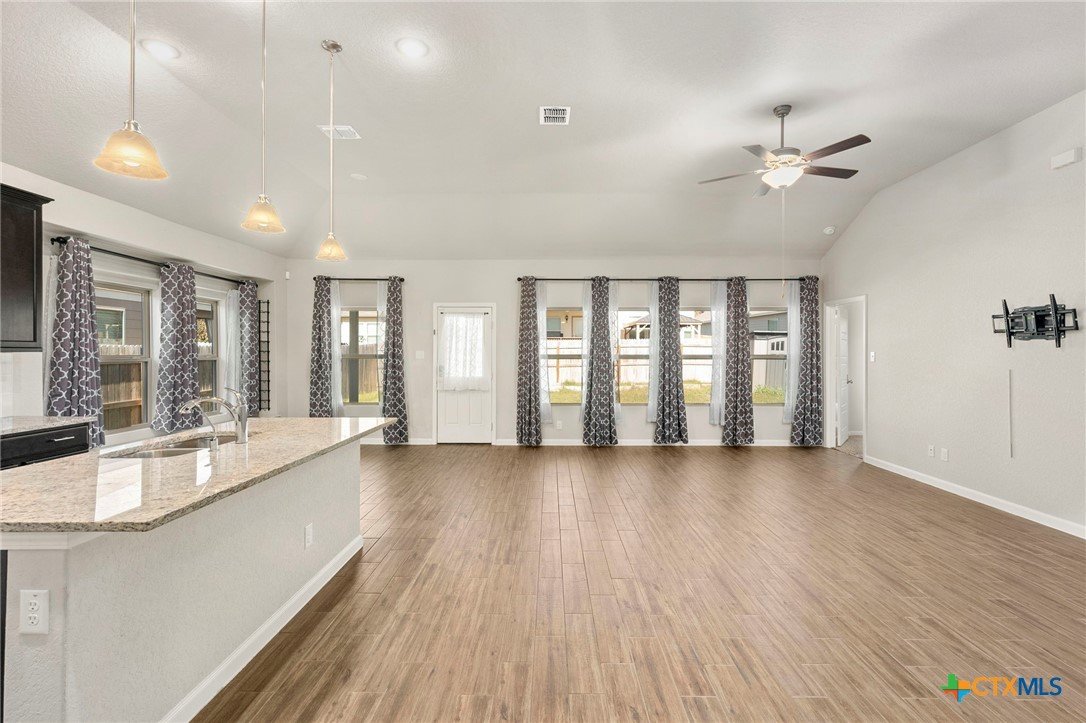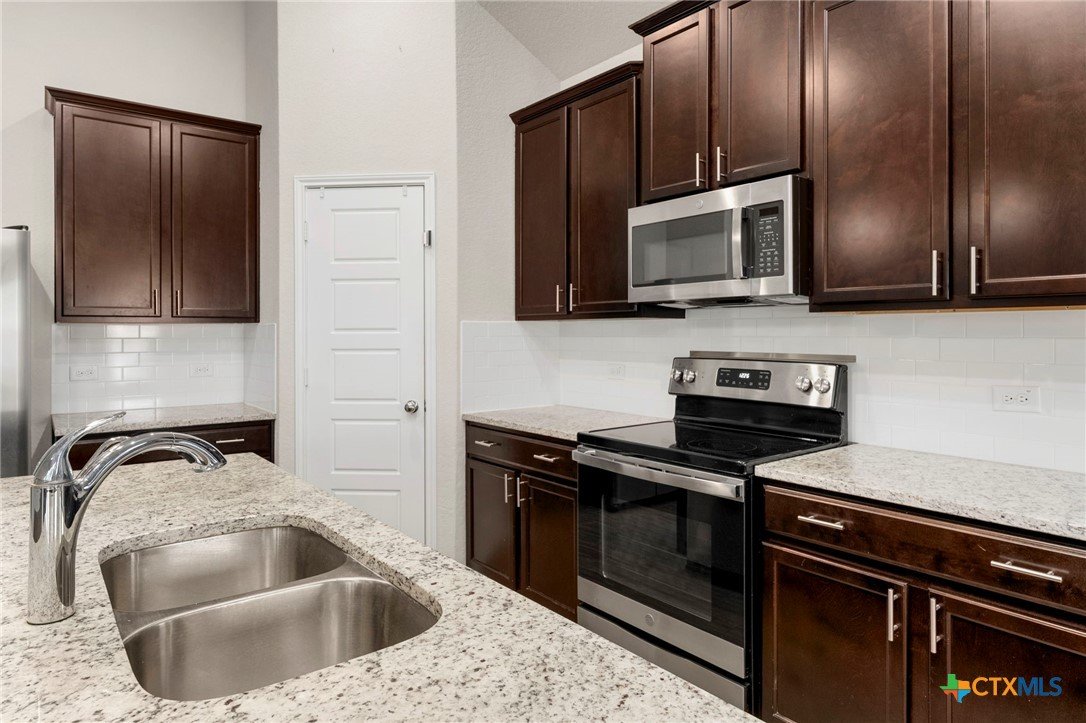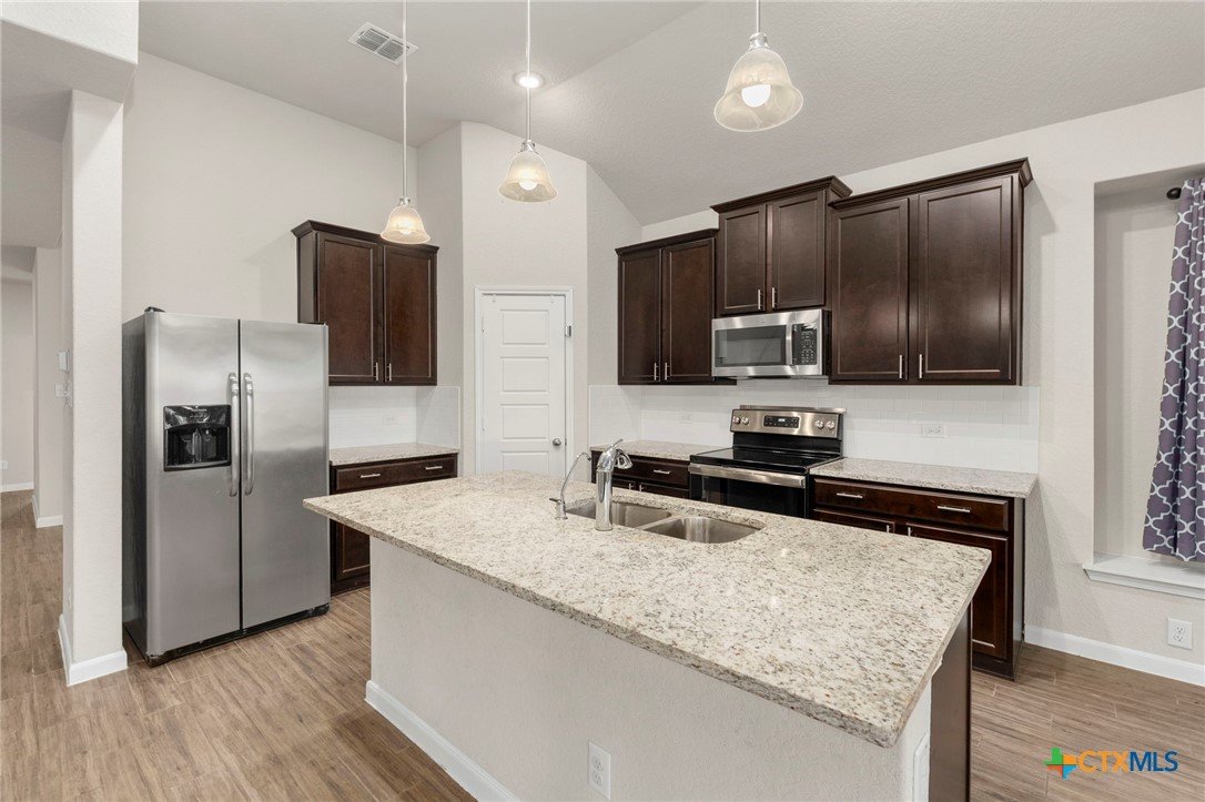 Spacious Home Between New Braunfels and Seguin! Conveniently located off Hwy 46, this stunning 2,372 sq. ft. home features 4 bedrooms and 3 baths, offering plenty of room for comfort and entertaining. On the main floor, enjoy the convenience of a downstairs master suite, along with an additional bedroom and bathroom. Upstairs you will find two more bedrooms, a full bathroom, and a versatile loft space perfect for a playroom, office, or second living area. The heart of the home is the kitchen that boasts granite countertops, a large, beautiful island, and a cozy breakfast area. Opening up to a spacious living room provides the ideal setting for gatherings. Walk outside to the backyard where you will relax on the extended covered patio and make use of the handy storage shed in the backyard. This home offers an ideal blend of style and function in a prime location. Don't miss out!