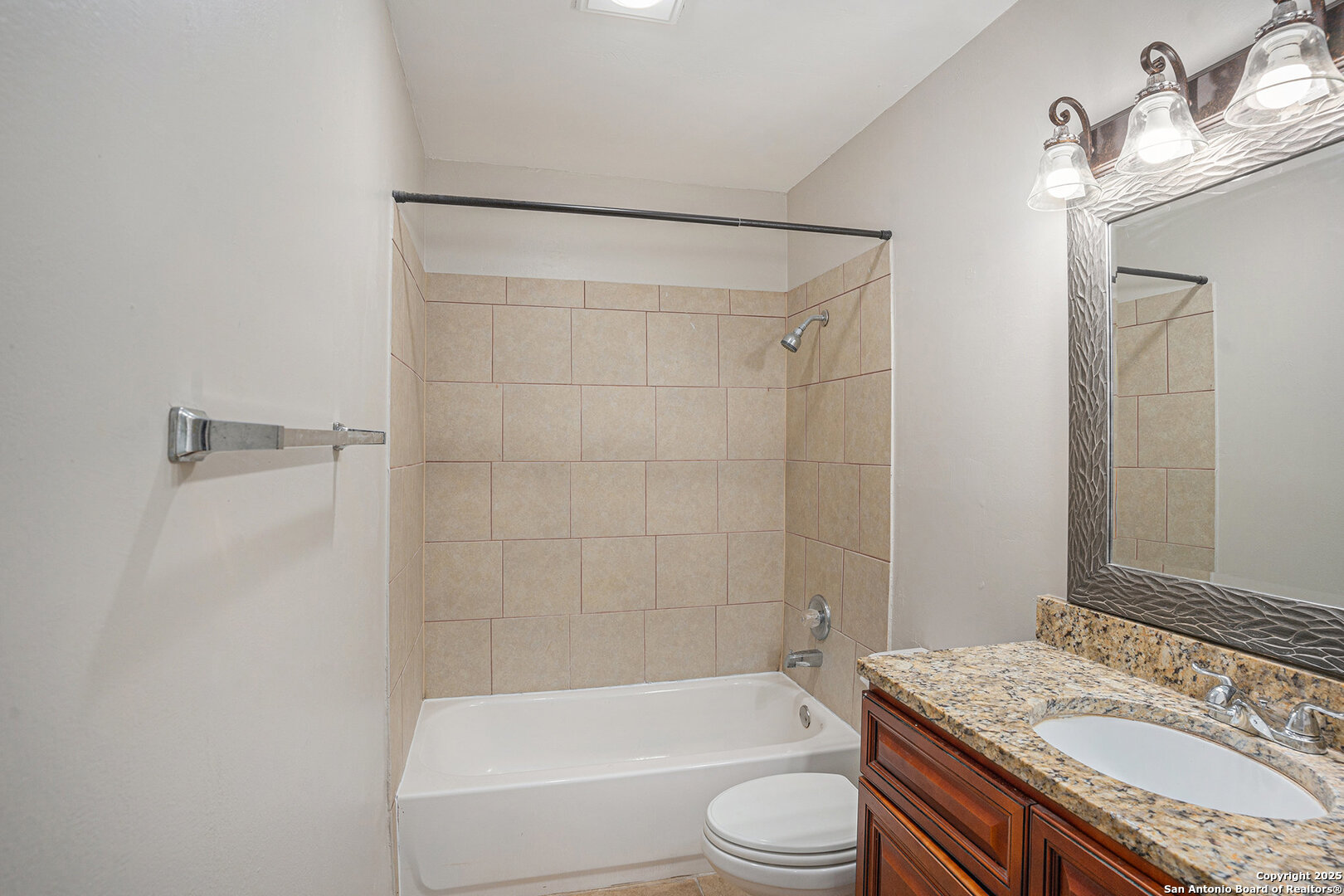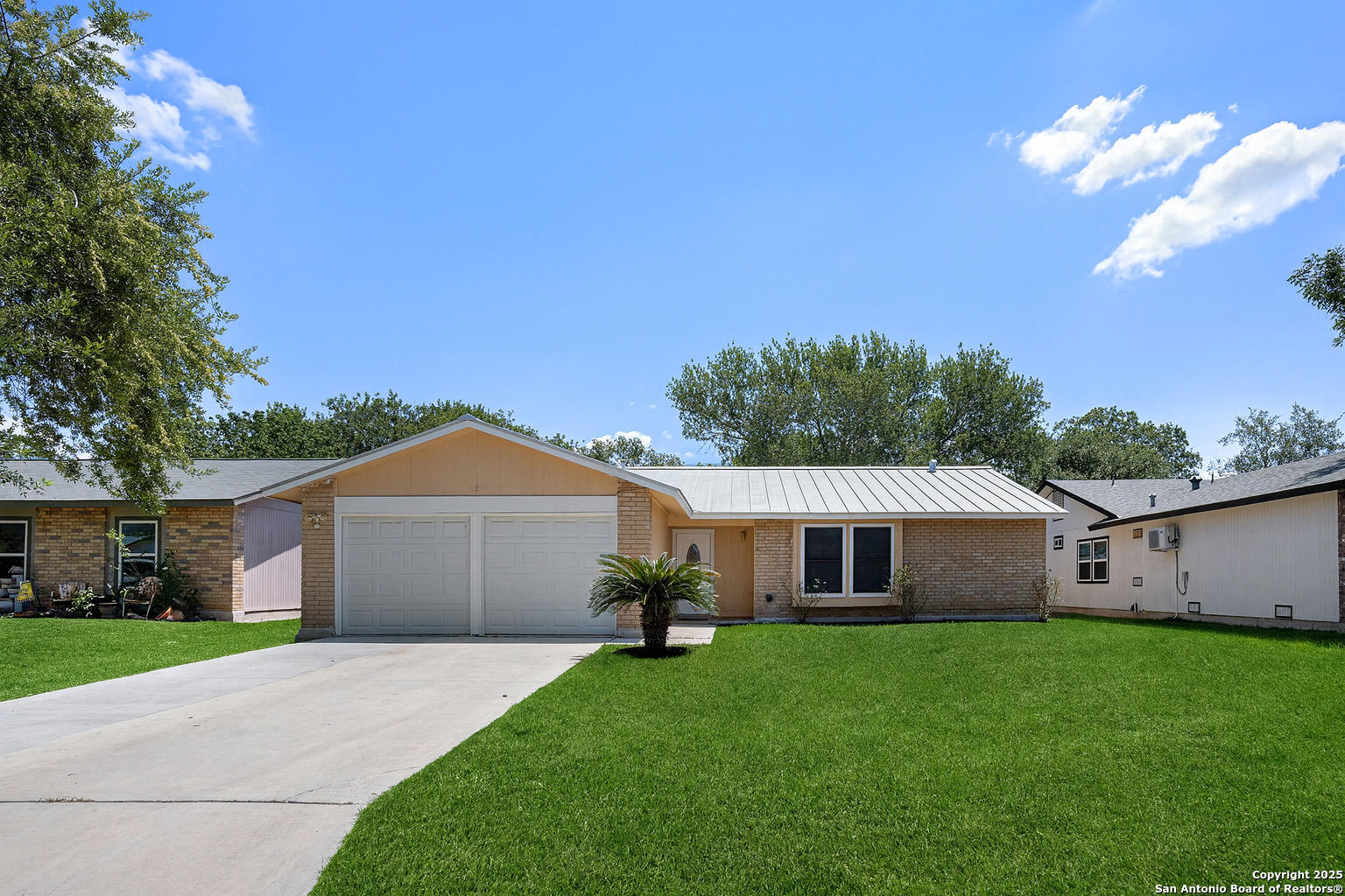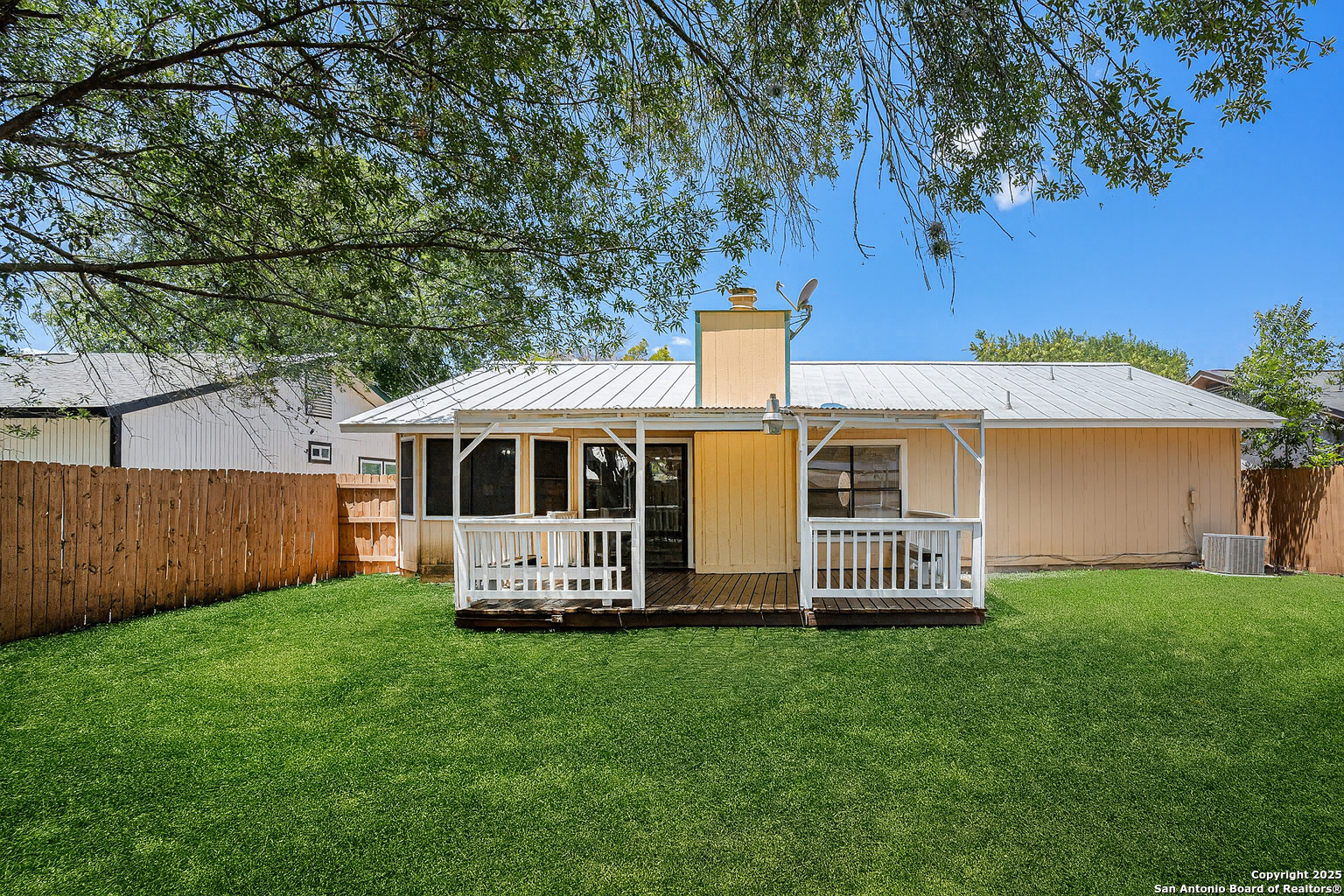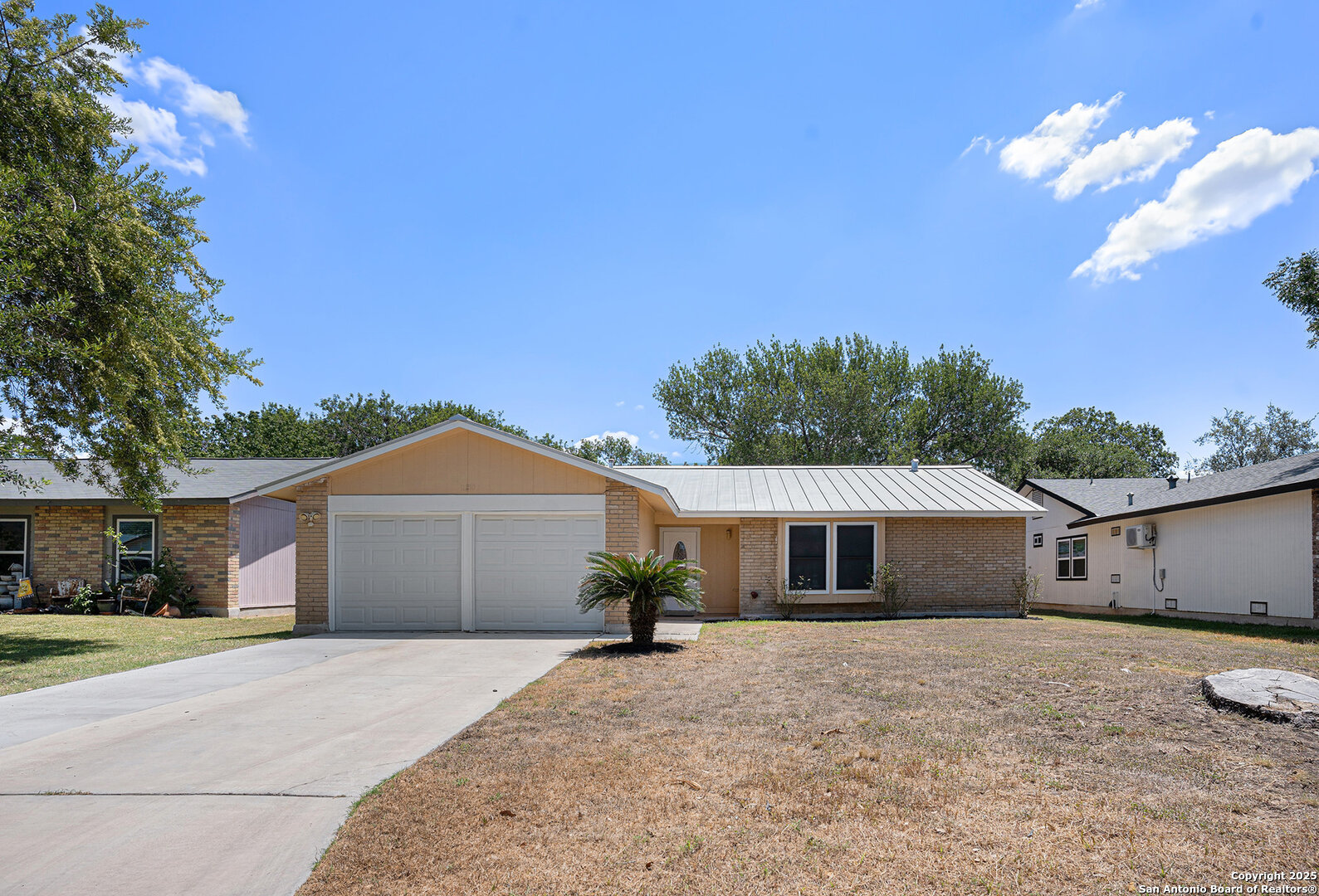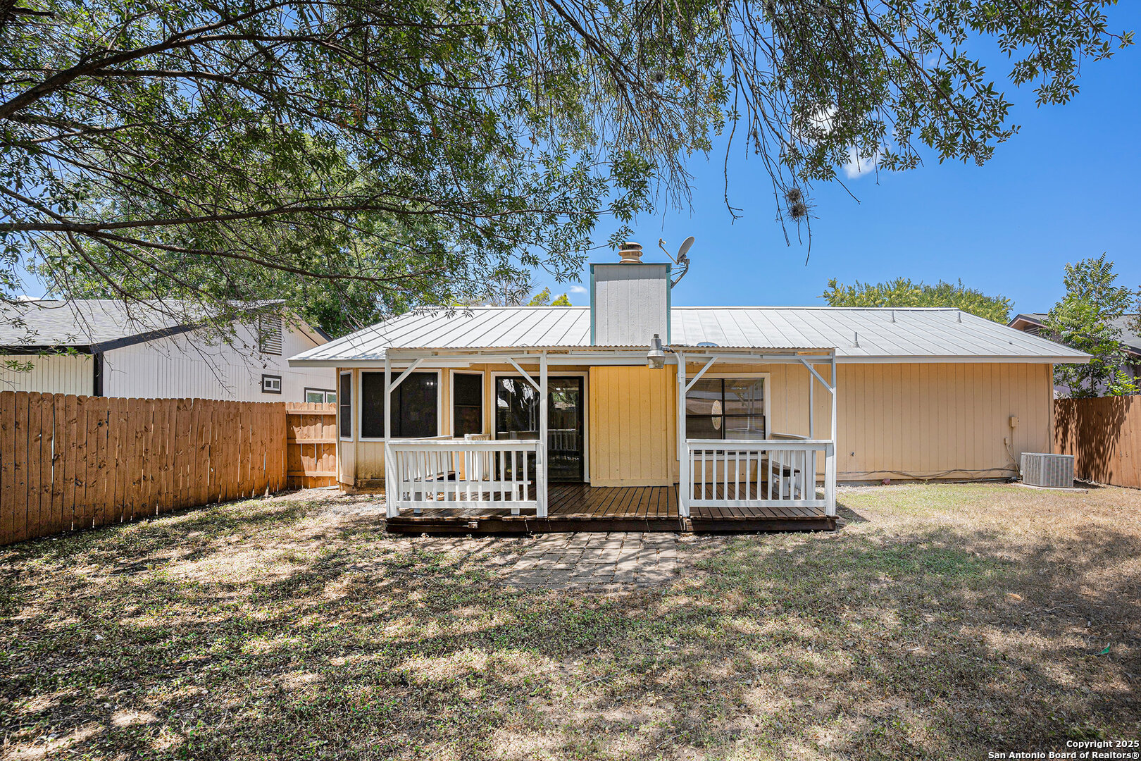 Charming, move-in ready home with no HOA! This spacious 3-bedroom, 2-bath home features an ultra-durable Metal roof that lowers energy costs and stands up to hail and ice. Thoughtful updates include fresh interior paint, exterior trim paint, crisp white painted cabinets, granite countertops, and updated light fixtures. The open living area centers around a cozy wood-burning fireplace, and all tile flooring-making maintenance a breeze. Step outside to a large backyard with a covered patio and privacy fence- perfect for relaxing or entertaining. Sellers offering credit at cIdeally located near the Medical Center, USAA, UTSA, La Cantera, Fiesta Texas, SeaWorld, I-10, Loop 1604, and Schnabel Park with access to the Leon Creek Greenway Trail. Roof installed 2020, Water Heater 2024, HVAC 2014. Don't miss your chance to call this home!