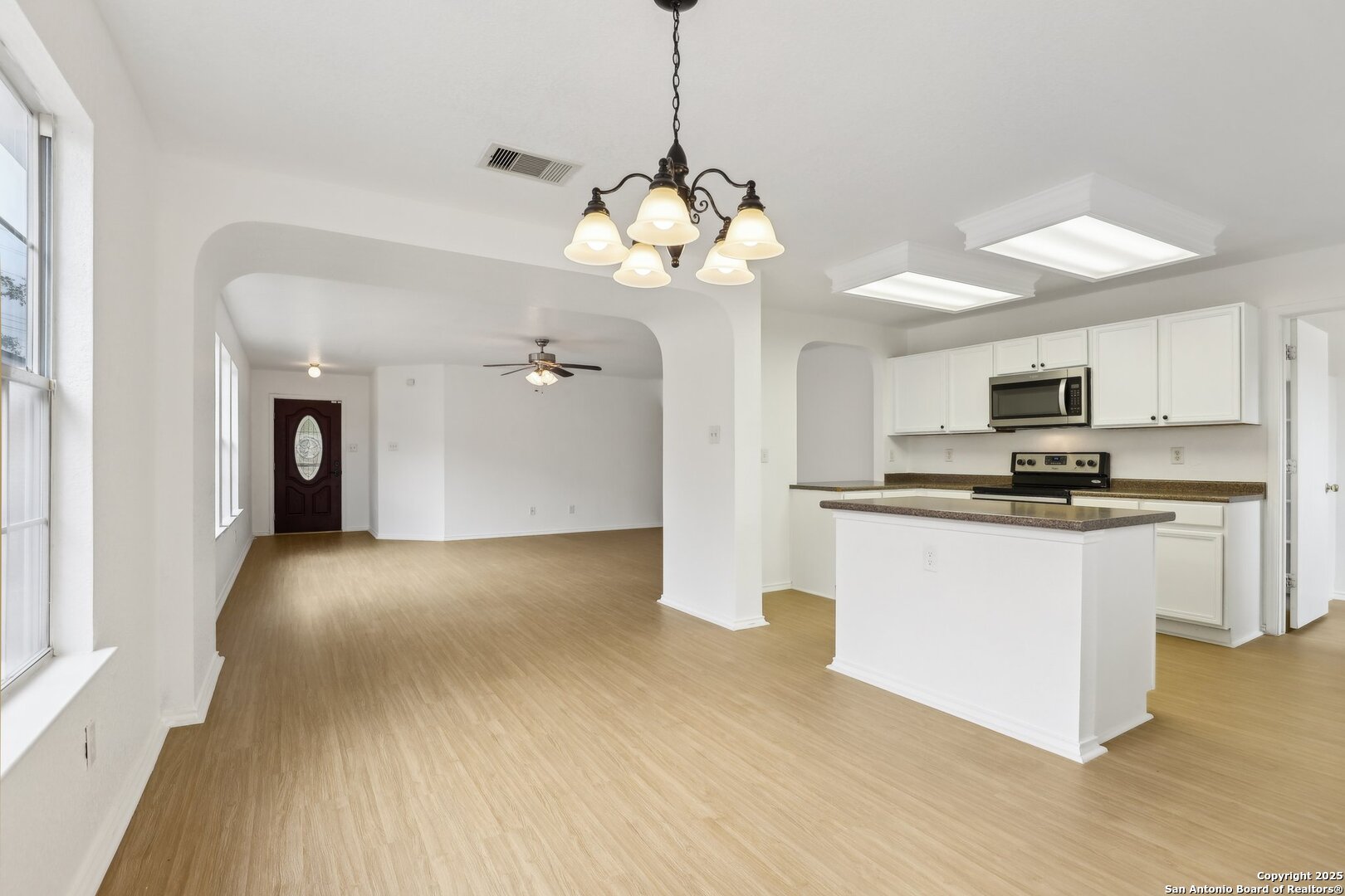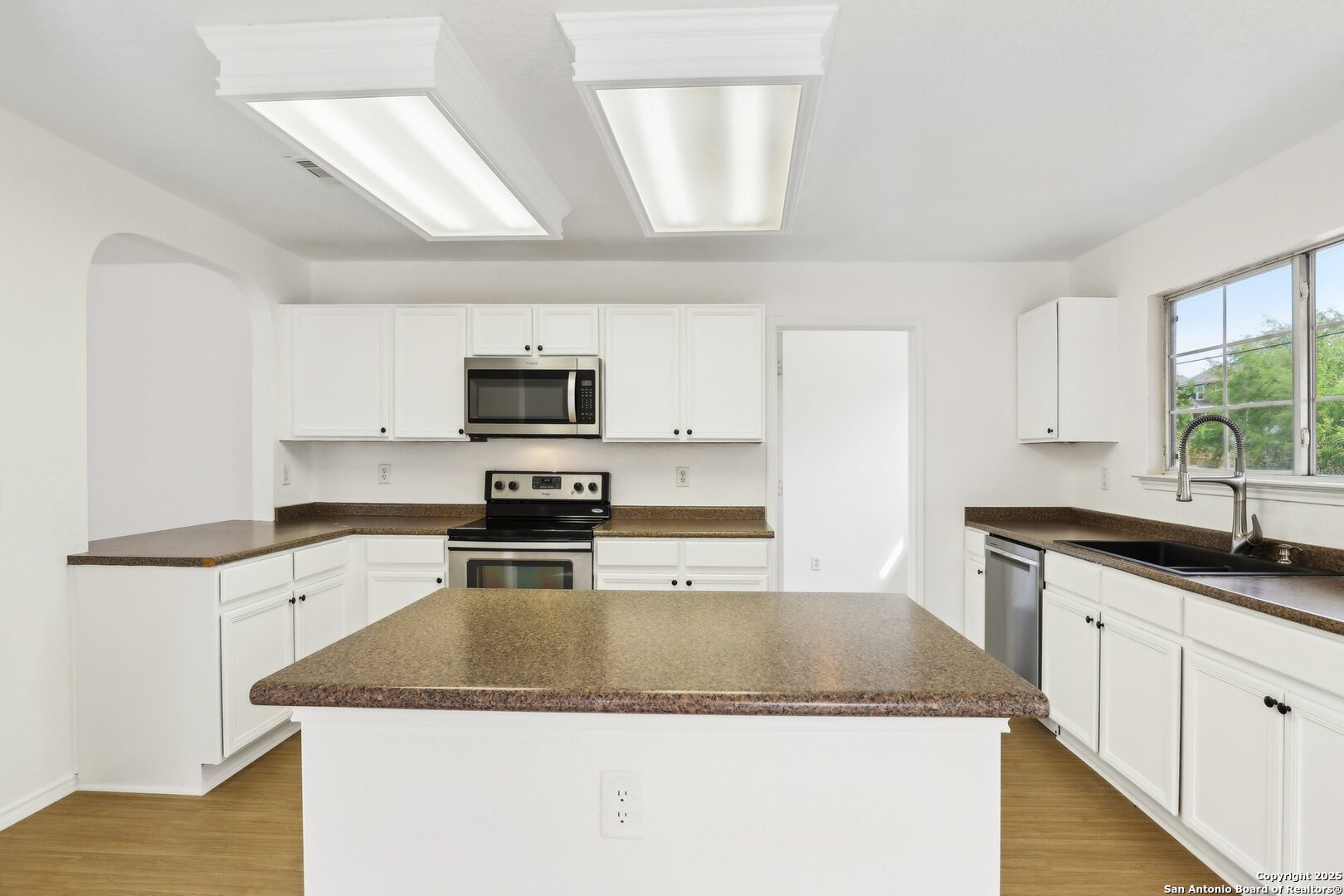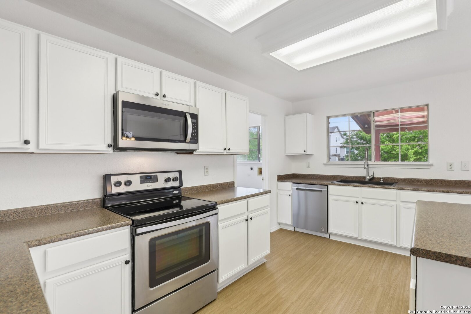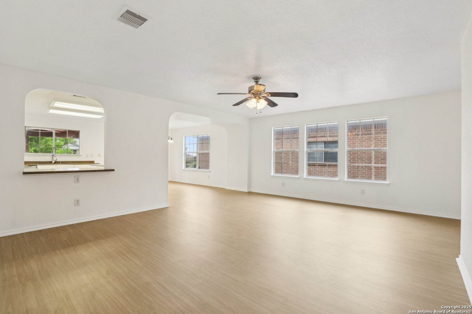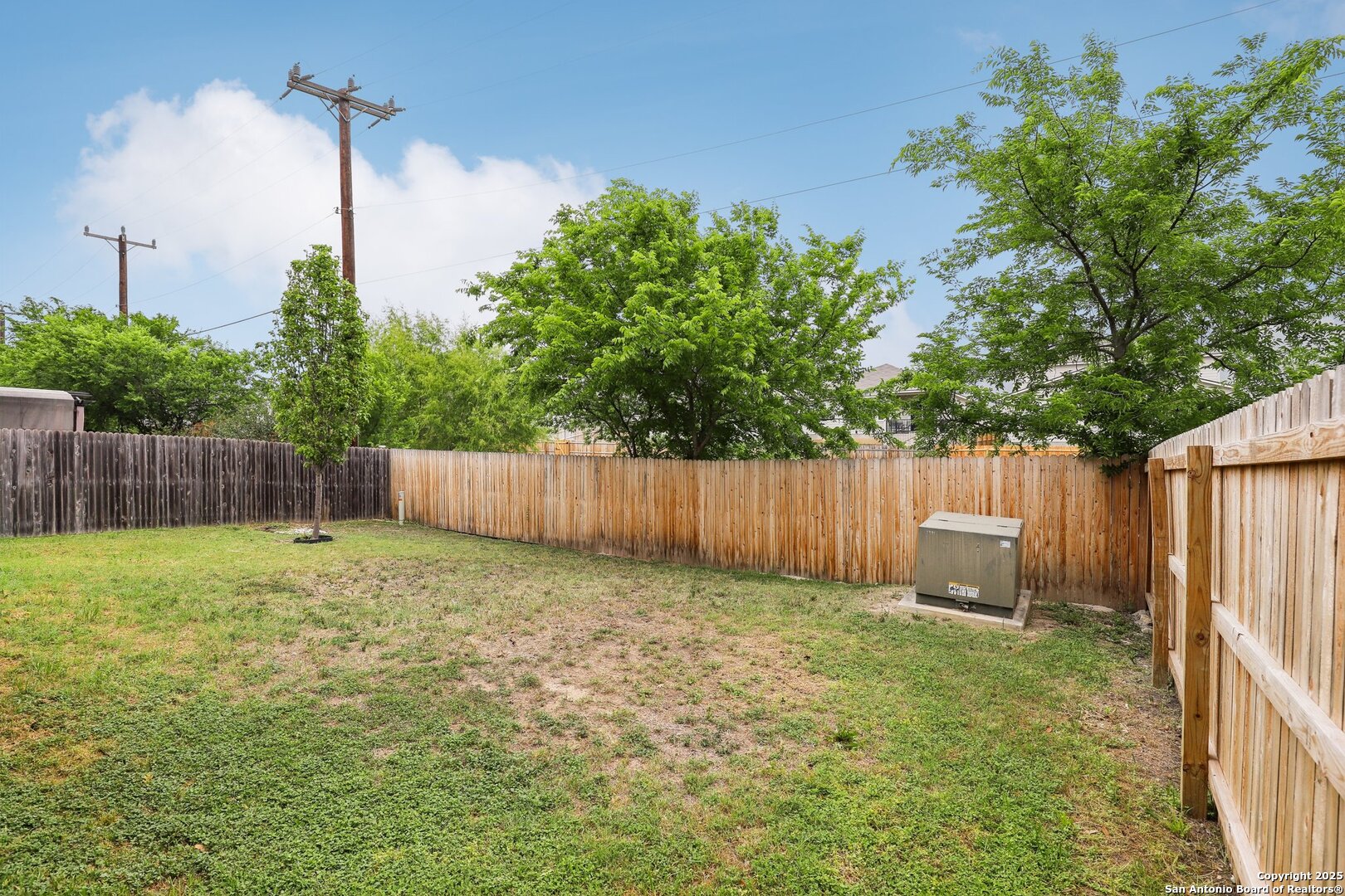 This home is easy to Love! Imagine your style in this canvas ready for YOU. 4 bedroom SINGLE Story with fresh flooring and interior paint. Bright open floor plan allows you to enjoy the home to fullest. Pride of ownership with updated water heater and HVAC system! Primary suite is big with BIG closet! Secondary Bedrooms offer great storage. Another great feature is the back yard!!! Covered and cool under the shade PLUS a nice patio slab AND still room to play in the yard. Owner put love and hard work to prepare for new owner. Great location in the neighborhood gives you all the convenience of the amenities less than a minute walk away!