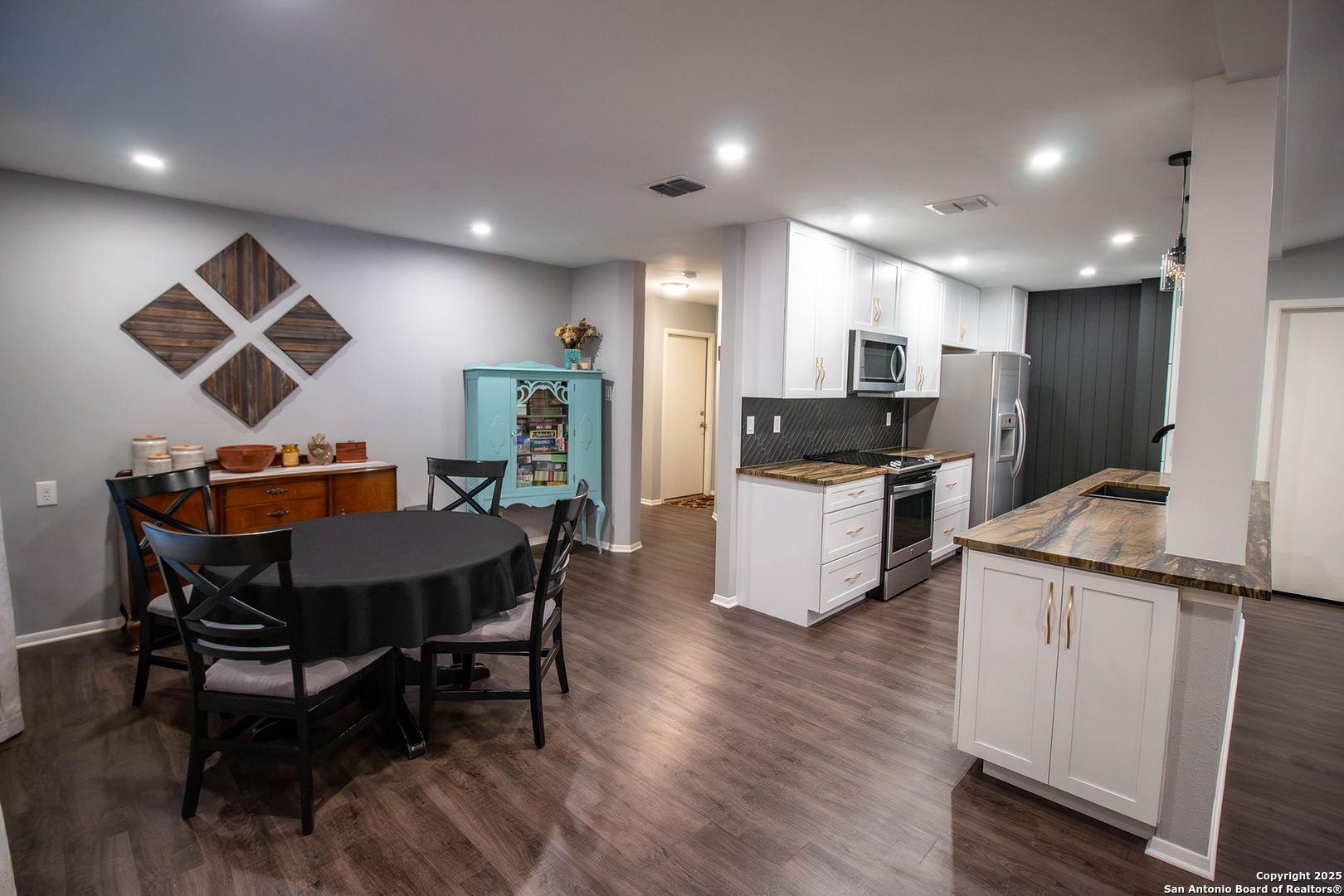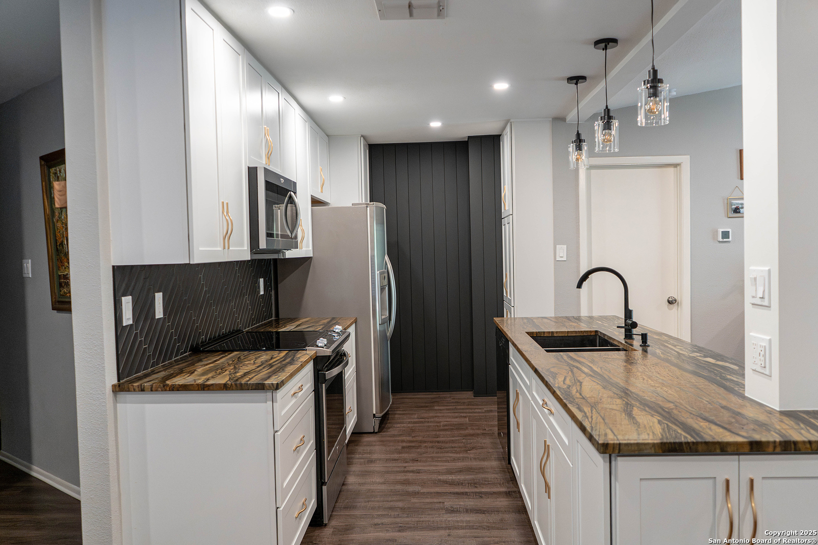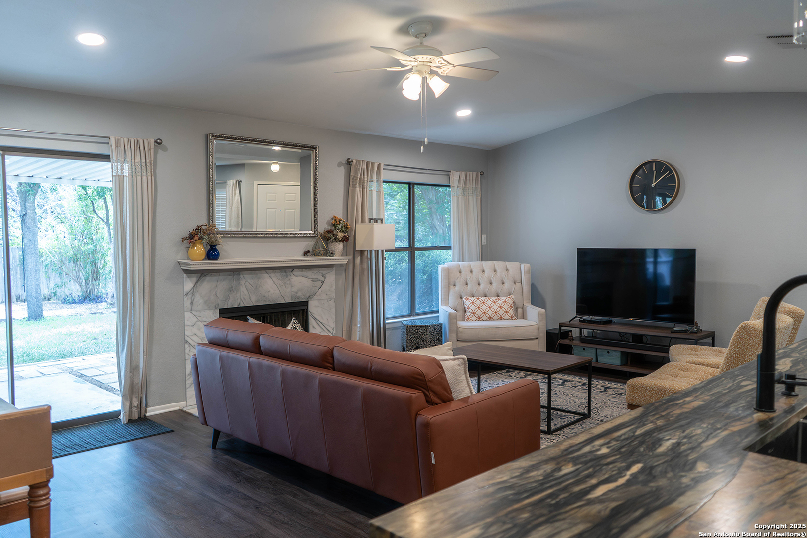 Beautifully updated home near UTSA, Fiesta Texas, The Rim and the Medical Center. The work has been done and is ready for move in. Relax and enjoy your mornings with a view of the peaceful treed green belt in this 3/2/2 with open floorplan, large primary bedroom and bath, newly renovated kitchen(in 2024) with large island and granite counter tops, in the desirable location of NW San Antonio near IH 10 and 1604. City Park at entrance to neighborhood as well as trail access.