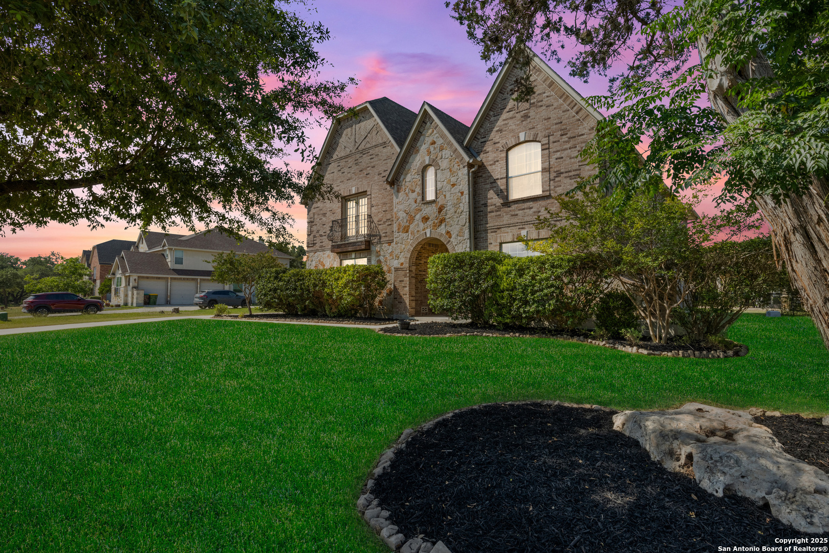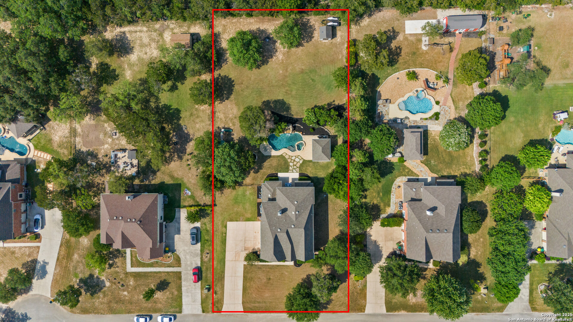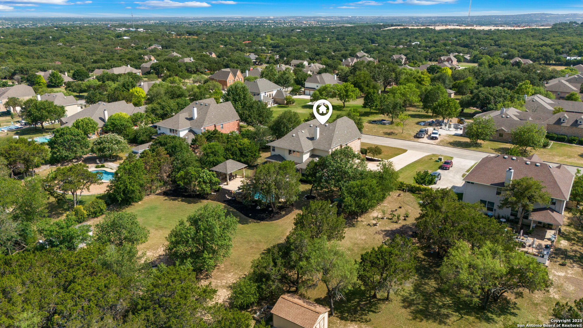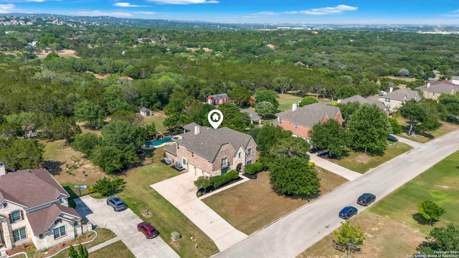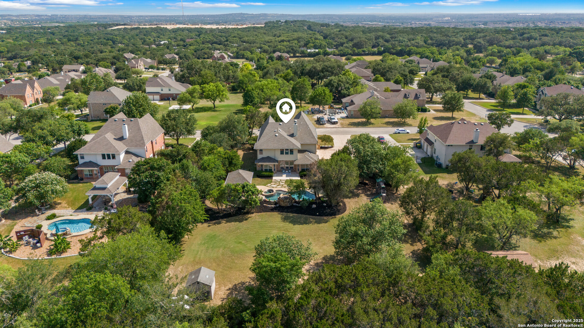 This exceptional home has it all, luxury, space, and lifestyle! Come see this stunning two-story home on a spacious 0.80-acre lot with an IN-GROUND HEATED POOL and attached JACUZZI by Keith Zars! Located in the desirable subdivision of Hearthstone in Helotes, this beautifully maintained property features outstanding curb appeal, 4-sided brick exterior and mature trees. Inside, you'll be welcomed by luxury porcelain tile and engineered hardwood flooring throughout the main level. The formal dining room leads to a cozy family room with a charming corner fireplace and open view of the chef's kitchen, that boasts a huge island, granite countertops, a stylish tile backsplash, white cabinetry, double oven, stainless-steel appliances, and a breakfast nook perfect for both everyday living and entertaining. In the main level you have the spacious primary suite with a large bathroom featuring a garden tub, standing shower, dual vanities, and an oversized walk-in closet. Also, conveniently located on the main floor are the office and laundry room. Upstairs, you'll find four additional bedrooms, two sharing a Jack-and-Jill bath, as well as a spacious game room, and a great media room with a surround sound system. Step outside to your private backyard oasis that features a pool with a water fountain, a large gazebo with an outdoor kitchen, playground set, sprinkler system, a shed and a 3 car garage, all this nested on almost an acre lot, perfect for year-round entertaining. It's a must see! This will not last long!