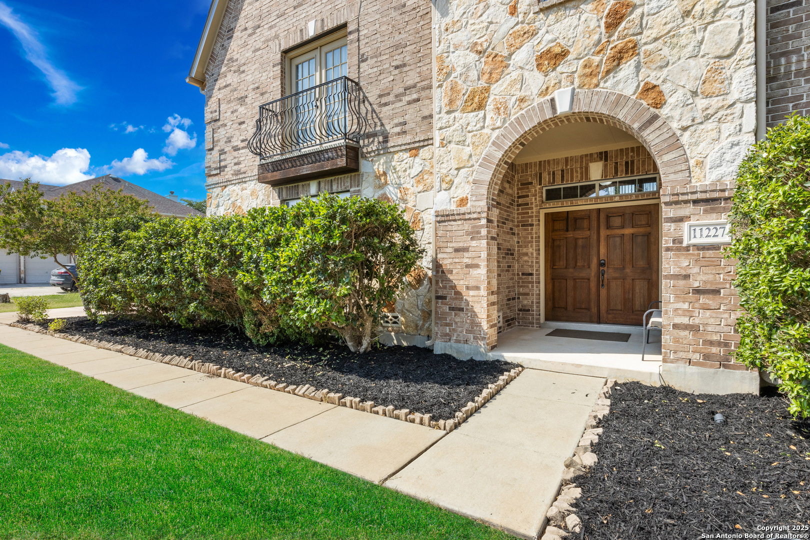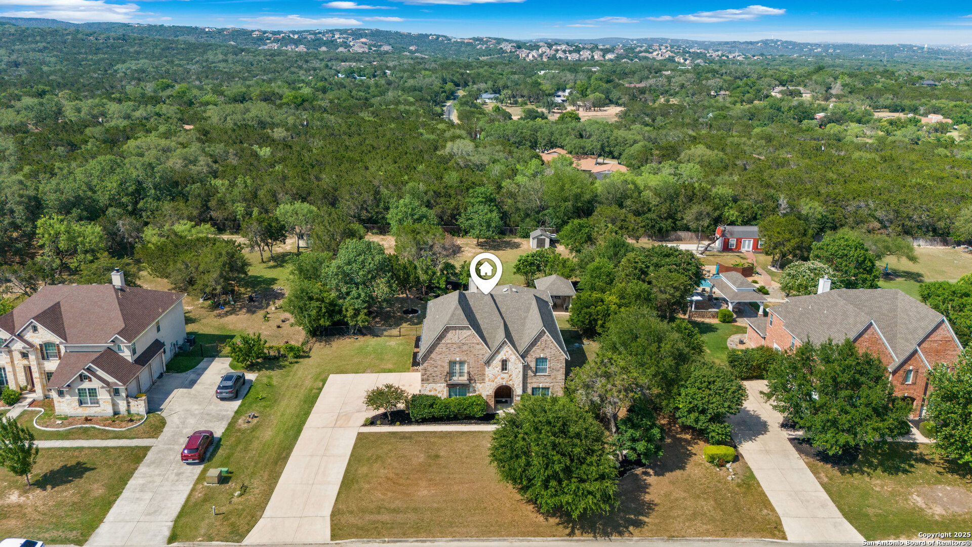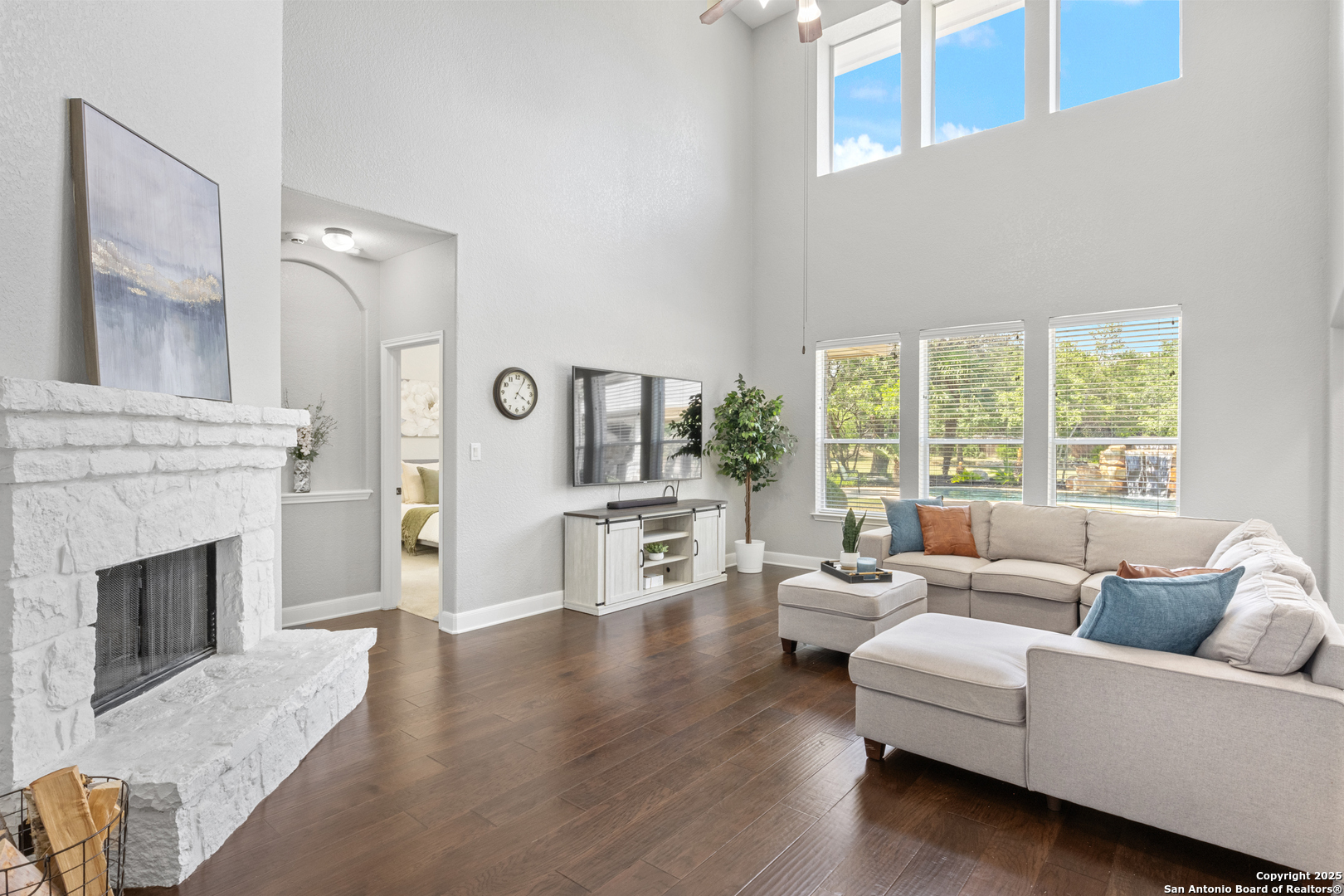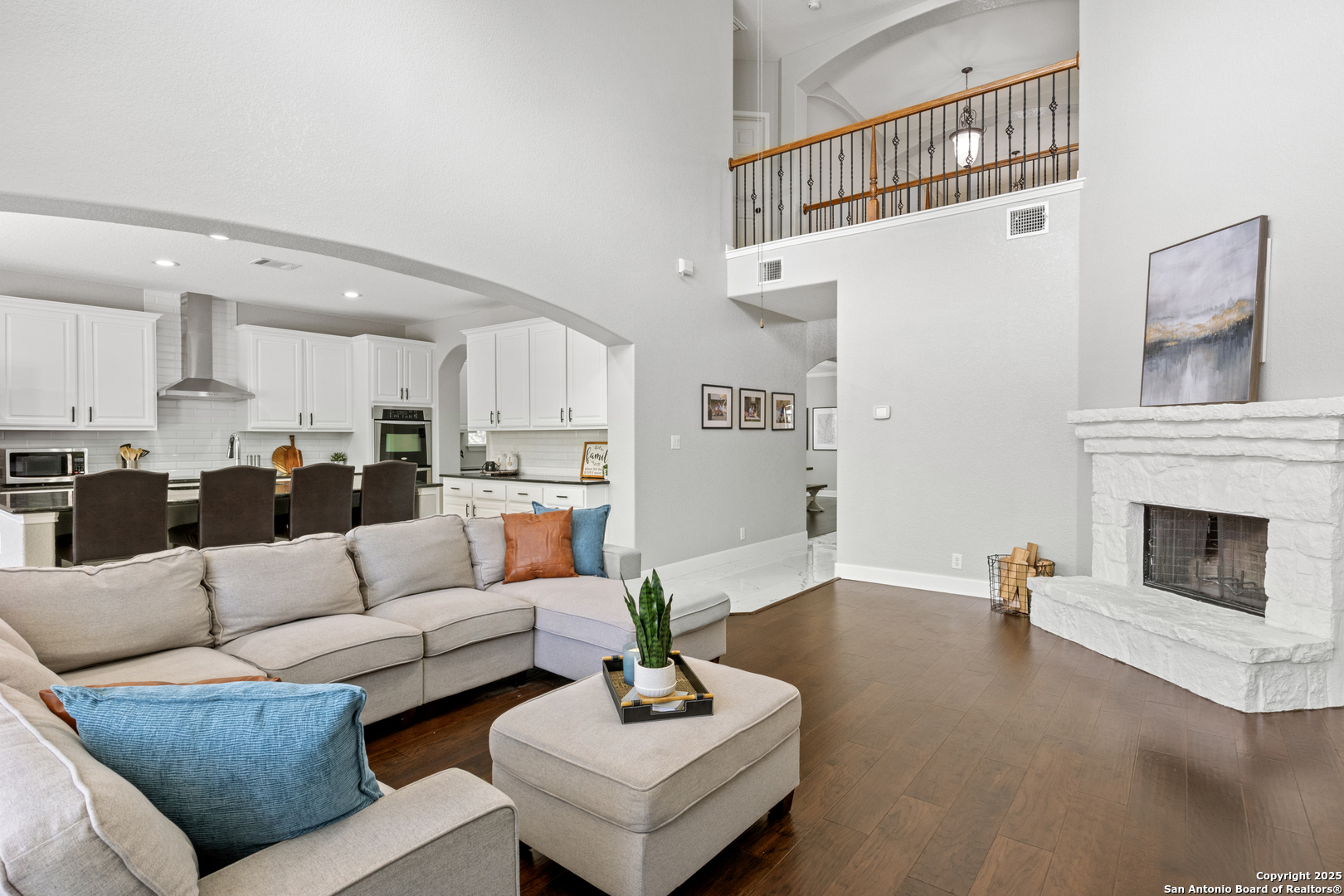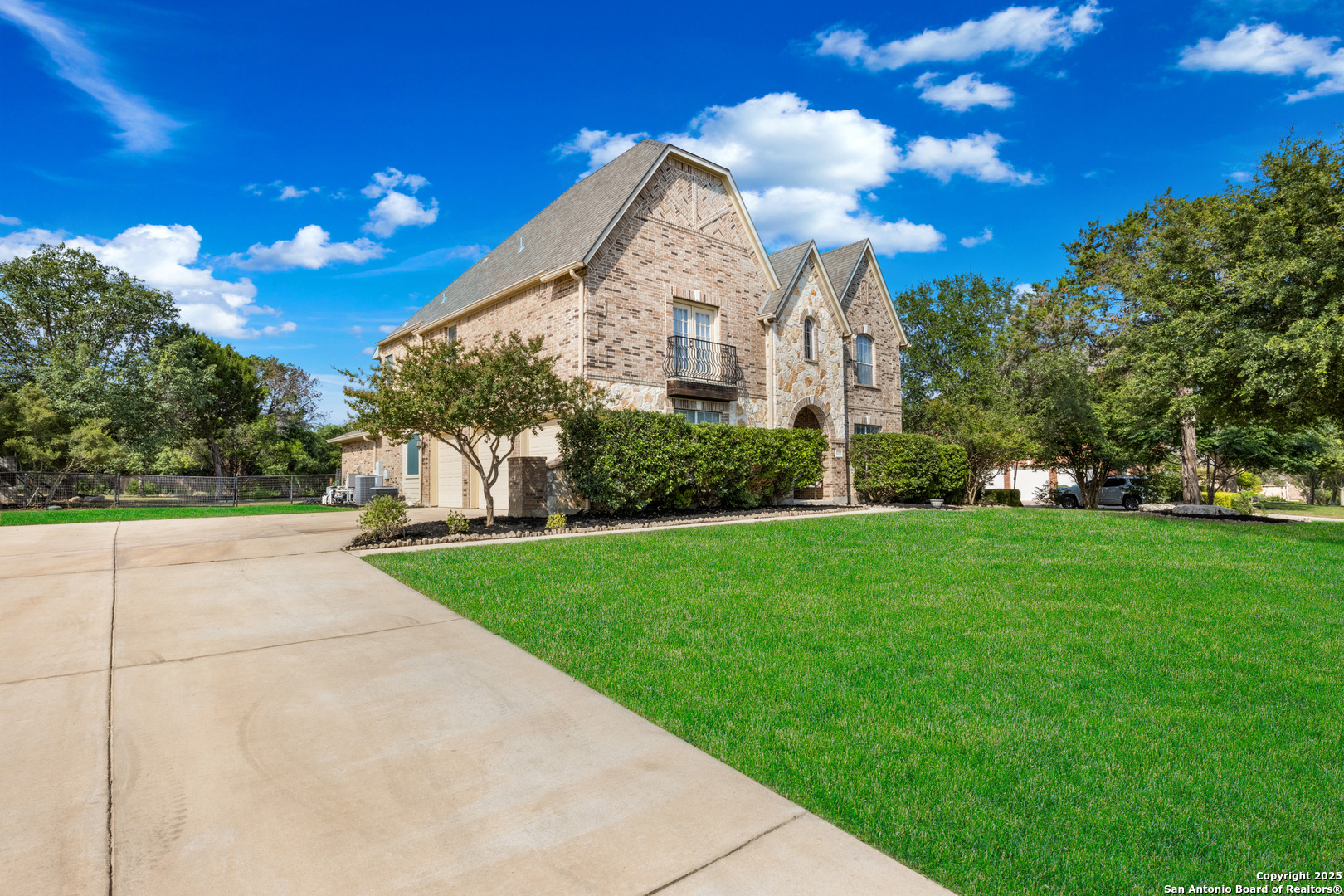 This exceptional home has it all, luxury, space, and lifestyle! Come see this stunning two-story home on a spacious 0.80-acre lot with an IN-GROUND HEATED POOL and attached JACUZZI by Keith Zars! Located in the desirable subdivision of Hearthstone in Helotes, this beautifully maintained property features outstanding curb appeal, 4-sided brick exterior and mature trees. Inside, you'll be welcomed by luxury porcelain tile and engineered hardwood flooring throughout the main level. The formal dining room leads to a cozy family room with a charming corner fireplace and open view of the chef's kitchen, that boasts a huge island, granite countertops, a stylish tile backsplash, white cabinetry, double oven, stainless-steel appliances, and a breakfast nook perfect for both everyday living and entertaining. In the main level you have the spacious primary suite with a large bathroom featuring a garden tub, standing shower, dual vanities, and an oversized walk-in closet. Also, conveniently located on the main floor are the office and laundry room. Upstairs, you'll find four additional bedrooms, two sharing a Jack-and-Jill bath, as well as a spacious game room, and a great media room with a surround sound system. Step outside to your private backyard oasis that features a pool with a water fountain, a large gazebo with an outdoor kitchen, playground set, sprinkler system, a shed and a 3 car garage, all this nested on almost an acre lot, perfect for year-round entertaining. It's a must see! This will not last long!