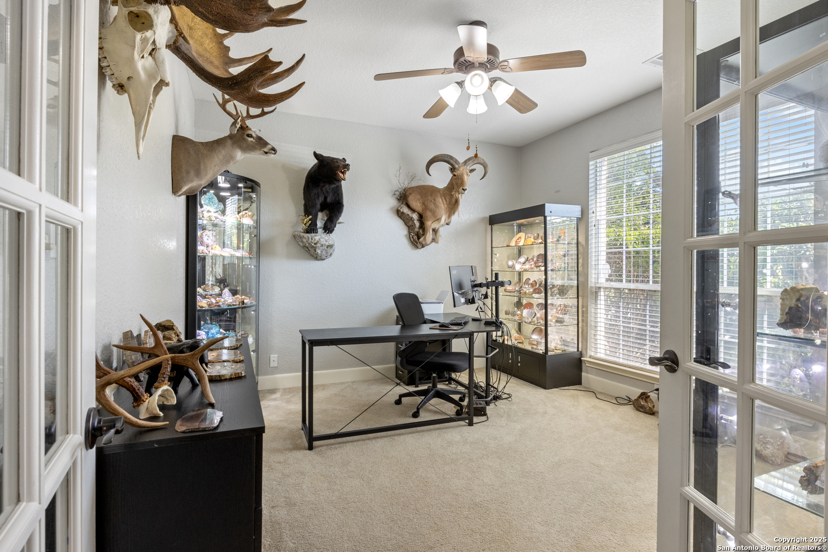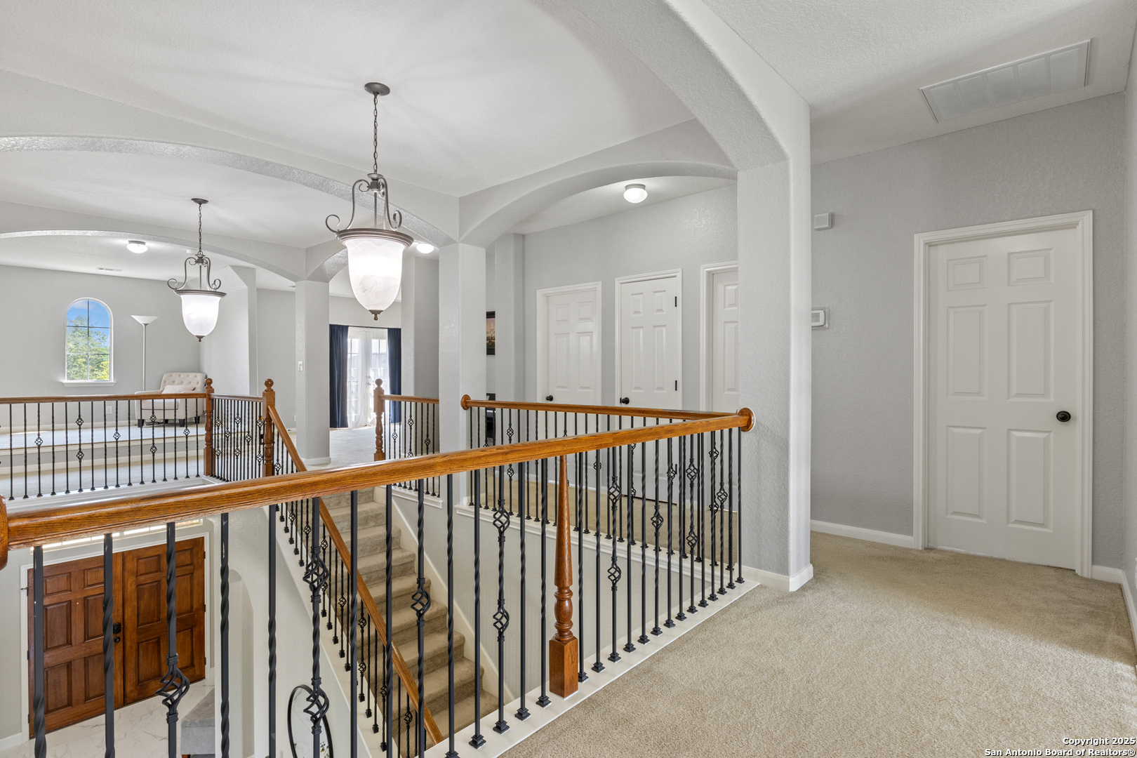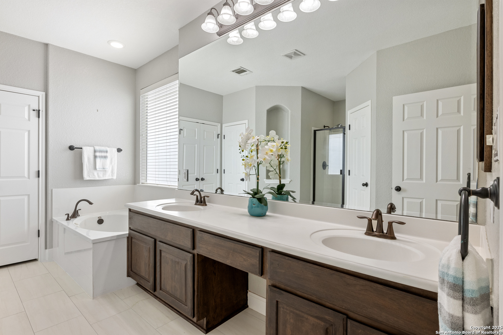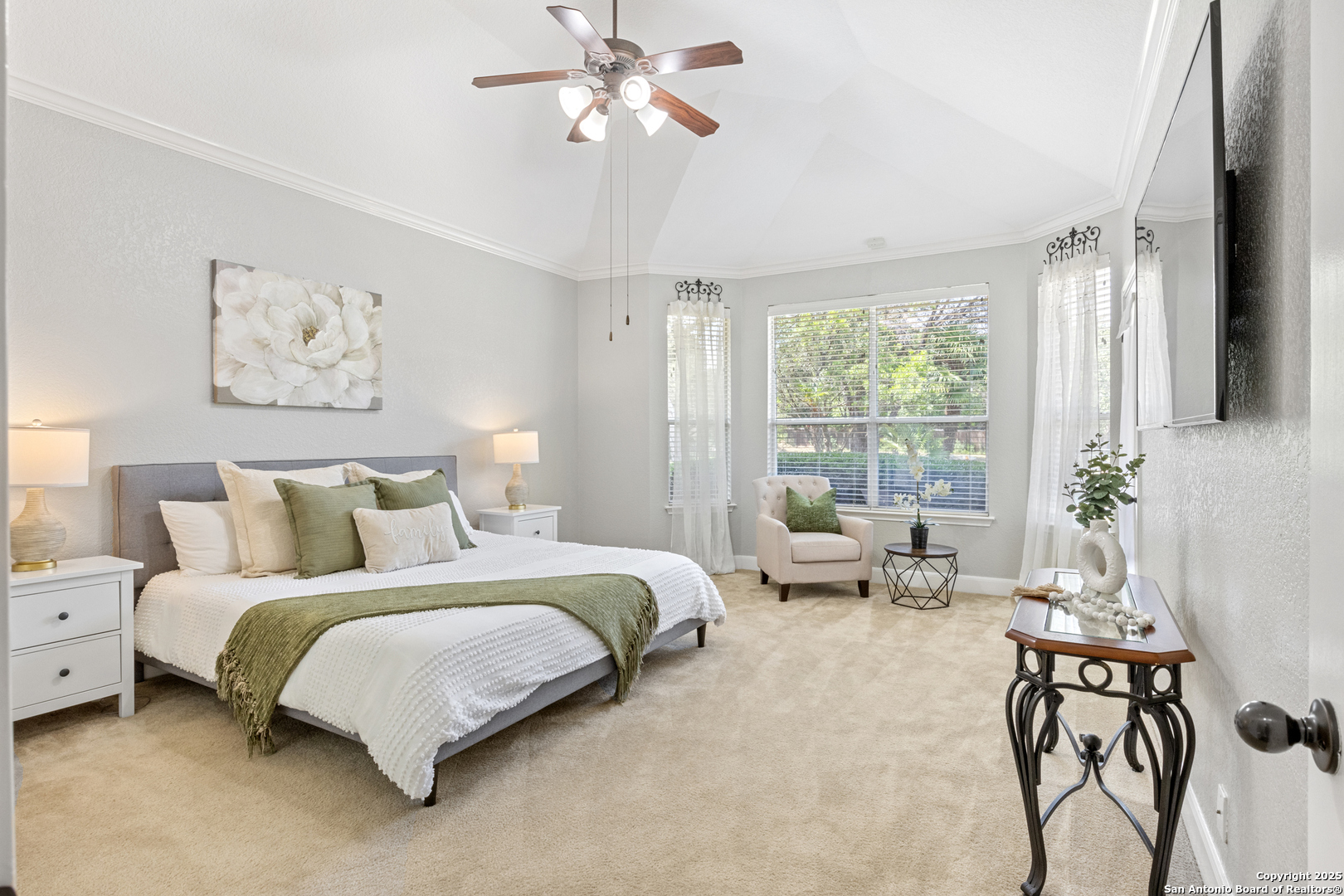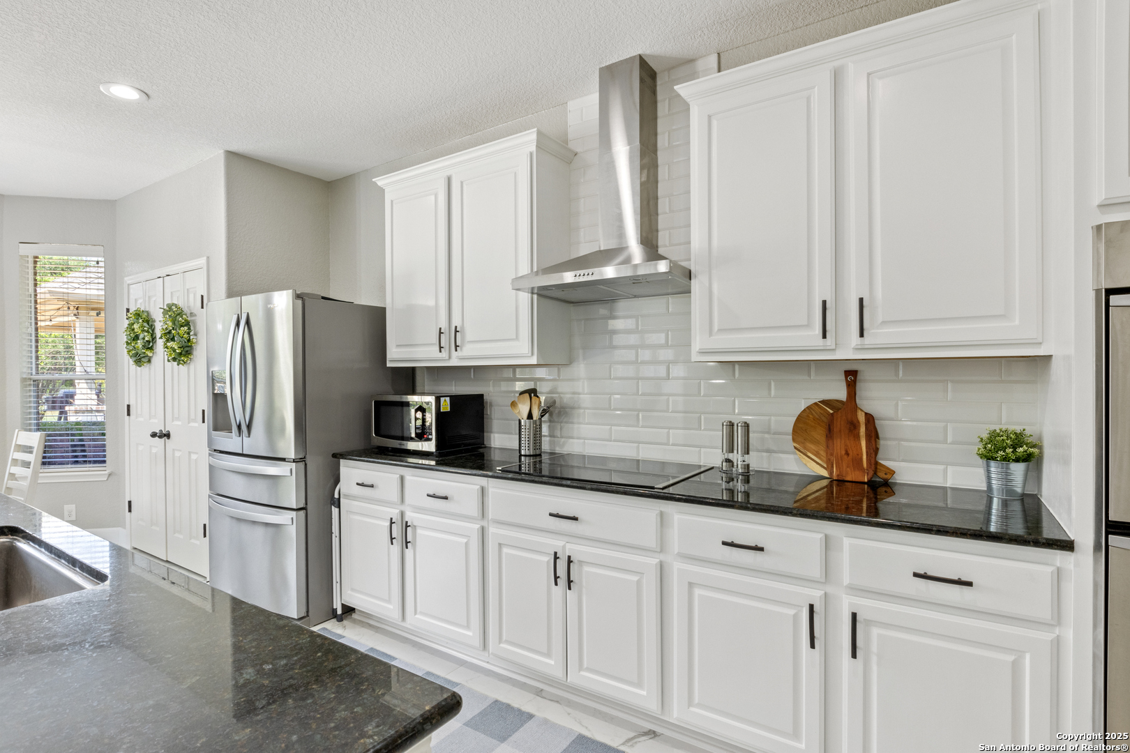 This exceptional home has it all, luxury, space, and lifestyle! Come see this stunning two-story home on a spacious 0.80-acre lot with an IN-GROUND HEATED POOL and attached JACUZZI by Keith Zars! Located in the desirable subdivision of Hearthstone in Helotes, this beautifully maintained property features outstanding curb appeal, 4-sided brick exterior and mature trees. Inside, you'll be welcomed by luxury porcelain tile and engineered hardwood flooring throughout the main level. The formal dining room leads to a cozy family room with a charming corner fireplace and open view of the chef's kitchen, that boasts a huge island, granite countertops, a stylish tile backsplash, white cabinetry, double oven, stainless-steel appliances, and a breakfast nook perfect for both everyday living and entertaining. In the main level you have the spacious primary suite with a large bathroom featuring a garden tub, standing shower, dual vanities, and an oversized walk-in closet. Also, conveniently located on the main floor are the office and laundry room. Upstairs, you'll find four additional bedrooms, two sharing a Jack-and-Jill bath, as well as a spacious game room, and a great media room with a surround sound system. Step outside to your private backyard oasis that features a pool with a water fountain, a large gazebo with an outdoor kitchen, playground set, sprinkler system, a shed and a 3 car garage, all this nested on almost an acre lot, perfect for year-round entertaining. It's a must see! This will not last long!