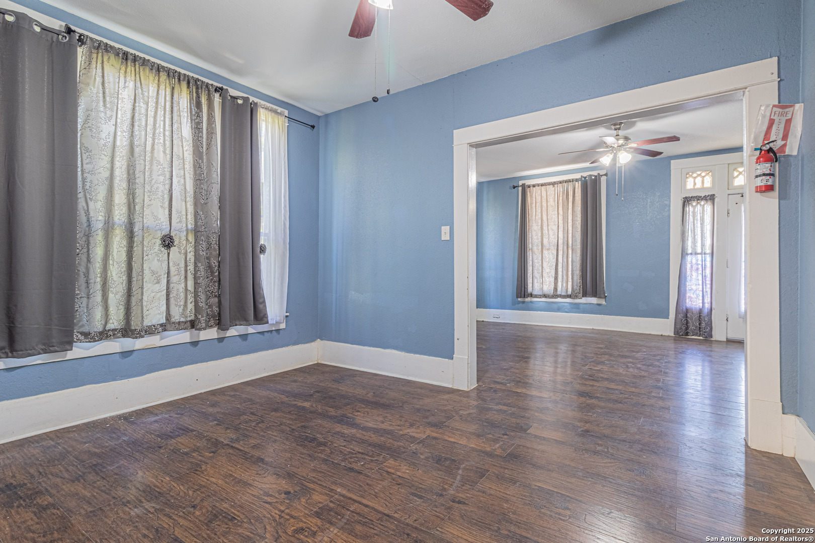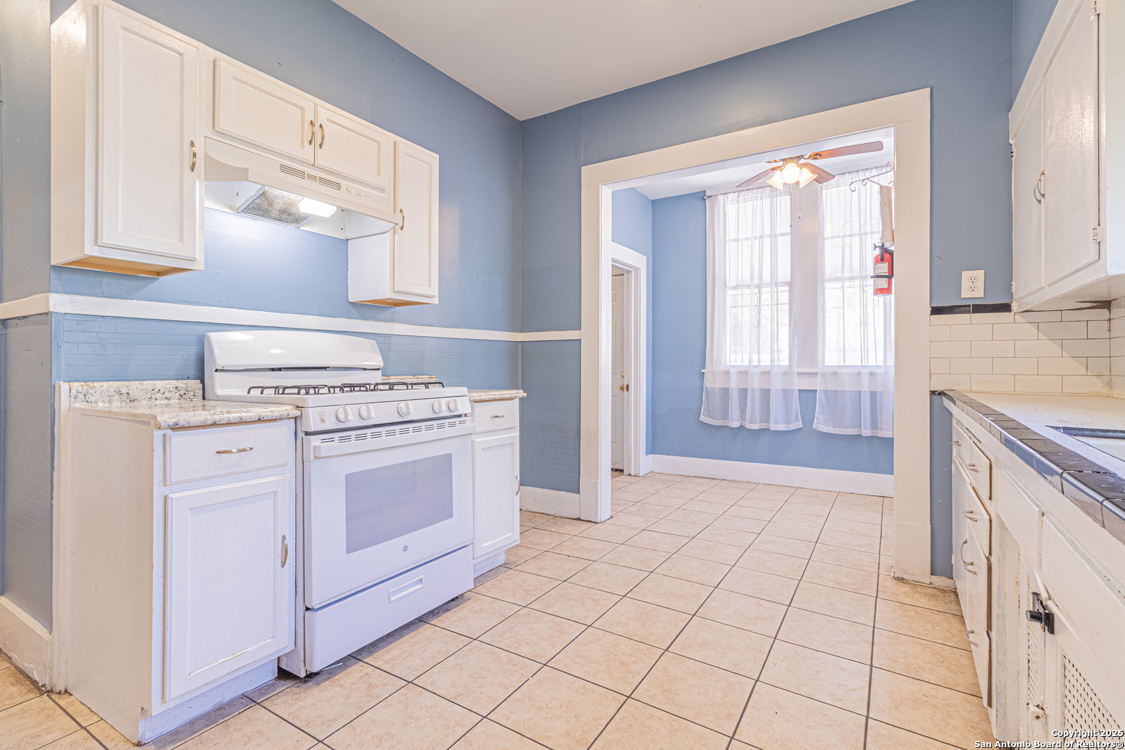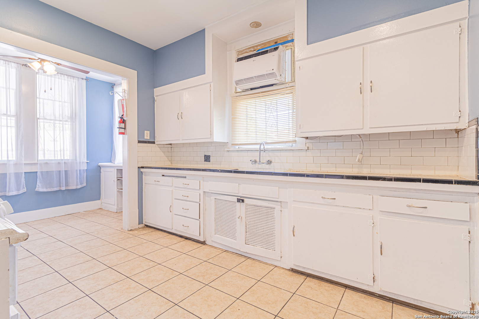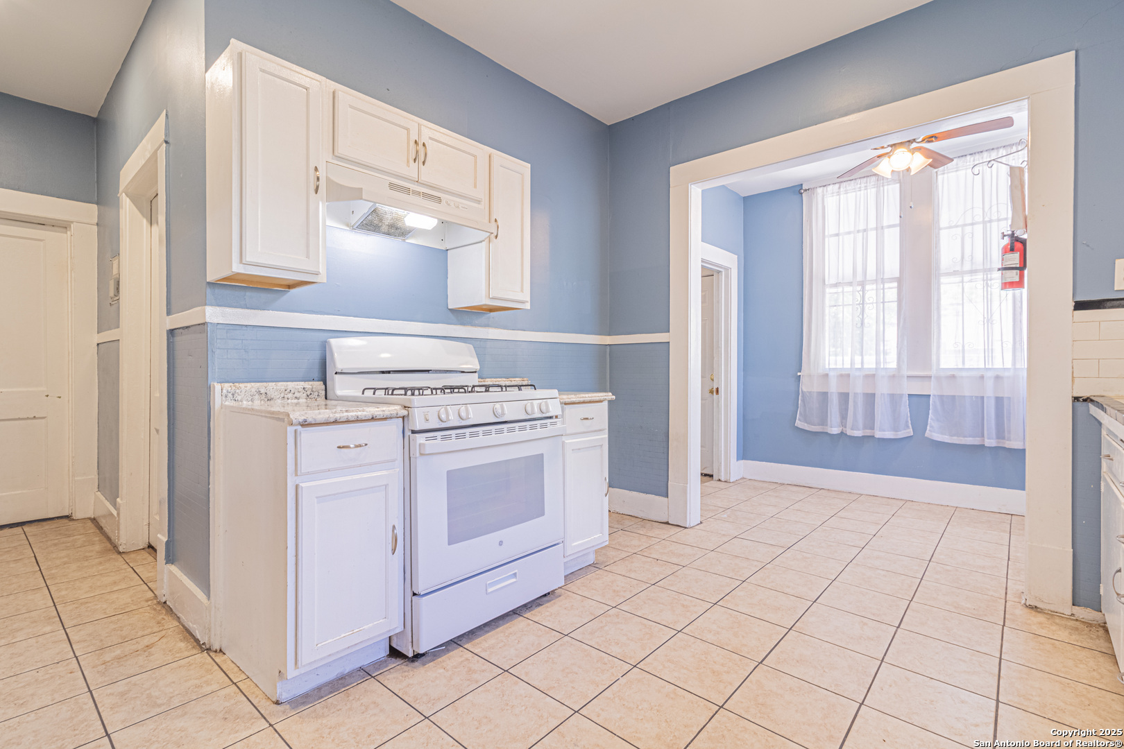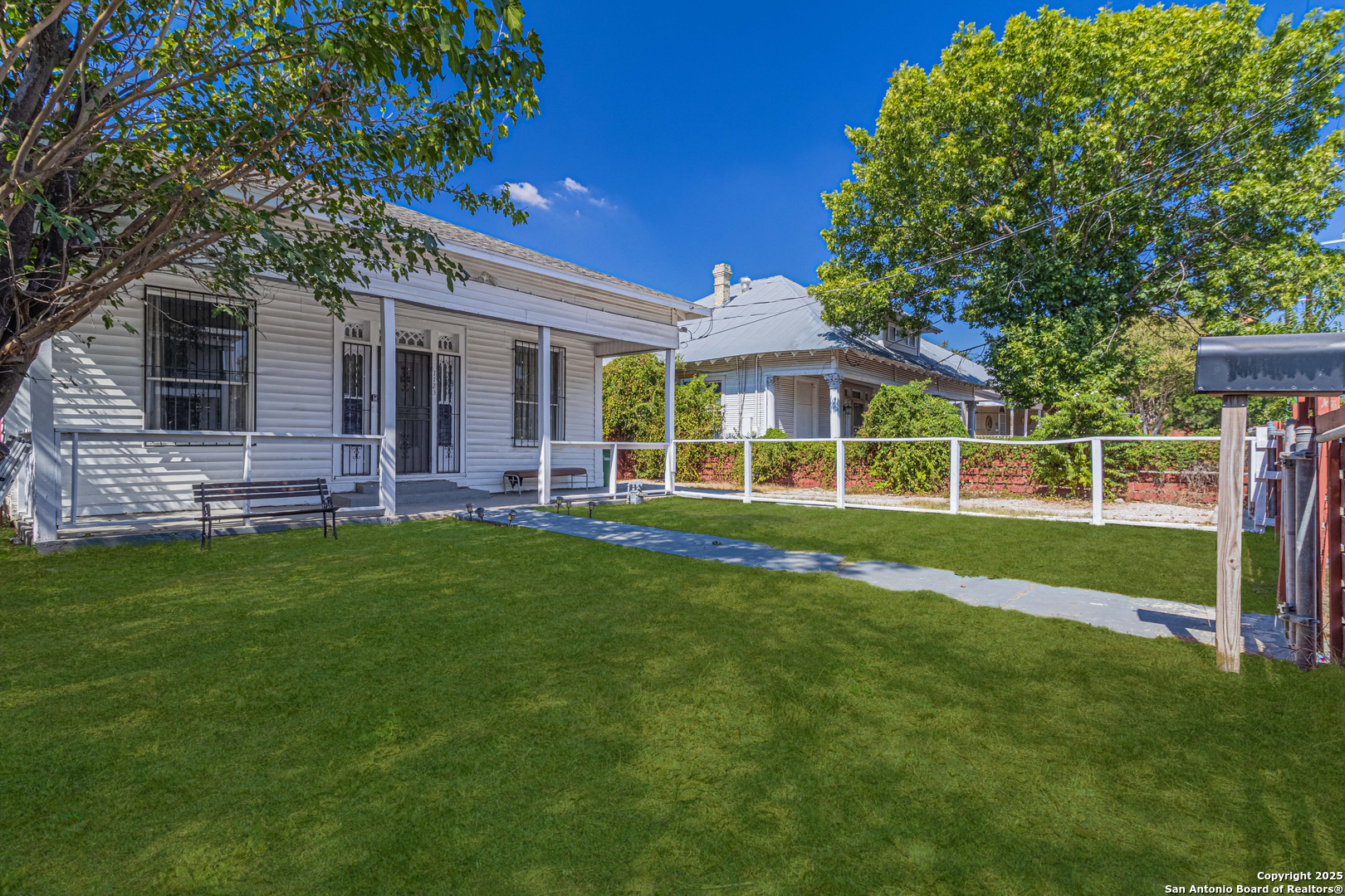 Nestled in the revitalized Denver Heights neighborhood, this charming 3-bedroom, 2-bath home offers 1,348 square feet of versatile living space just minutes from downtown San Antonio. Featuring a welcoming front porch and ramp access, the home combines historic character with front yard sprinklers, with practical updates. Inside, you'll find high ceilings, tile and wood-look flooring, and a spacious layout with plenty of natural light. The kitchen includes white cabinetry, granite-style countertops, and a gas stove, while the adjacent dining area and flex spaces allow for creative use-whether as an office, breakfast nook, or reading corner. The home offers two full bathrooms with single vanities and tile-surround tubs, along with a dedicated laundry room for added convenience. Each bedroom has generous proportions and unique closet layouts, with large windows that invite the light in. Out back, enjoy a deep yard with privacy fencing, mature trees, and space for outdoor entertaining or gardening. Whether you're looking for your next investment, your first home, or something close to downtown, this property is filled with potential and value in a high-demand area.