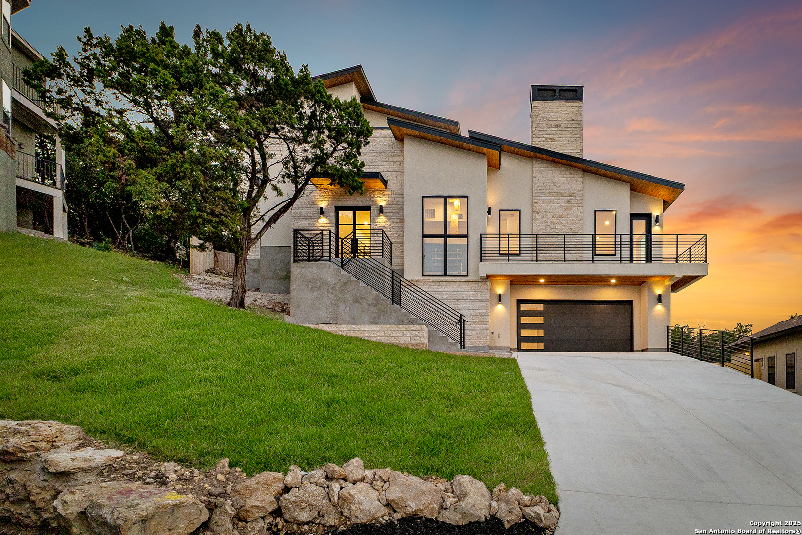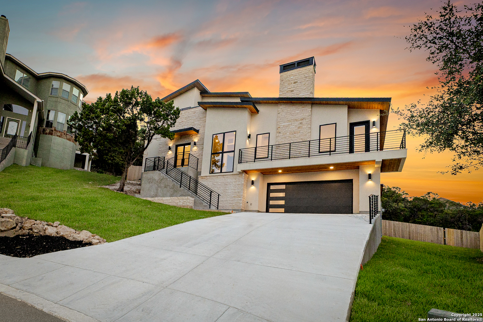Stunning new custom home in Helotes! This tri-level home offers 4 bedrooms, 4 full bathrooms, and 3,242 sqft of thoughtfully designed living space. Featuring an open-concept layout, a modern kitchen with sleek finishes, and spacious living areas ideal for entertaining. The primary suite includes a luxurious en-suite bath, while additional bedrooms offer flexibility for guests or home office use. Enjoy scenic Hill Country views from your private outdoor balcony. Nestled among mature trees and rolling hills, this home provides access to walking trails, community events, and is located in highly rated Northside ISD. Conveniently close to La Cantera, top dining, golf courses, and historic Floore's Country Store.