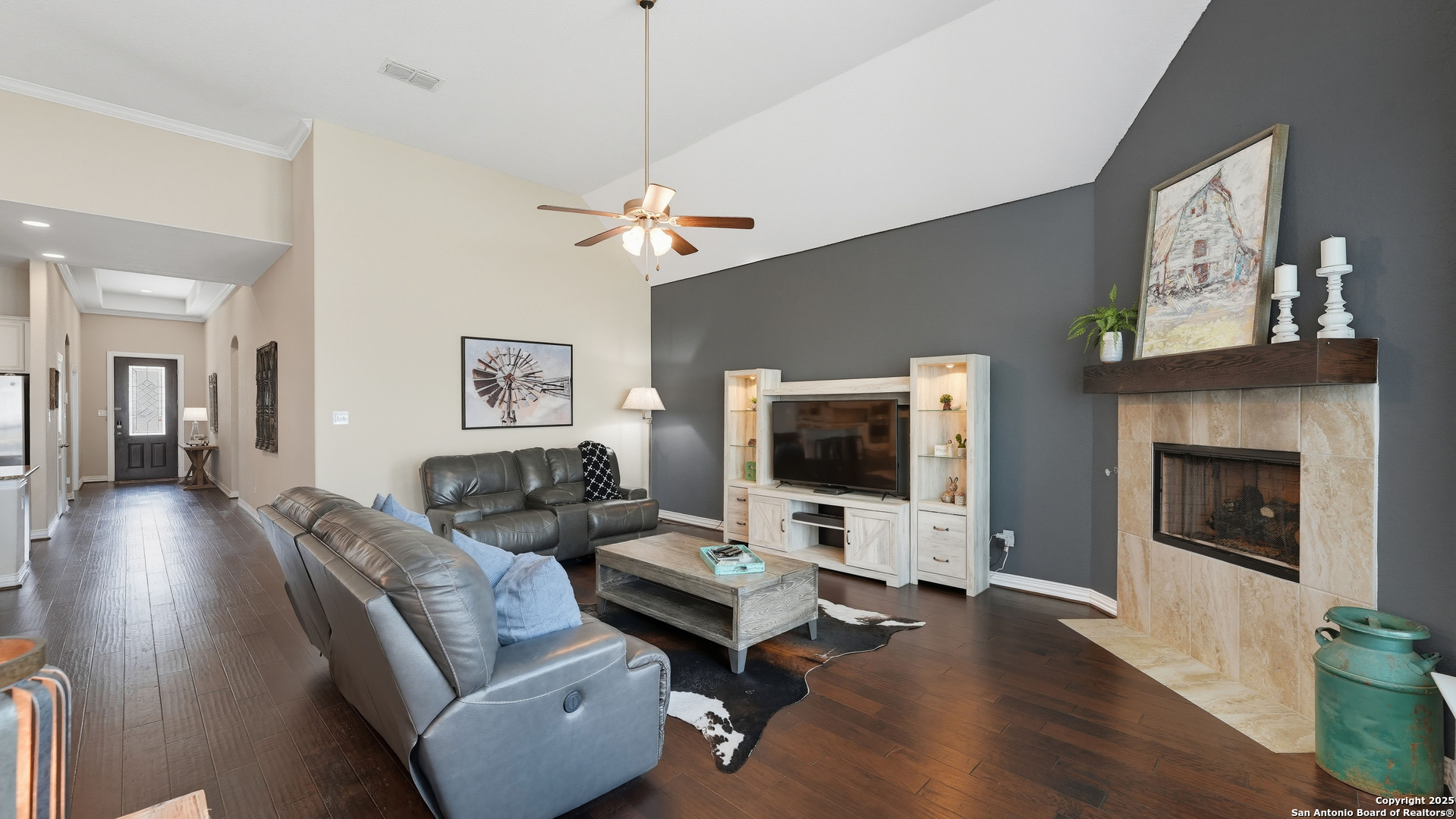 Welcome to this meticulously maintained 3-bedroom, 2-bath home with a dedicated office, nestled in the highly desirable Stone Crossing community in New Braunfels. Surrounded by mature trees and boasting incredible curb appeal, this home offers both comfort and elegance in a peaceful setting. Step inside to discover soaring ceilings that create a spacious, open feel throughout. The expansive master suite provides a true retreat, complete with ample space and a spa-like en-suite bath. The heart of the home features a gourmet kitchen with a gas cooking, massive walk-in pantry, perfect for all your storage needs and entertaining essentials. Enjoy indoor-outdoor living with the enlarged covered patio, ideal for relaxing evenings or weekend gatherings. The office offers a quiet space for remote work, hobbies, or a fourth bedroom option. With pride of ownership evident throughout, this home feels like new and is move-in ready. Located close to shopping, dining, and top-rated schools, this property is a must-see!