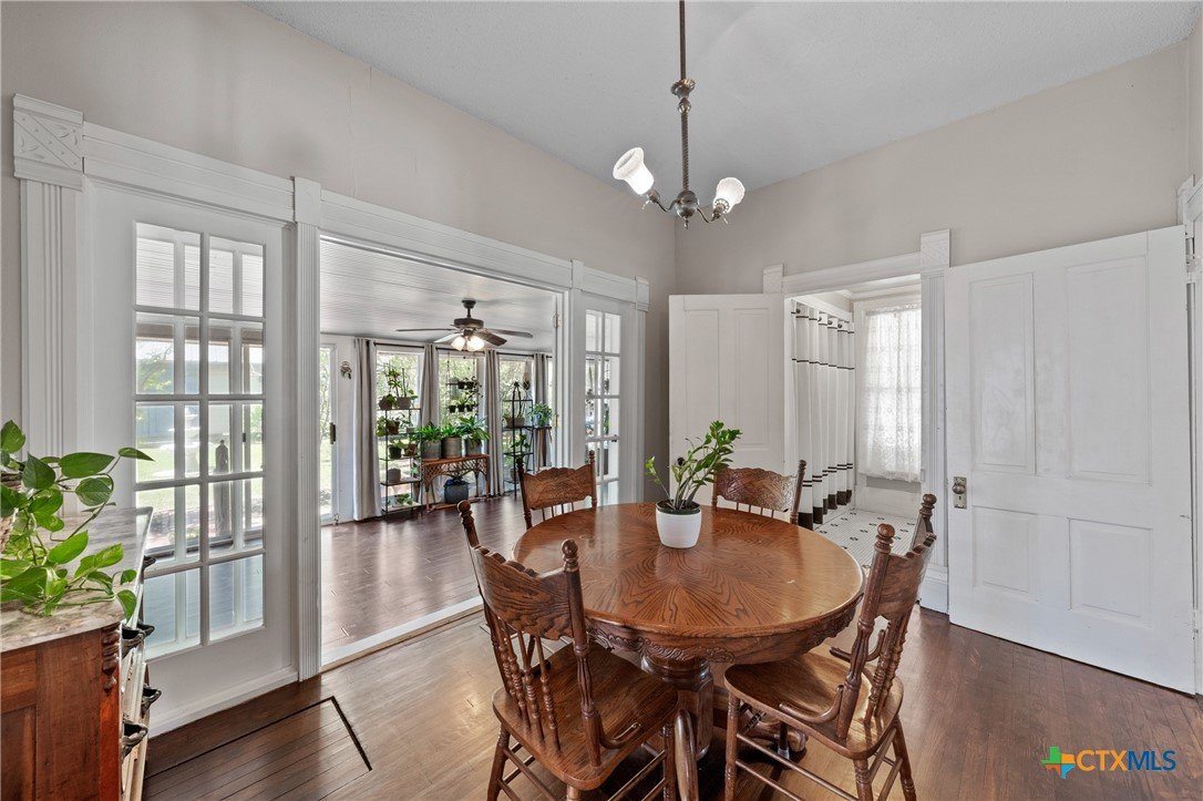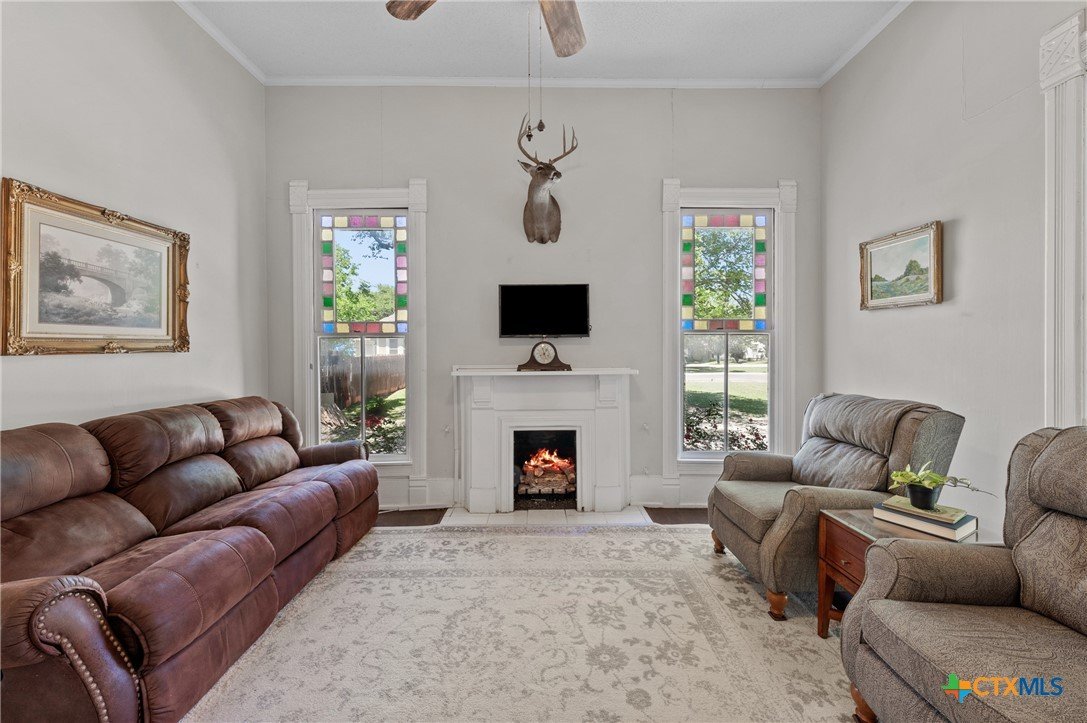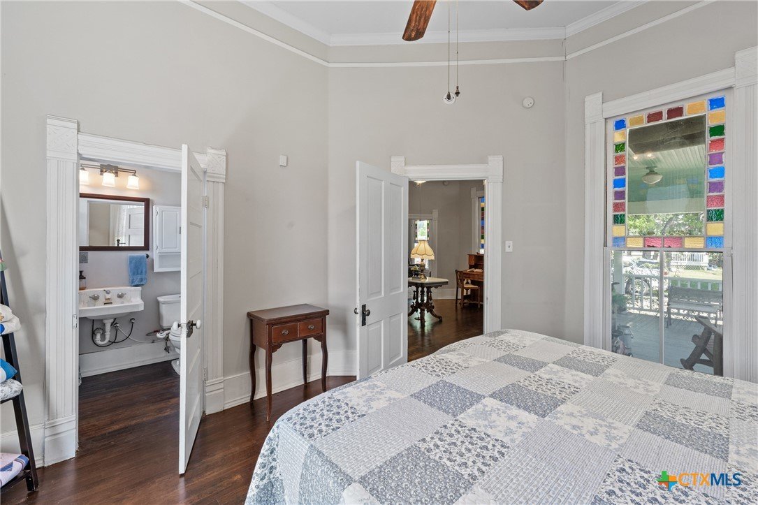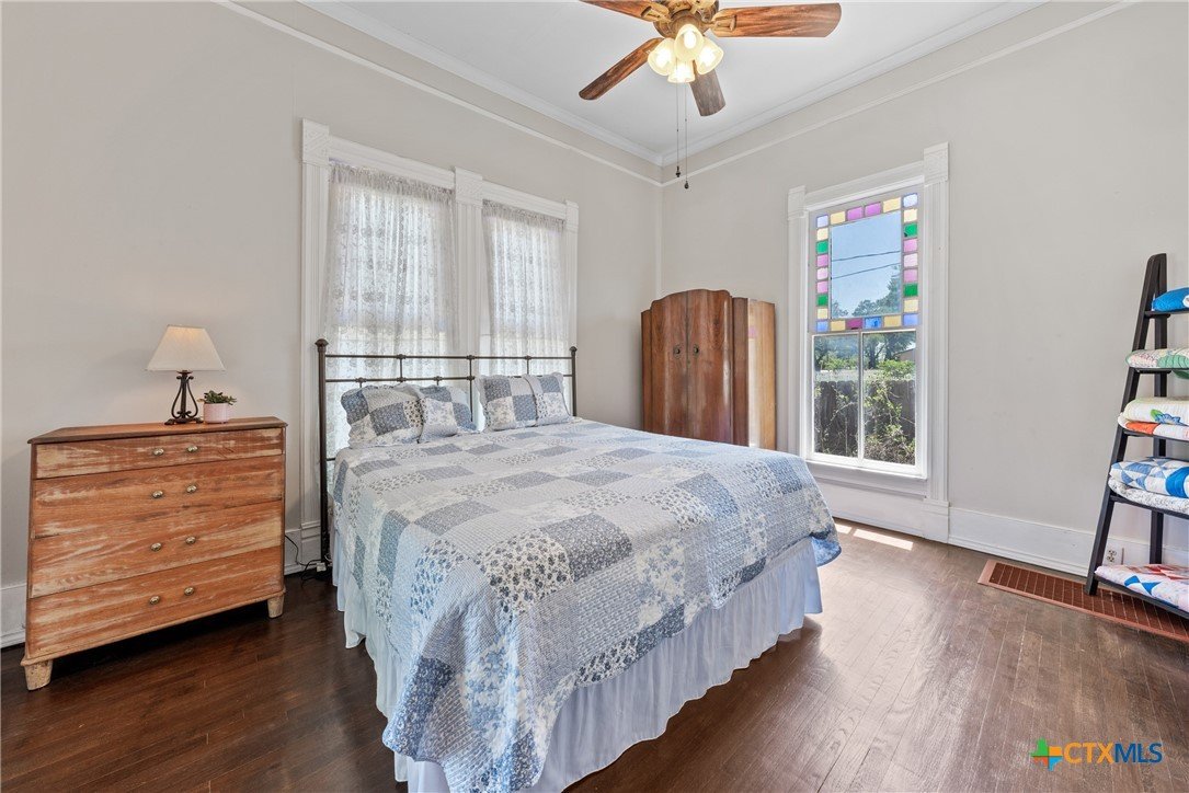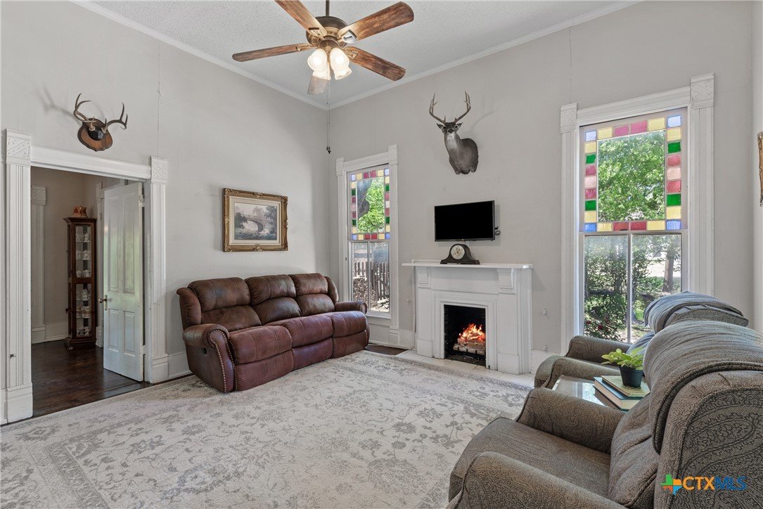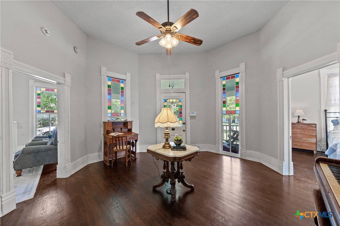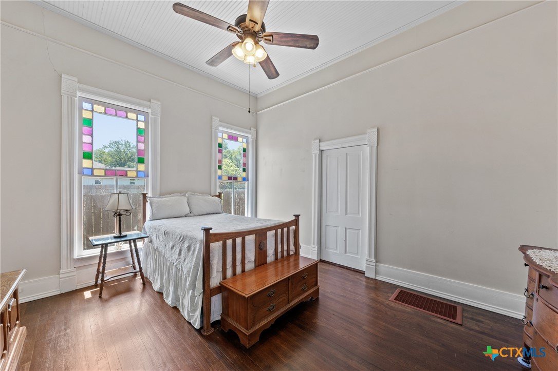 Step into a history book with this 1904 Eastlake Victorian Architectual style home. This is a history buff's or someone who appreciates character dream home! This home has a story to tell and so many original details still intact. As you approach the inviting front porch, you'll be welcomed by beautiful stained-glass windows and the original front door complete with the embossed bronze hardware. The parlor is just as charming, surrounded by additional windows and access to several points of the home. Hardwood floors run throughout the home and the soaring ceilings and windows give the home a grand yet inviting ambiance. You'll appreciate the large kitchen with ample workspace and a period specific stove replica that adds even more character! The dining room is anchored by a gasolier light that was found in the attic and restored. The sunroom is lined with beautiful floor to ceiling windows that pour sunlight in while also showcasing the adorable backyard. A brick paved patio is the perfect place to relax while enjoying the shaded backyard, garden area, and rose beds. This property is filled with charm and character everywhere you look!
