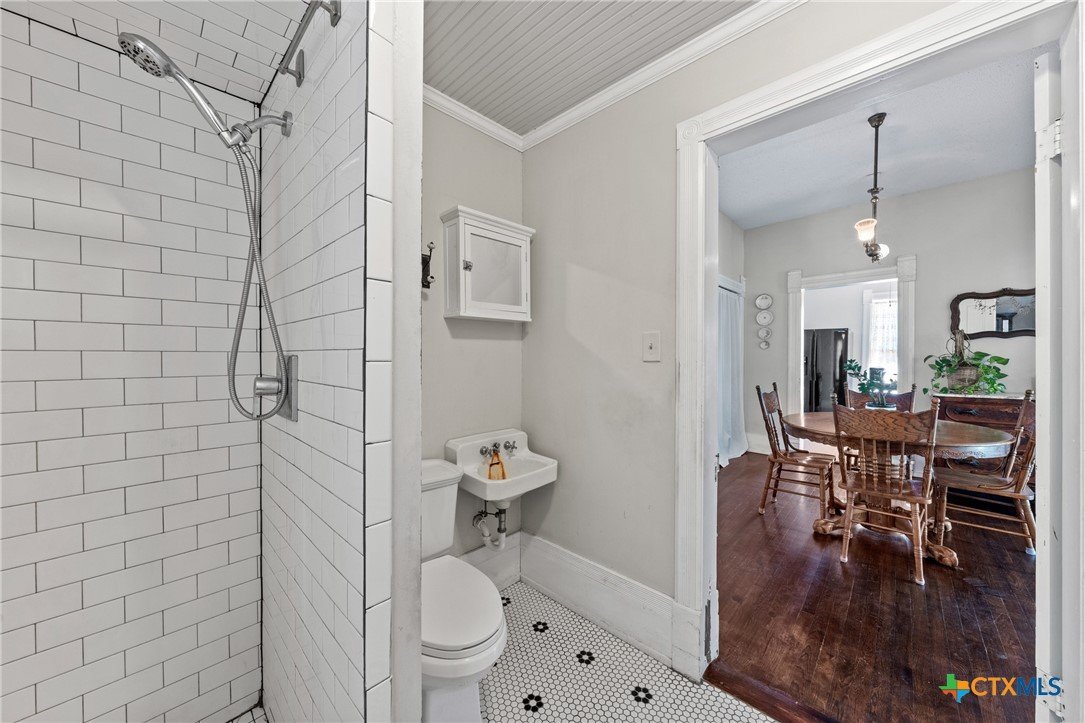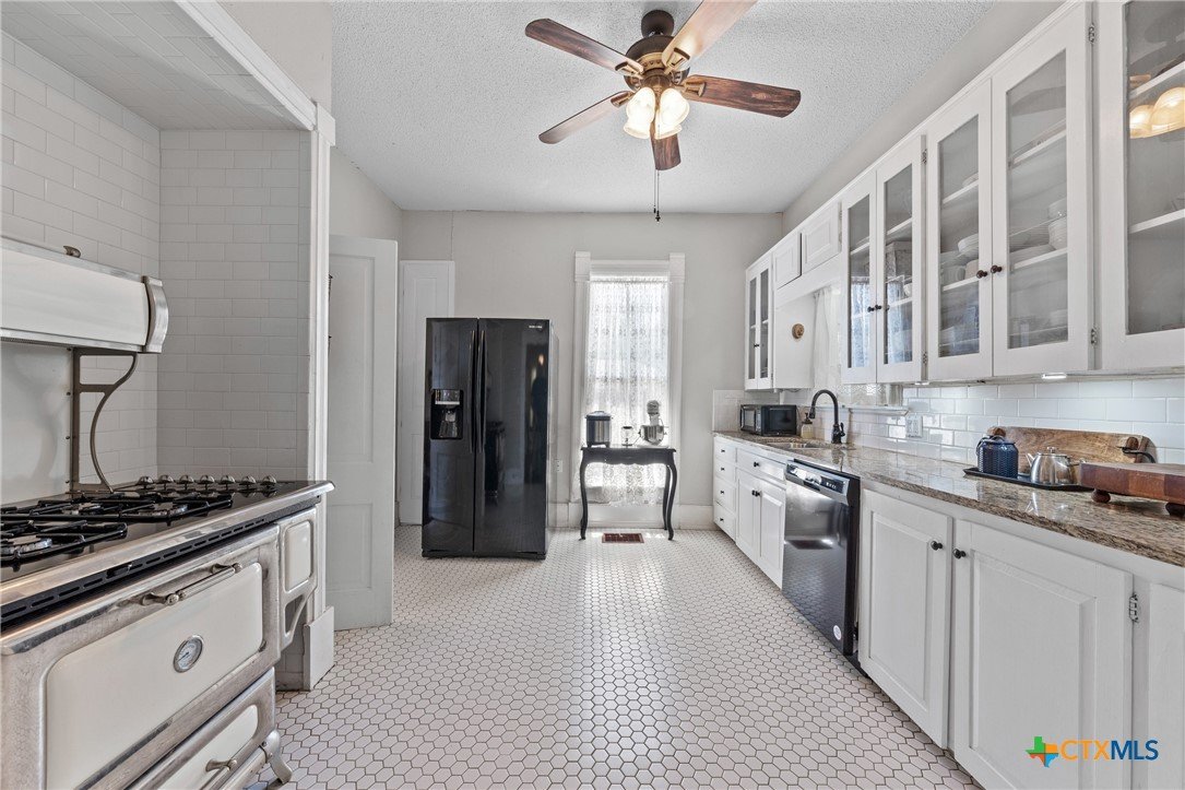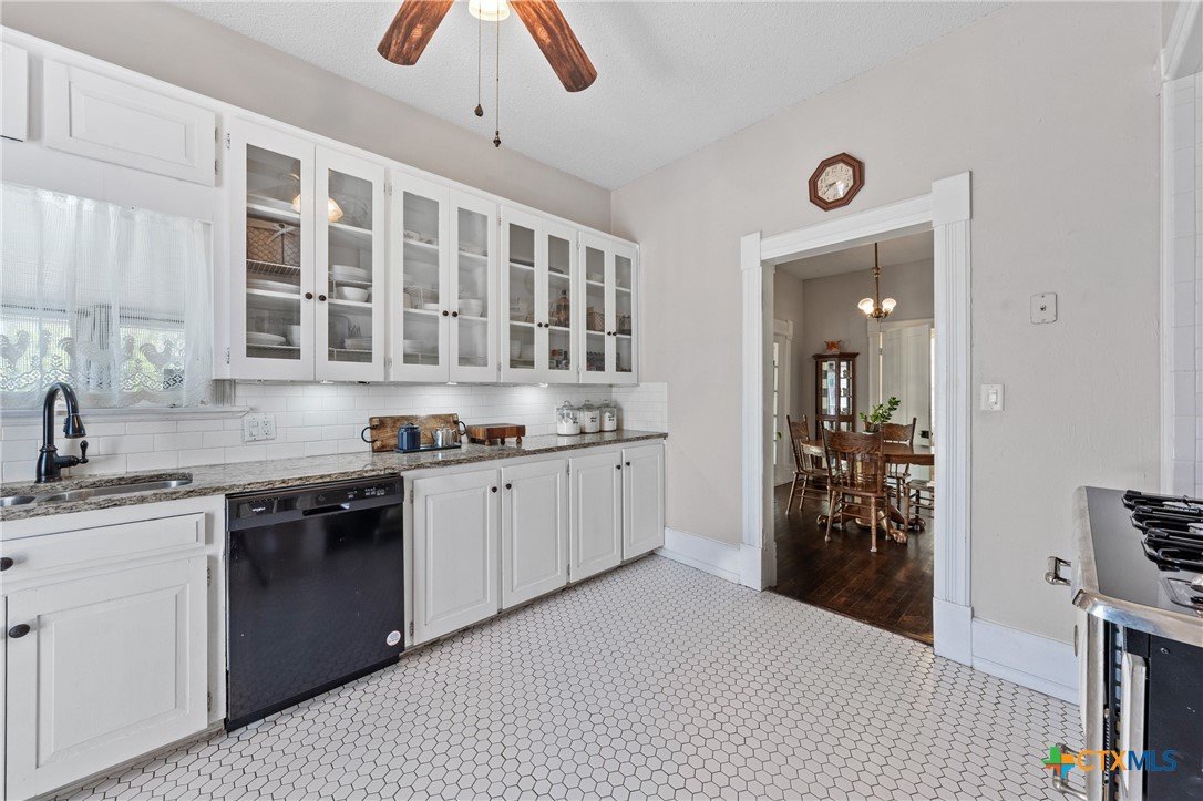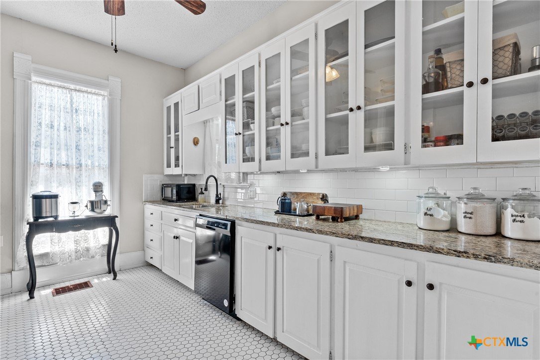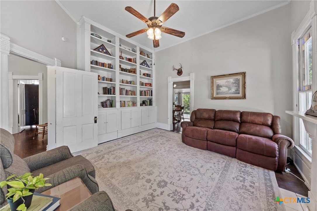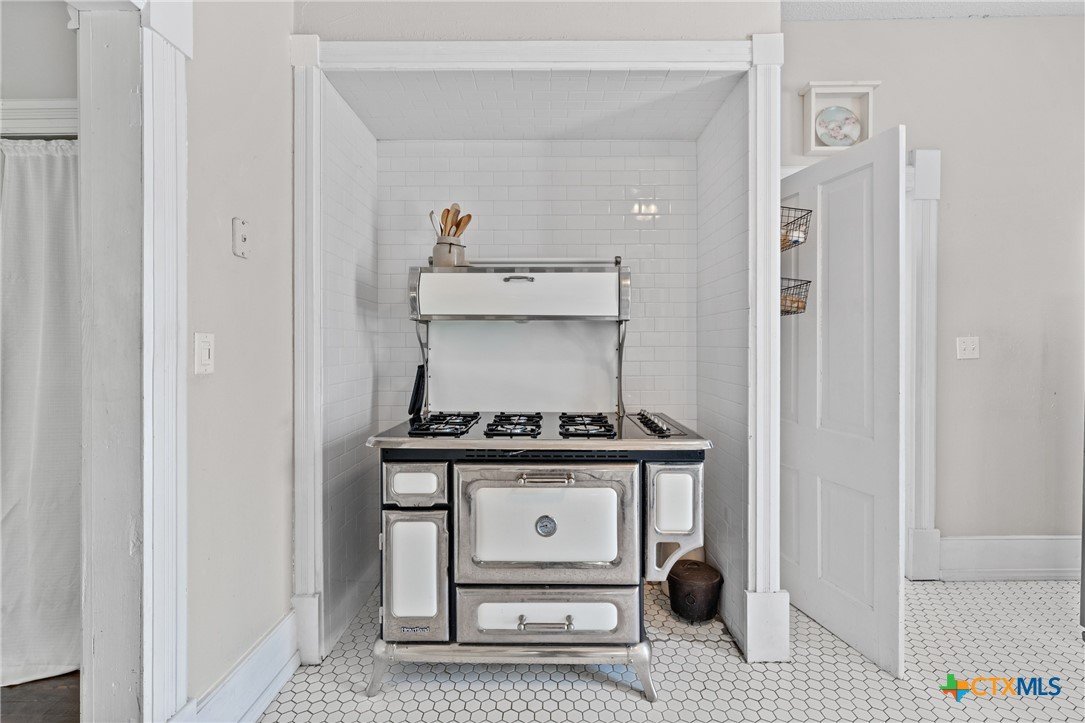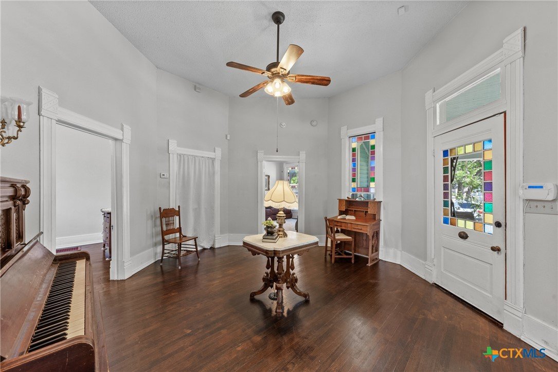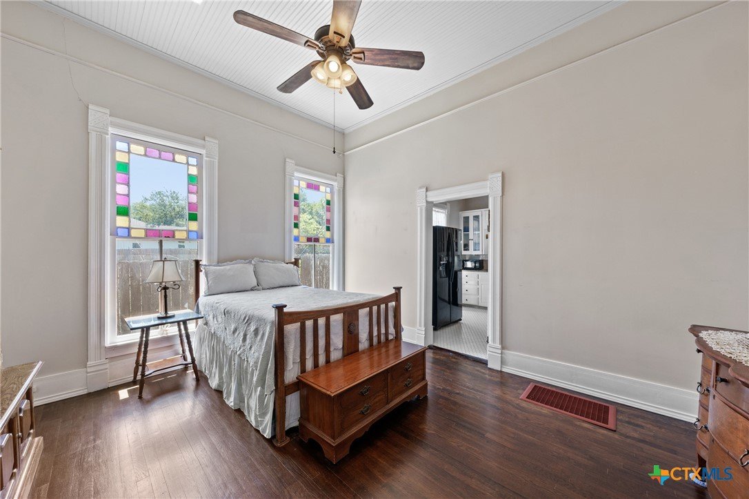 Step into a history book with this 1904 Eastlake Victorian Architectual style home. This is a history buff's or someone who appreciates character dream home! This home has a story to tell and so many original details still intact. As you approach the inviting front porch, you'll be welcomed by beautiful stained-glass windows and the original front door complete with the embossed bronze hardware. The parlor is just as charming, surrounded by additional windows and access to several points of the home. Hardwood floors run throughout the home and the soaring ceilings and windows give the home a grand yet inviting ambiance. You'll appreciate the large kitchen with ample workspace and a period specific stove replica that adds even more character! The dining room is anchored by a gasolier light that was found in the attic and restored. The sunroom is lined with beautiful floor to ceiling windows that pour sunlight in while also showcasing the adorable backyard. A brick paved patio is the perfect place to relax while enjoying the shaded backyard, garden area, and rose beds. This property is filled with charm and character everywhere you look!