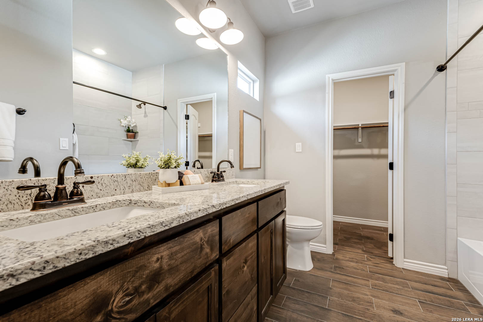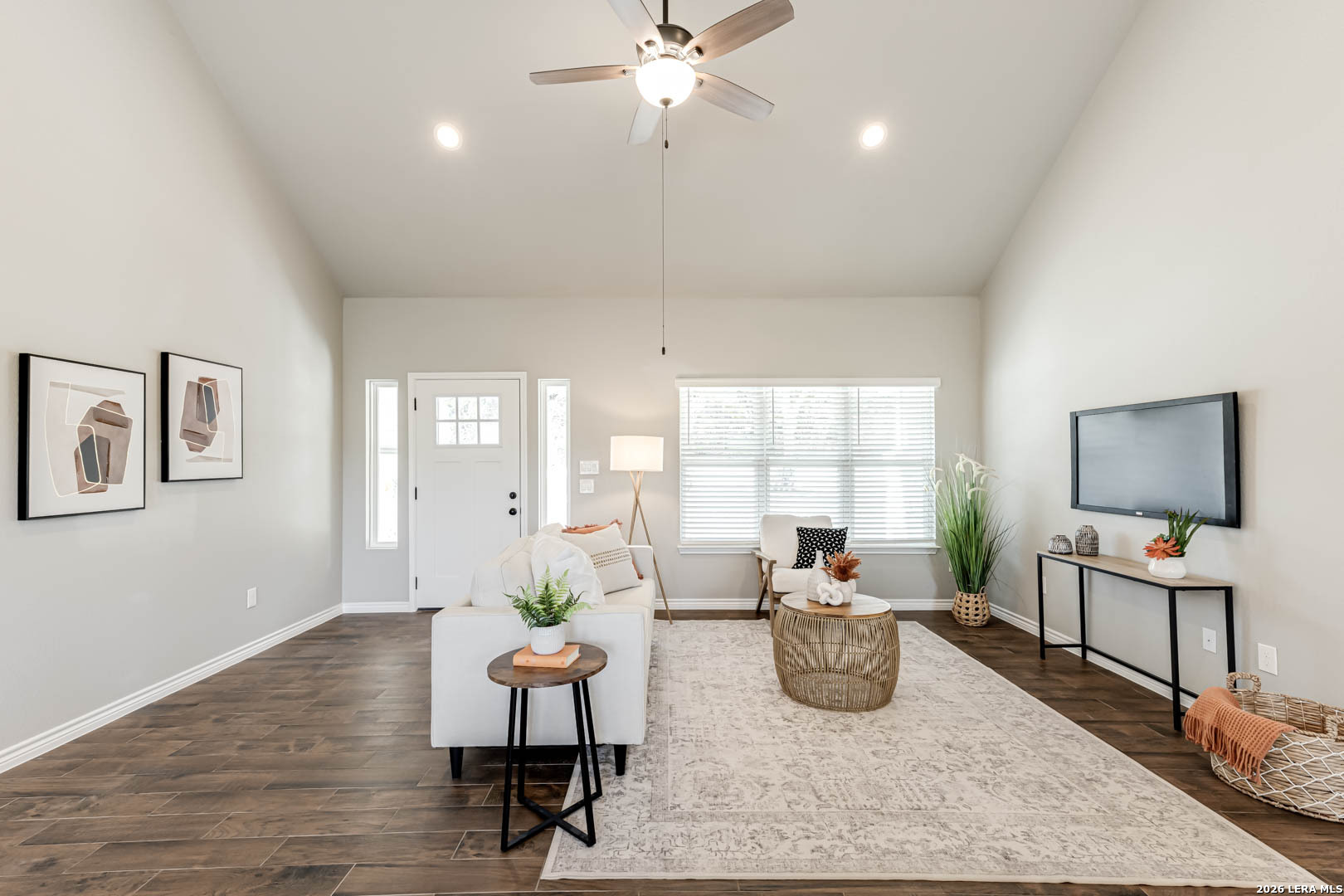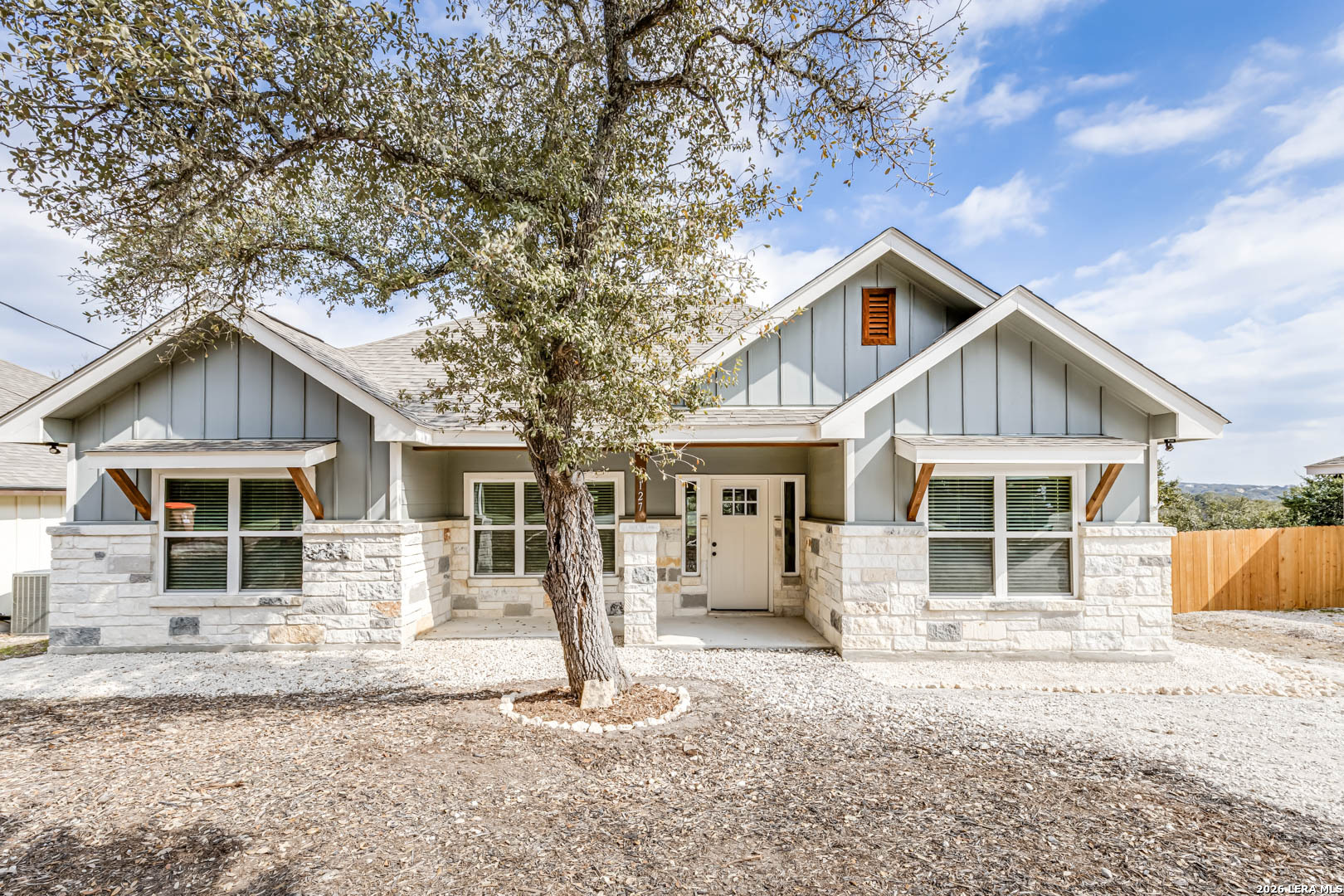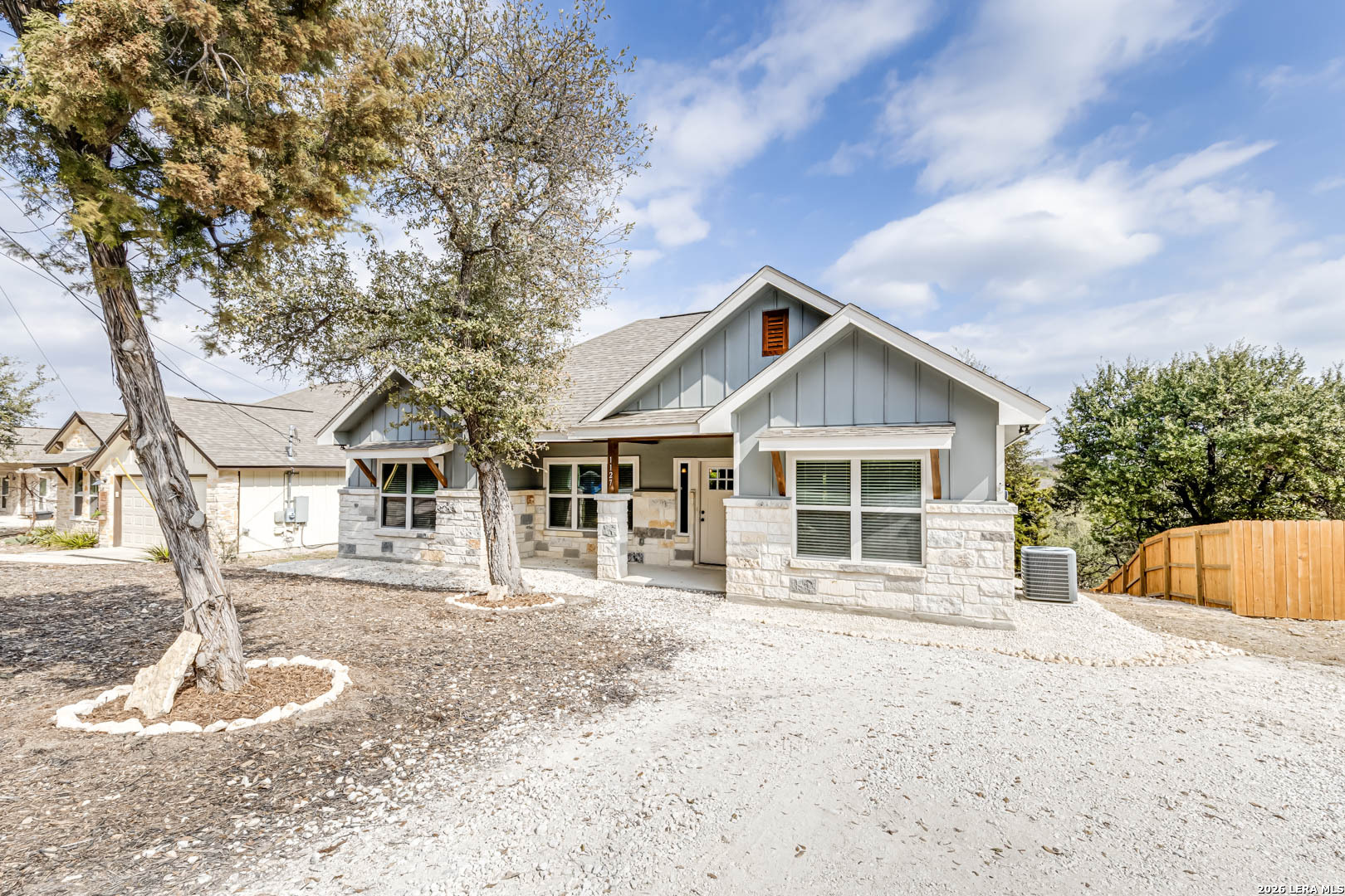 This home features a hill country view, a vaulted ceiling in the living room, tray ceiling in the master bedroom, 9 ft ceilings everywhere else, custom wood cabinets, natural stone countertops, wood look floor tile throughout and custom tile tub surrounds. This home has close proximity to the Hancock Community including Canyon Park, Brookshire Brothers grocery store and the nearby Canyon Lake High School. Please verify all information.