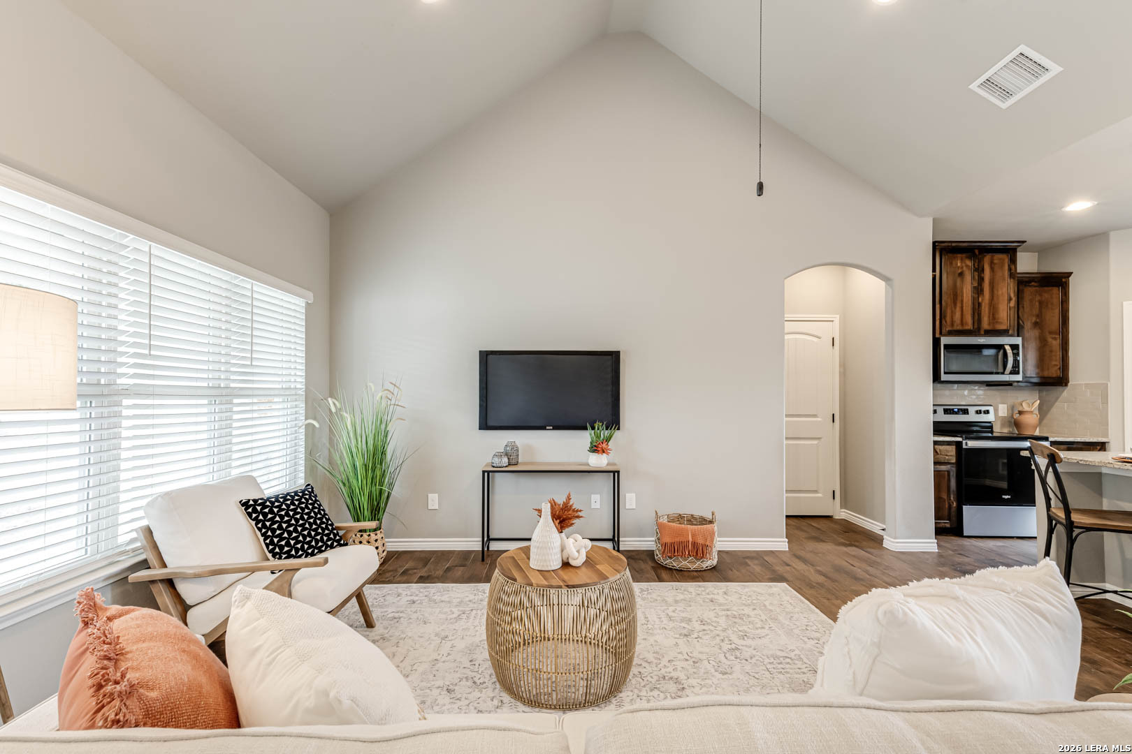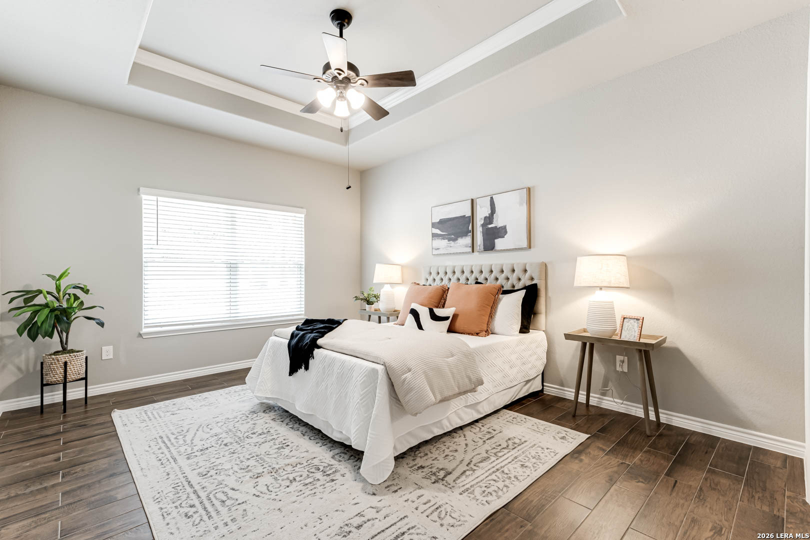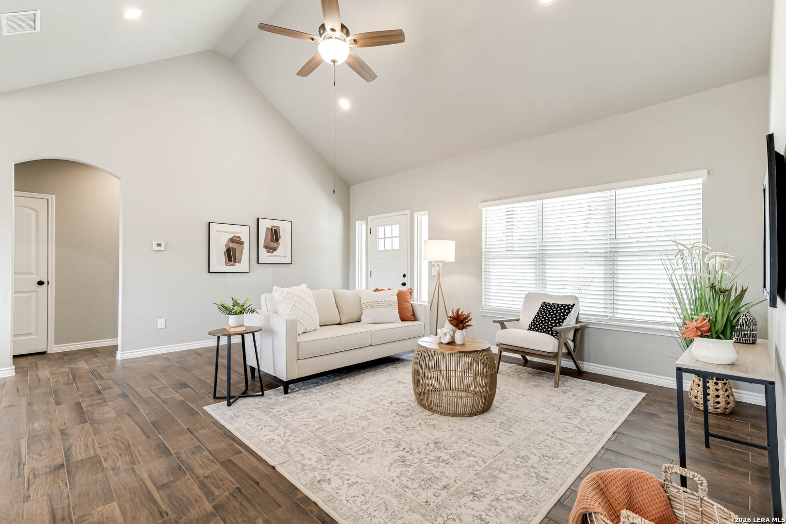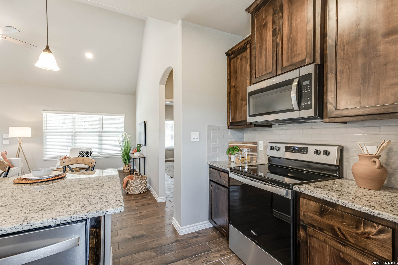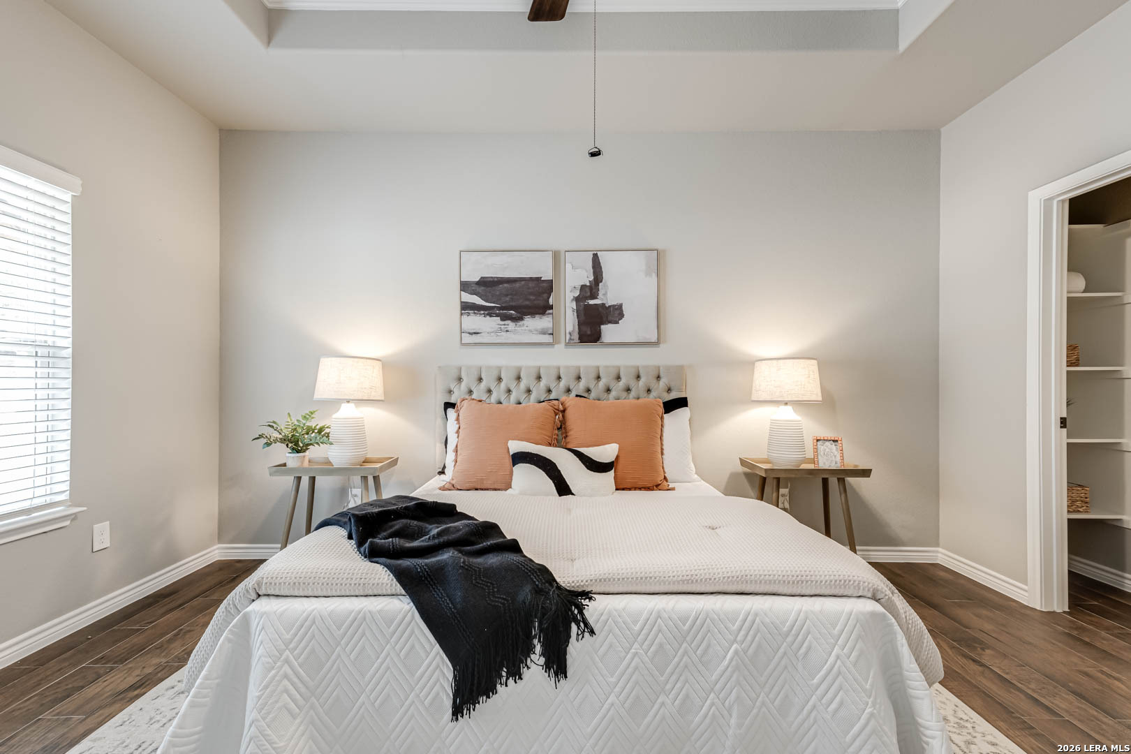 This home features a hill country view, a vaulted ceiling in the living room, tray ceiling in the master bedroom, 9 ft ceilings everywhere else, custom wood cabinets, natural stone countertops, wood look floor tile throughout and custom tile tub surrounds. This home has close proximity to the Hancock Community including Canyon Park, Brookshire Brothers grocery store and the nearby Canyon Lake High School. Please verify all information.