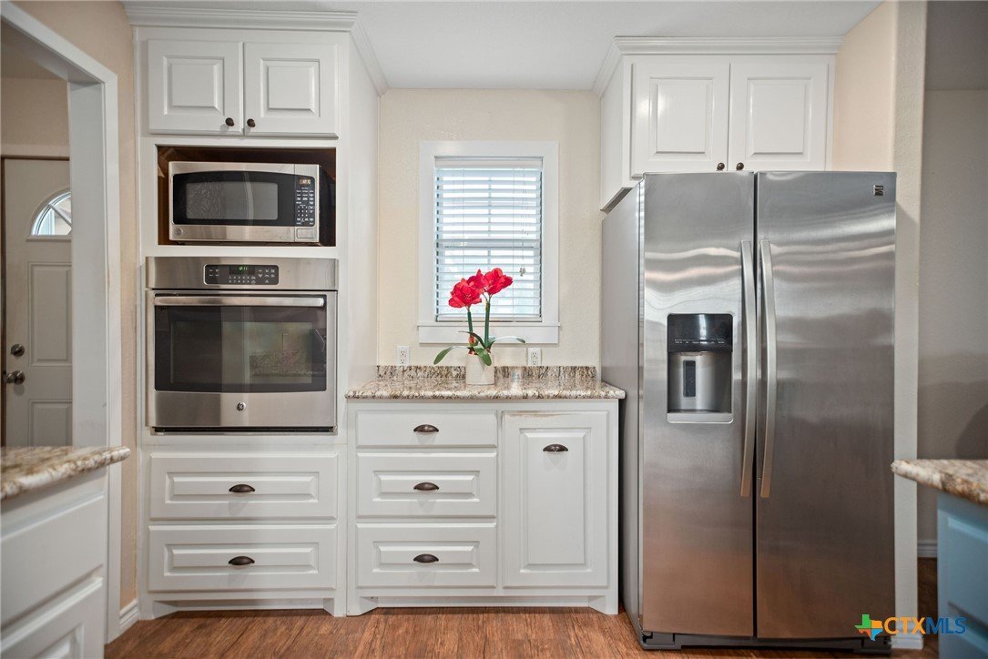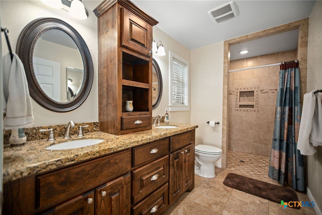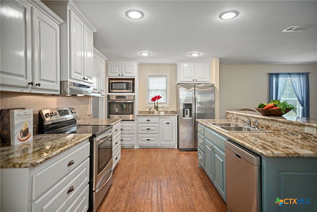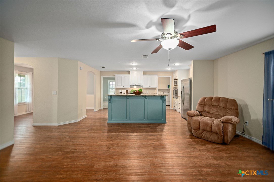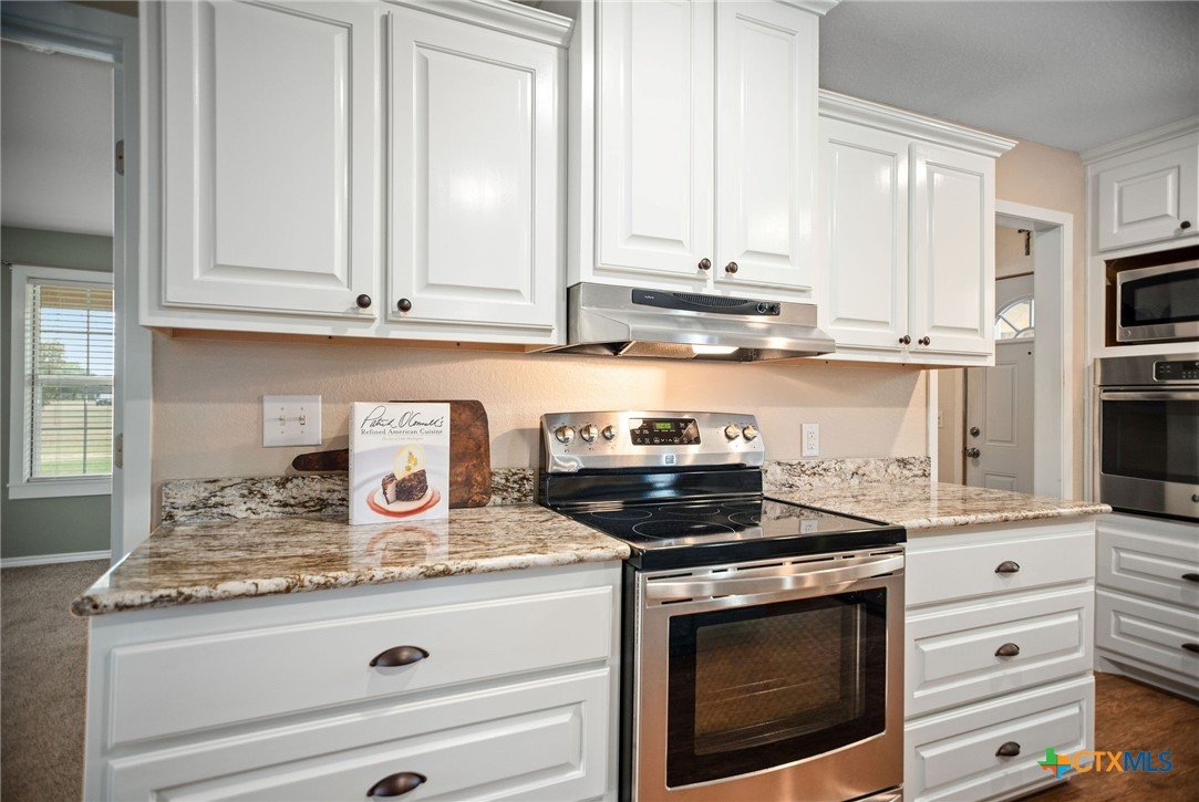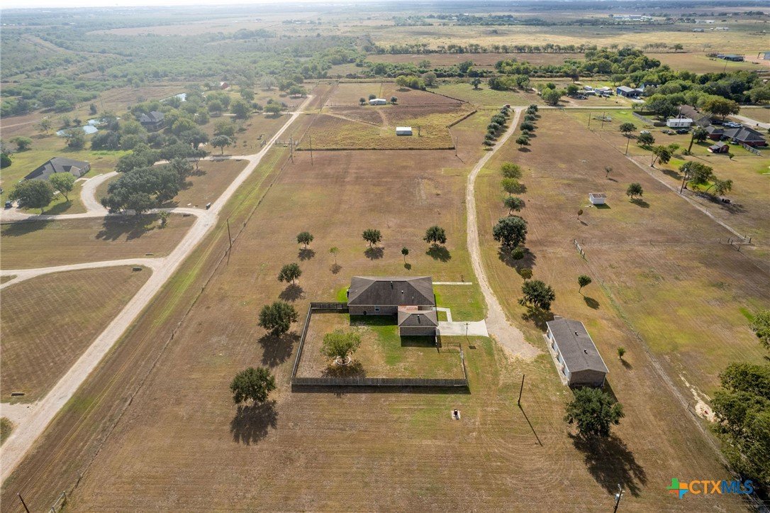 Come enjoy the peaceful Country feel with great views and cool breezes, yet just a quick trip to town. This home Has it all...Kitchen is equipped with built in stainless appliances including oven/range and an extra oven with microwave above along with dishwasher. Granite counters throughout. Kitchen is open to the living and dining area for great flow for entertaining. Split bedroom plan with separate office as you enter the home. All doorways /hallways are built to ADA Standards. Vinyl plank, tile and carpet in bedrooms. Master bath has tiled shower with double vanity. Lots of storage throughout this home. Laundry area off kitchen. Double paned windows. Wrap around porch with Epoxy coating. Attached single car garage with A/C window unit to have a climate controlled area. Four Car Detached garage/shop (20 x 50) all Brick with Concrete floors. Water Well and Septic. Area in backyard fenced with chainlink/privacy. Underground watering system to trees. This Seller thought of EVERYTHING when building this Home...
