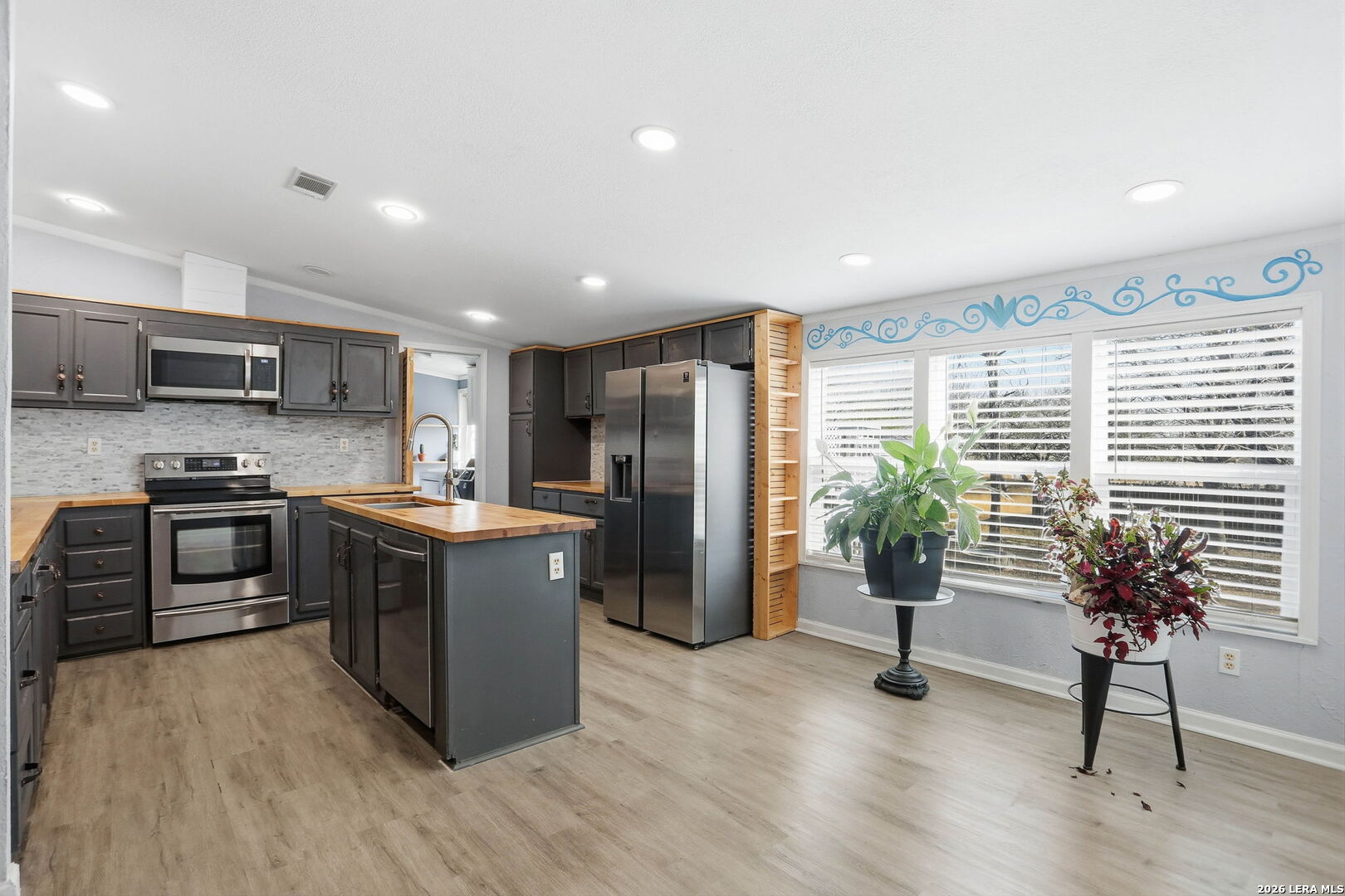 Welcome to your own private retreat in the heart of Castroville's Alsatian Heights! This beautifully reimagined 3-bedroom, 2-bath home sits on nearly an acre and offers the perfect blend of modern upgrades and functional outdoor living. Step inside to discover updated flooring throughout and a bright, open interior filled with natural light from newer windows (2022). The kitchen is fully refreshed with modern butcher block countertops, updated appliances, and a clean, contemporary feel. Major systems including the HVAC, water heater, overhead lighting, and ceiling fans were also replaced in 2022 providing peace of mind for years to come. The primary suite is a true highlight, featuring custom shiplap and a fully renovated, expanded bathroom with modern finishes. The second bathroom has also been tastefully updated. Outside, enjoy two oversized decks, one in front and one in back, perfect for entertaining, relaxing, or taking in the wide-open space. The property includes two carports and two sheds, including a large steel-framed workshop with electricity connected to the main carport, plus a newer second large shed with loft for additional storage or projects. With nearly an acre of land, updated systems, and rare workshop space, this is a one-of-a-kind property offering flexibility, privacy, and lifestyle - all just minutes from town.