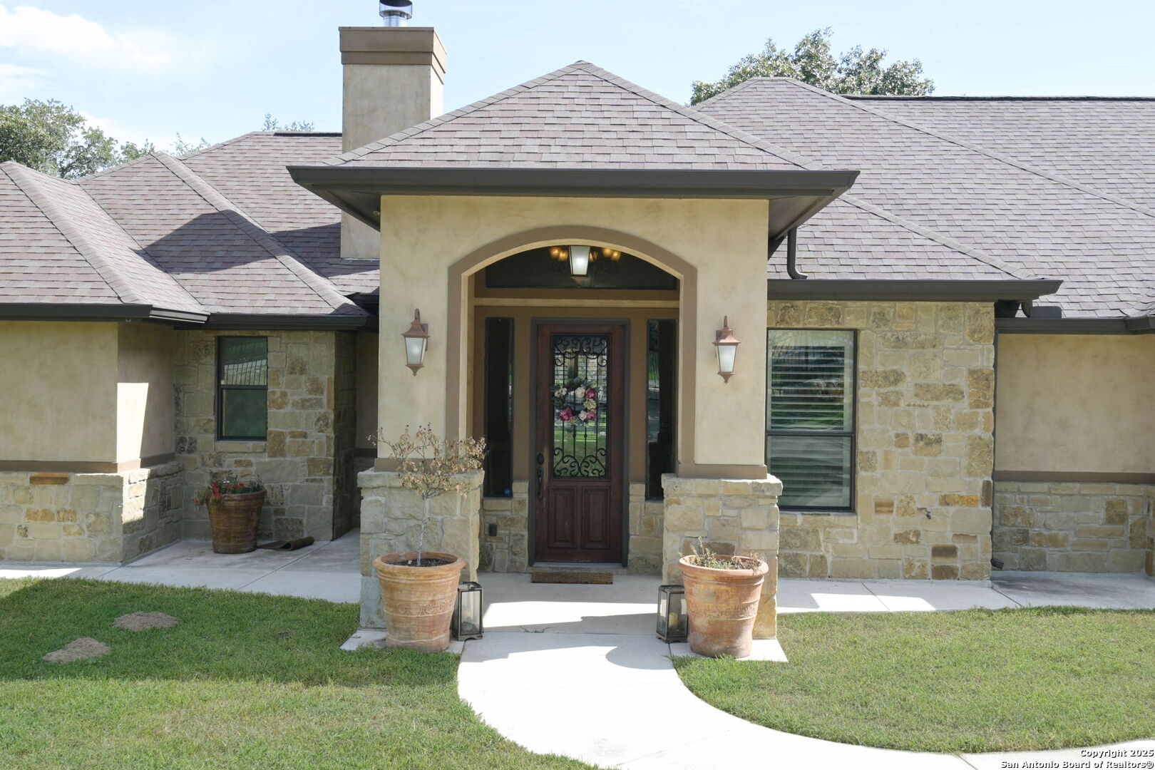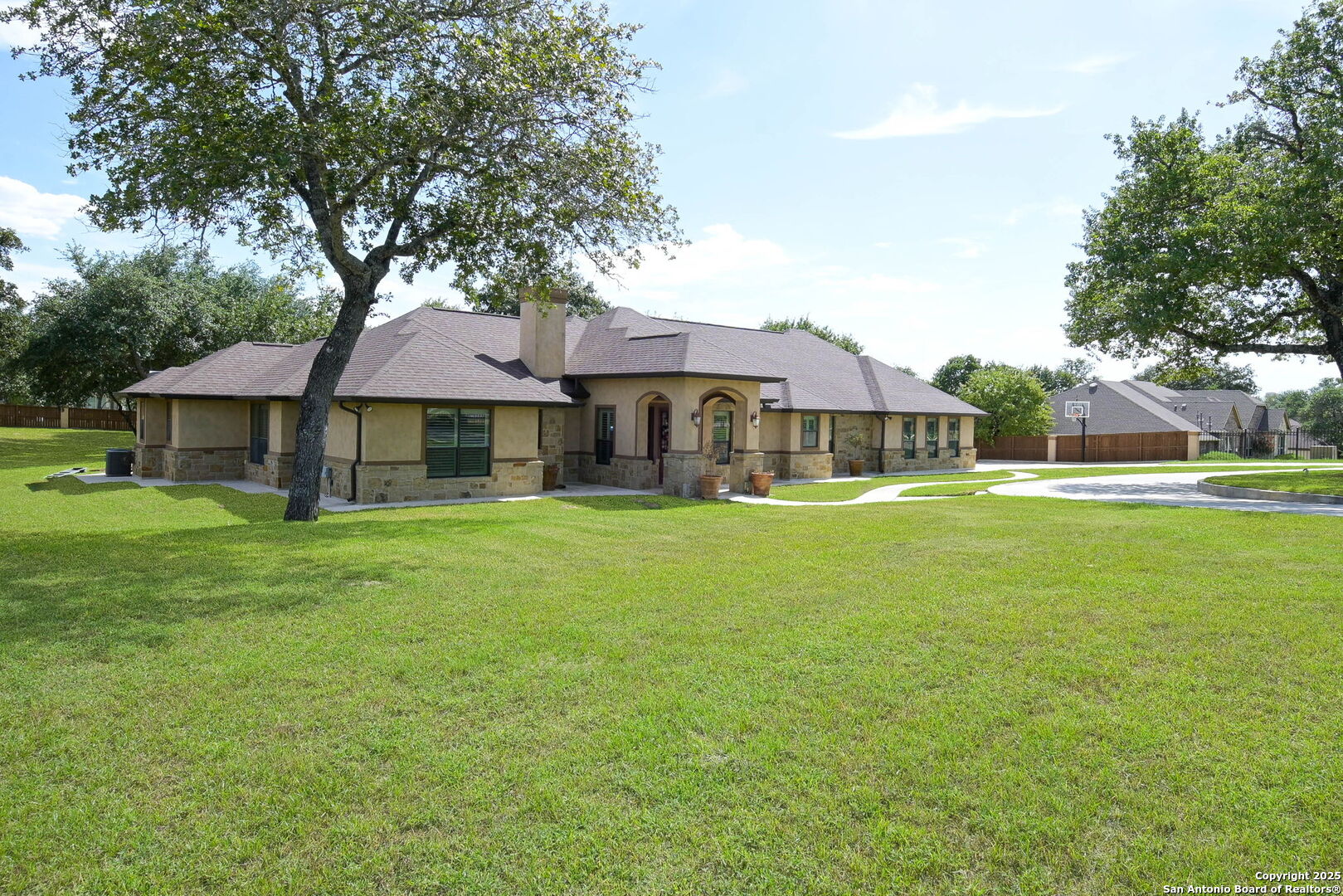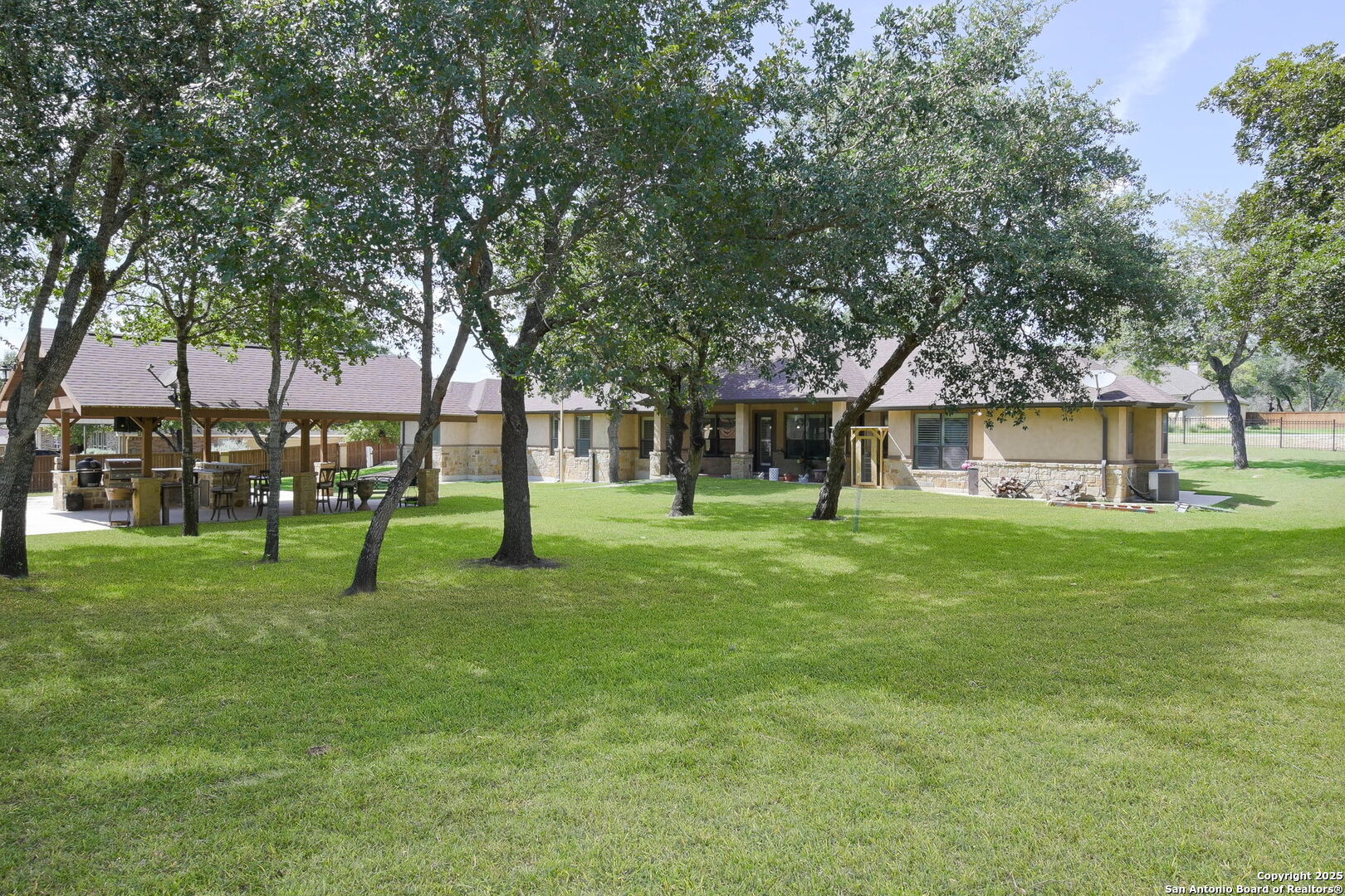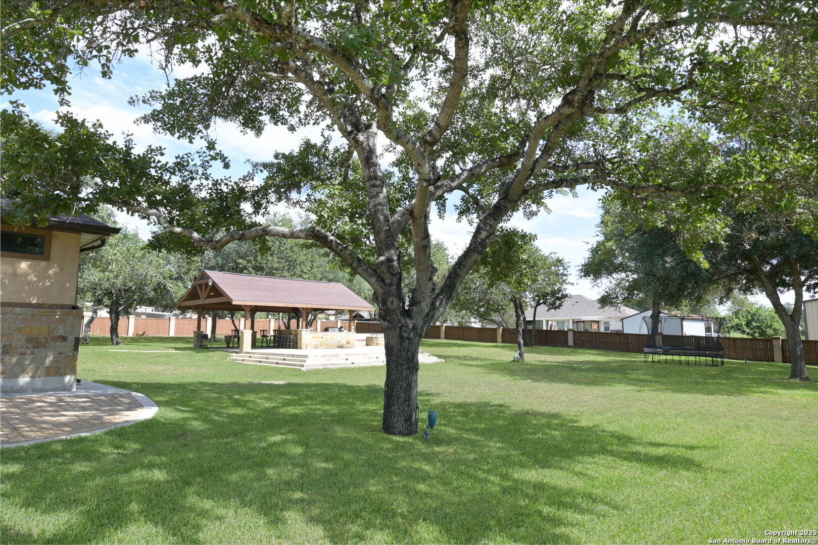 Discover custom luxury and comfort in this stunning 4-bedroom, 3.5-bath home nestled on a full acre in the sought-after Eden Crossing community. The spacious layout features a built-in oven and microwave, a walk-in pantry, and an open-concept kitchen ideal for entertaining. The primary suite includes a dedicated office space, double vanity, soaking tub, standing shower, and two walk-in closets. Bedrooms 2 and 3 share a Jack & Jill bathroom, while Bedroom 4 is a private suite with its own full bath, oversized closet, and separate vanity. Step outside to your entertainer's dream: a massive gazebo with a built-in BBQ pit, sink, and firepit. Fully fenced with an iron automatic gate, this home blends functionality, elegance, and privacy-perfect for relaxed living just minutes from San Antonio.