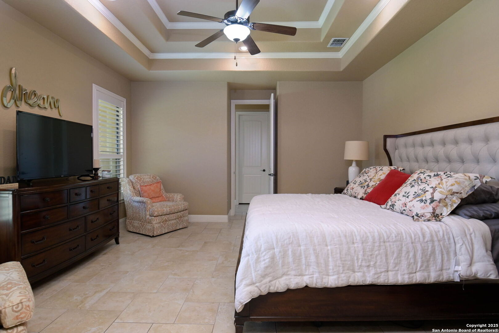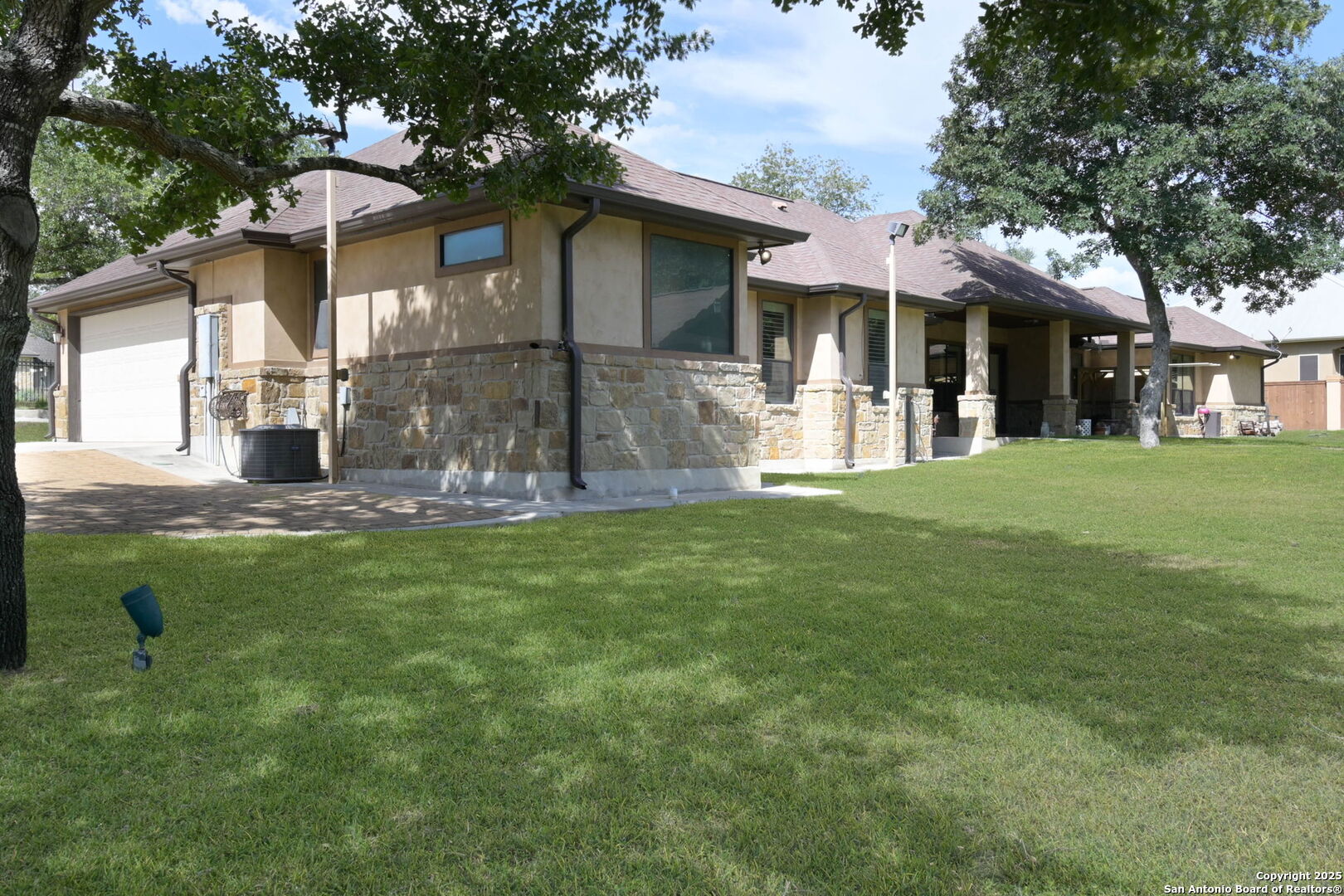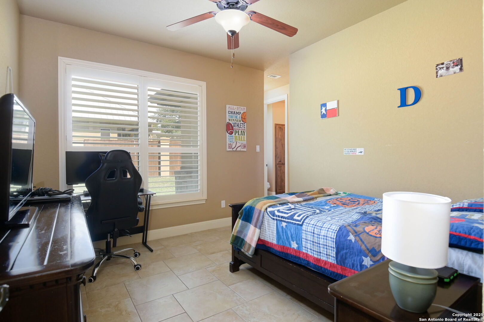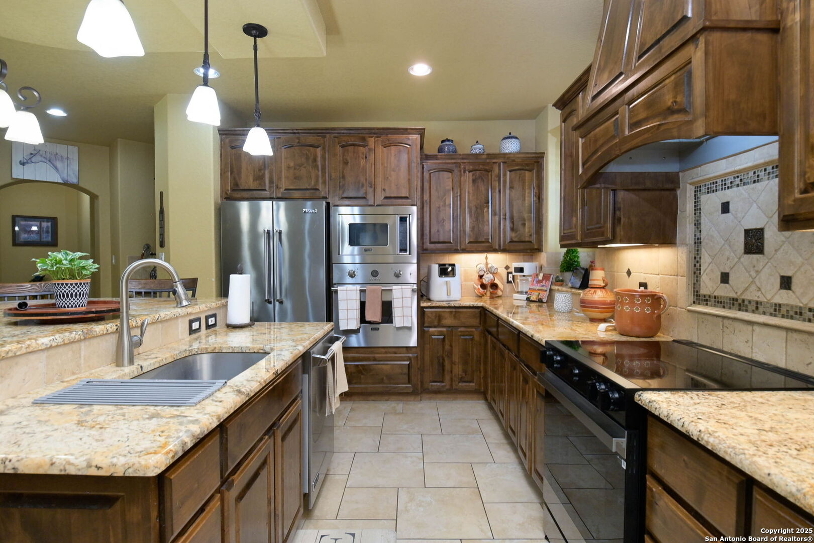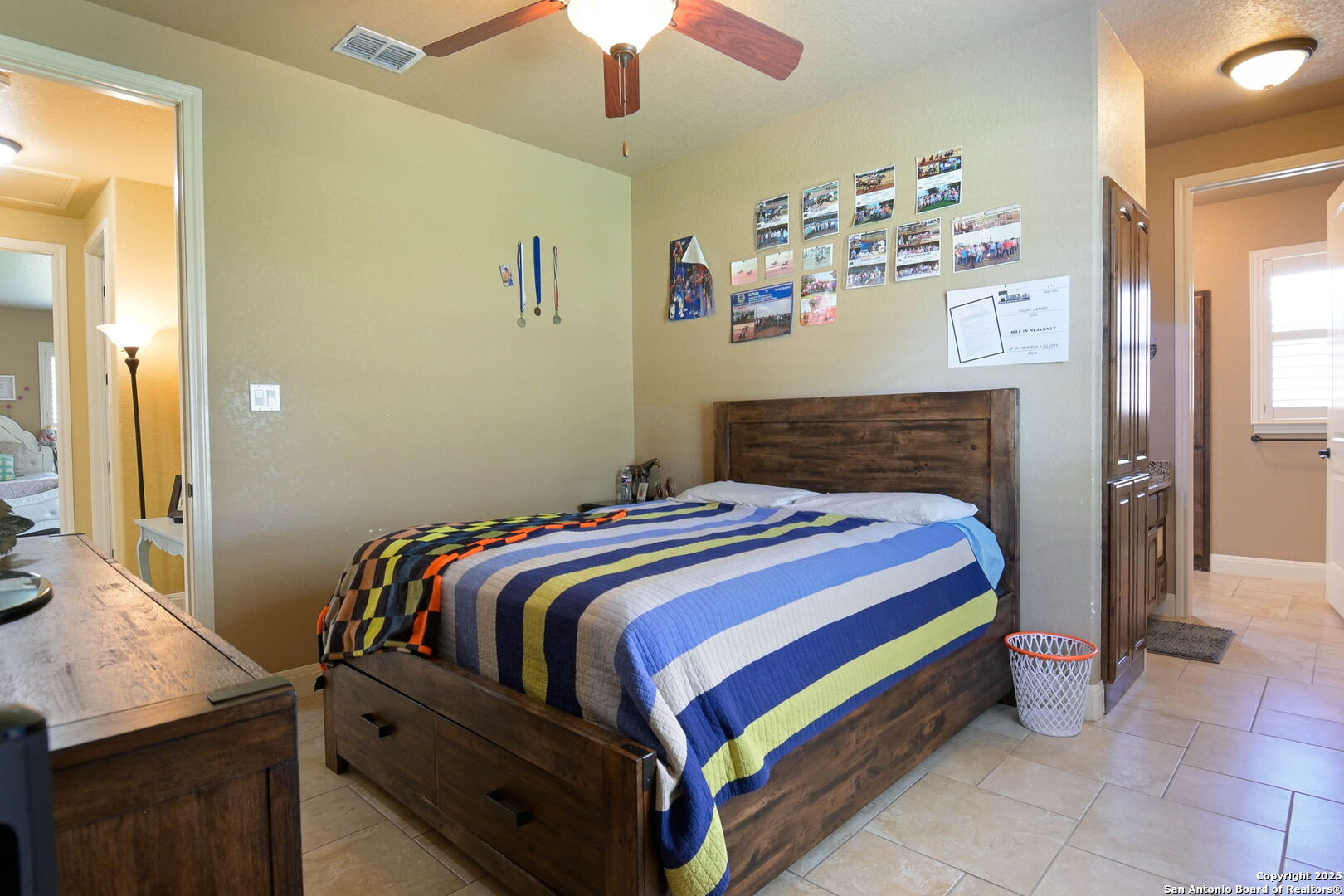 Discover custom luxury and comfort in this stunning 4-bedroom, 3.5-bath home nestled on a full acre in the sought-after Eden Crossing community. The spacious layout features a built-in oven and microwave, a walk-in pantry, and an open-concept kitchen ideal for entertaining. The primary suite includes a dedicated office space, double vanity, soaking tub, standing shower, and two walk-in closets. Bedrooms 2 and 3 share a Jack & Jill bathroom, while Bedroom 4 is a private suite with its own full bath, oversized closet, and separate vanity. Step outside to your entertainer's dream: a massive gazebo with a built-in BBQ pit, sink, and firepit. Fully fenced with an iron automatic gate, this home blends functionality, elegance, and privacy-perfect for relaxed living just minutes from San Antonio.