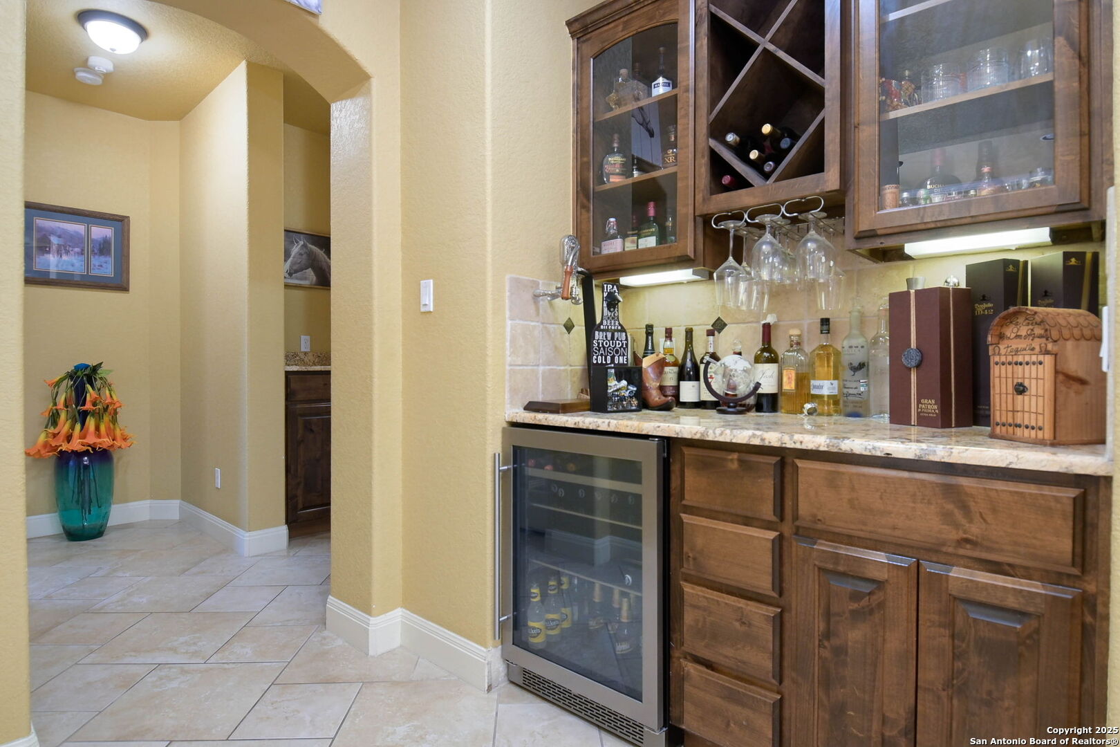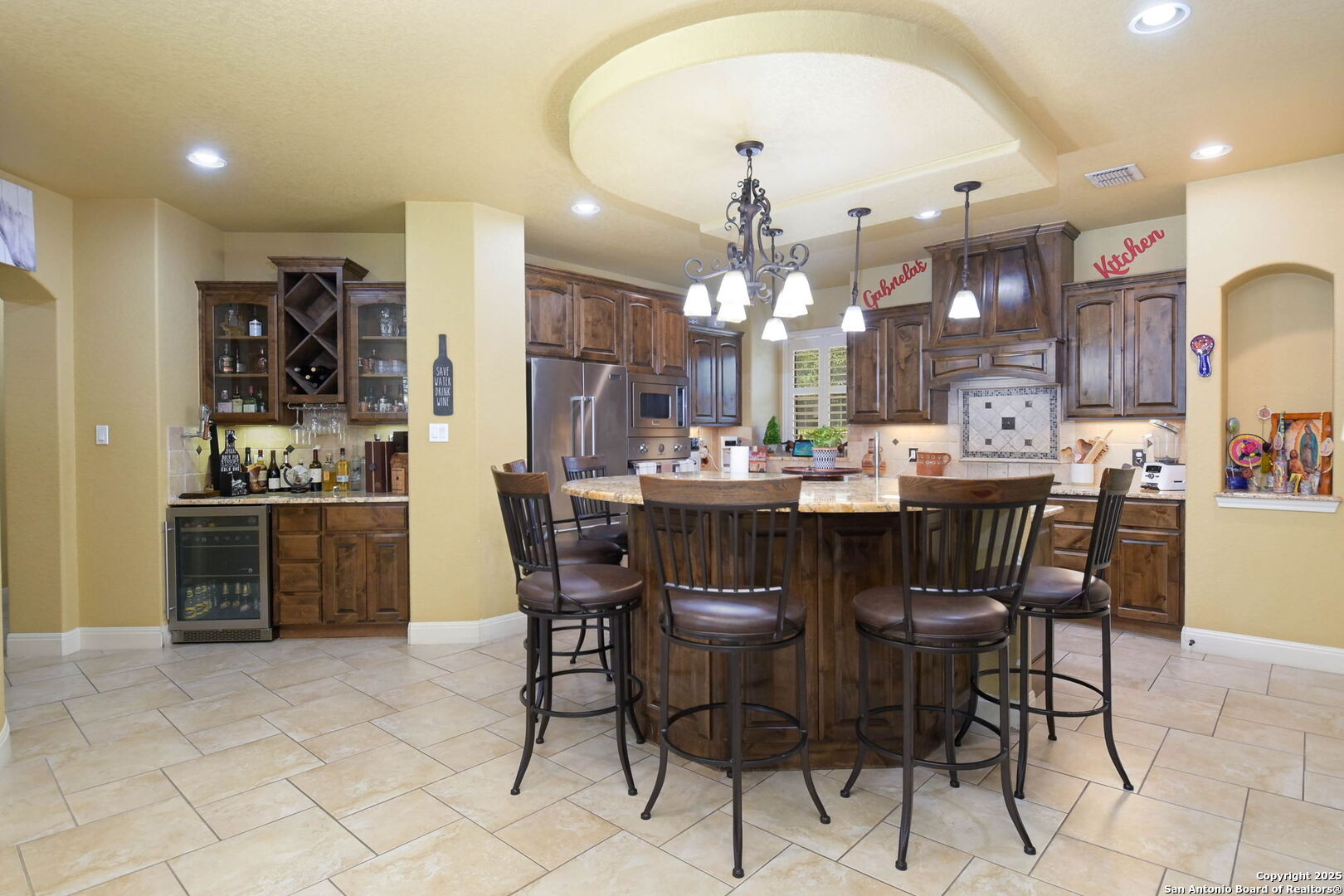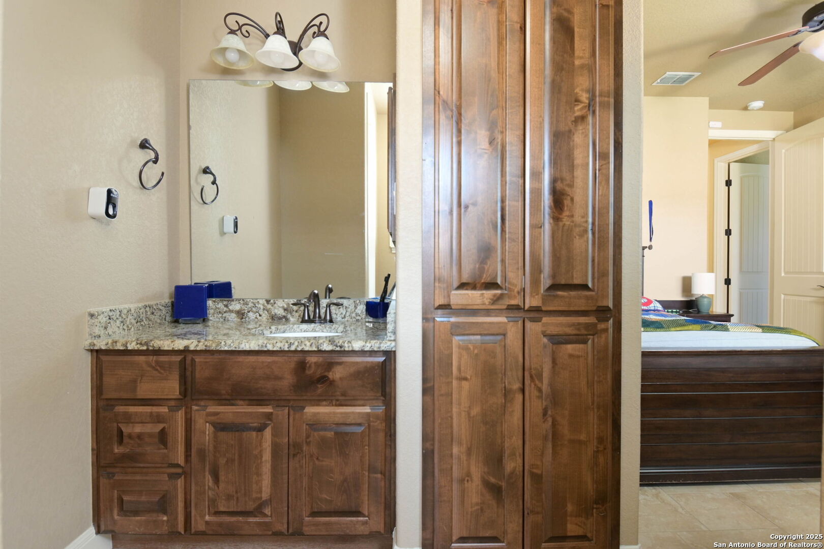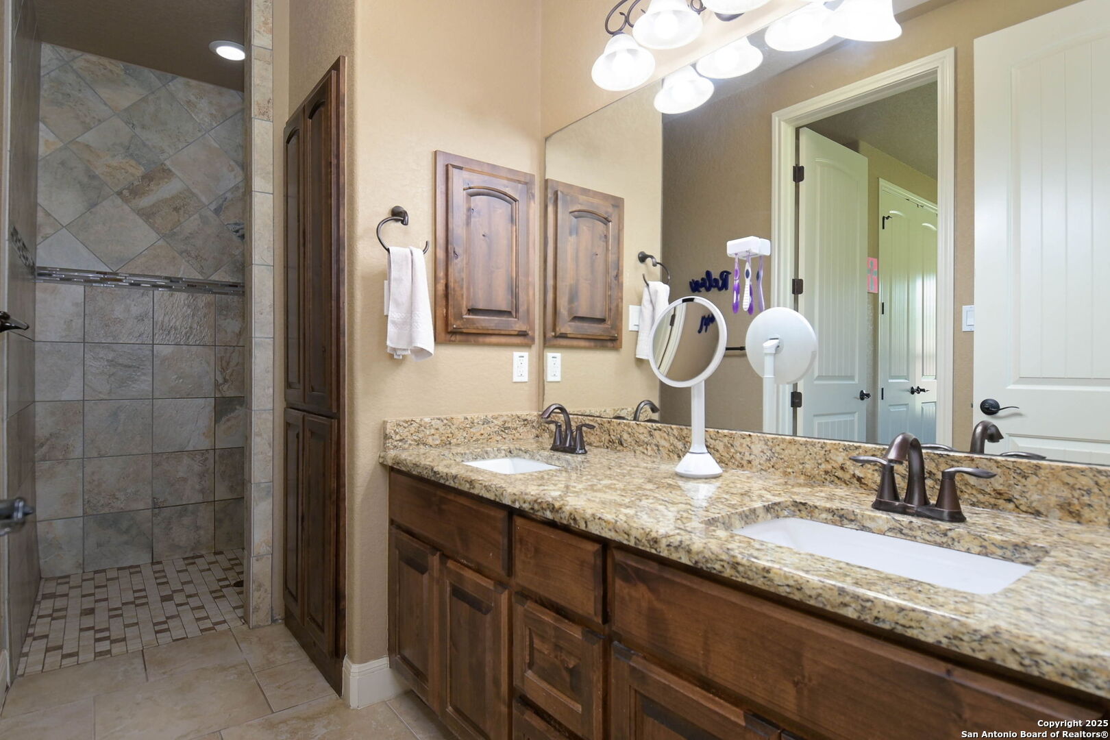 Discover custom luxury and comfort in this stunning 4-bedroom, 3.5-bath home nestled on a full acre in the sought-after Eden Crossing community. The spacious layout features a built-in oven and microwave, a walk-in pantry, and an open-concept kitchen ideal for entertaining. The primary suite includes a dedicated office space, double vanity, soaking tub, standing shower, and two walk-in closets. Bedrooms 2 and 3 share a Jack & Jill bathroom, while Bedroom 4 is a private suite with its own full bath, oversized closet, and separate vanity. Step outside to your entertainer's dream: a massive gazebo with a built-in BBQ pit, sink, and firepit. Fully fenced with an iron automatic gate, this home blends functionality, elegance, and privacy-perfect for relaxed living just minutes from San Antonio.