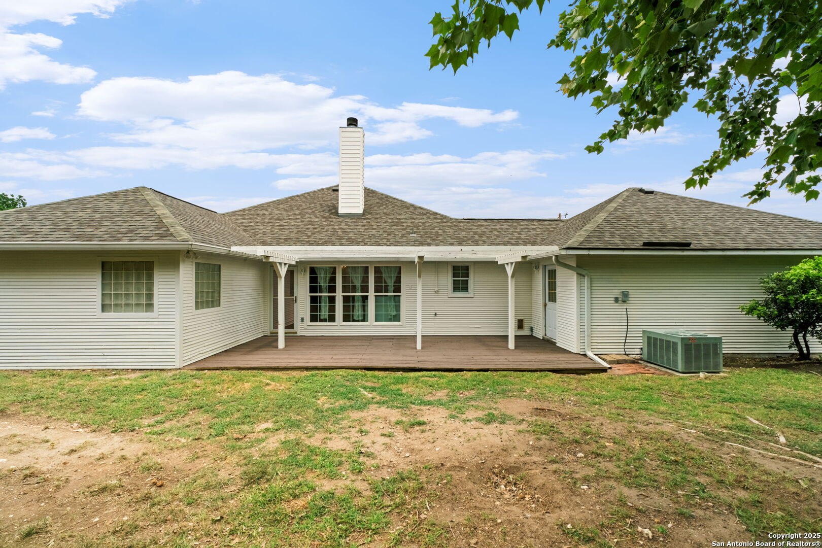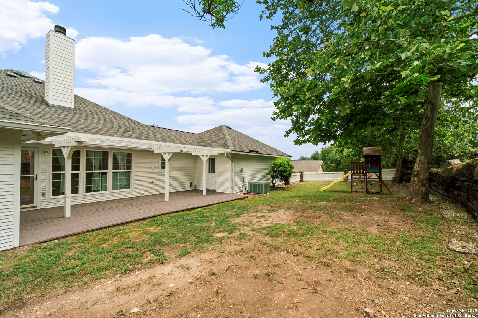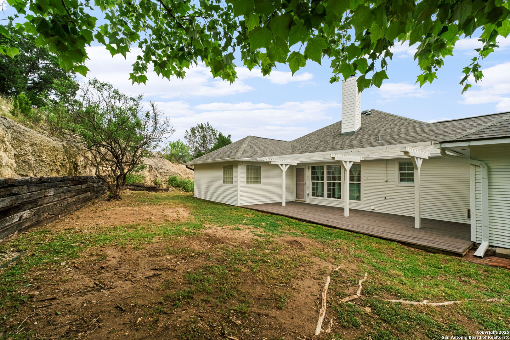 This move-in ready, 3 bedroom 2.5 bathroom home sits tucked away on 1.1ac in the heart of the Texas Hill Country! It's spacious 2,171sqft welcomes you in with its high, trey set ceilings, tasteful updates, and beautiful LVP flooring that flow seamlessly throughout the main living areas. The kitchen is set up perfectly for hosting success; complete with updated cabinets, loads of counter space, and ample storage. Relax on the back patio and enjoy the mature trees, tranquility, and privacy the yard provides. Ready to unwind? Escape to the large primary suite equipped with double vanities, a custom walk in shower, and an oversized garden tub. New roof installed Apr2025. Your chance to own a Texas Hill Country retreat is here, schedule your showing today!