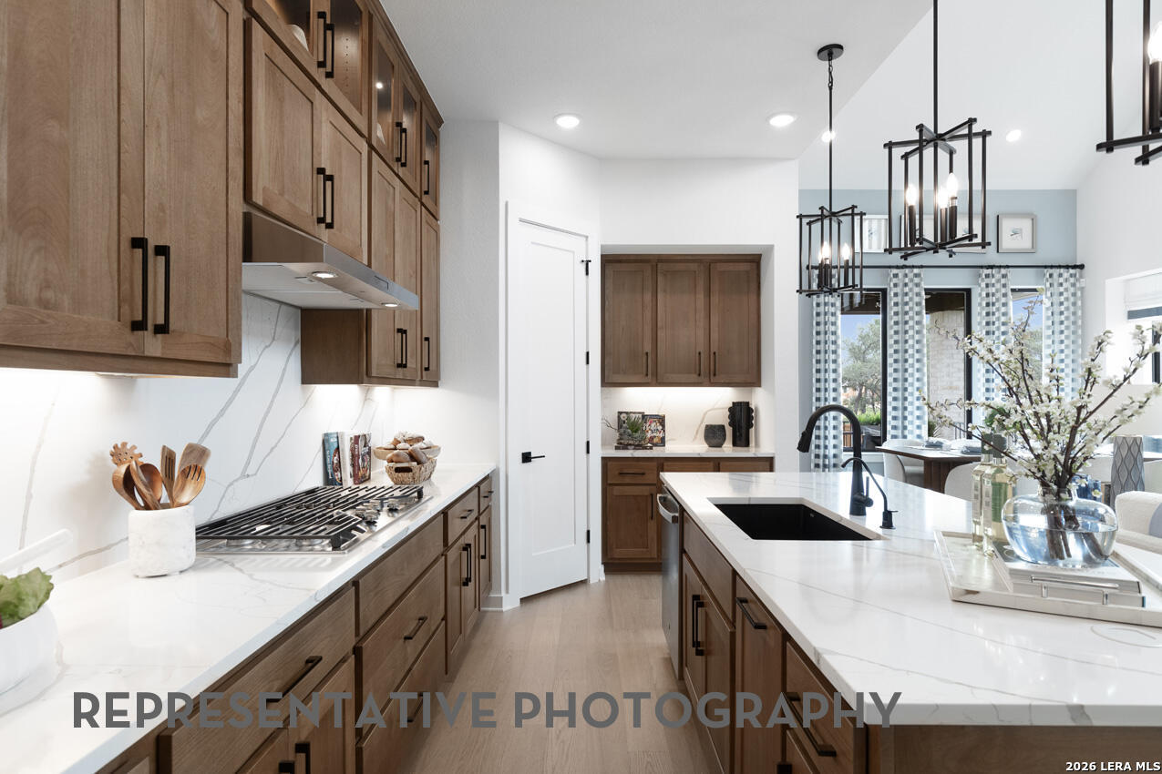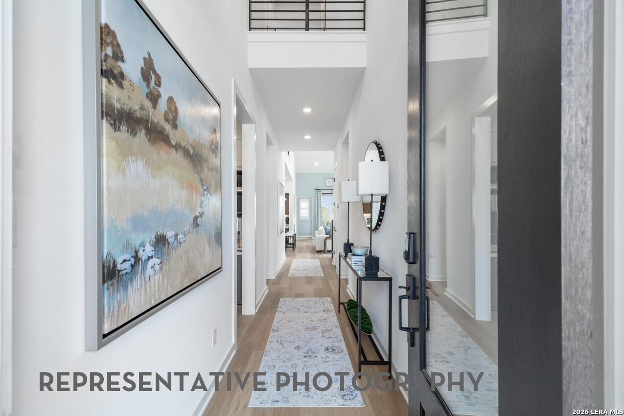 The Mclaren is a well-appointed two-story home offering approximately 2,703 square feet of comfortable and functional living space. Just off the main foyer to the left, you'll find a private study and a conveniently located laundry room near garage entry. Near the foyer is a secondary bedroom with a full bathroom nearby, making it accessible for guests. The heart of the home features an open-concept layout with a spacious kitchen, dining area, and living room, super tall ceilings allow lots of natural light and views of the backyard. Tucked at the back of the home, the primary suite offers a peaceful retreat with a luxurious bathroom and spacious walk-in closet. Upstairs, three additional bedrooms with two full bathrooms, open to a cozy loft space-- perfect for a study nook, media area, or casual lounge. This home features upgrades such as primary bay window extension, freestanding rectangular tub at master with separate shower and extended outdoor living area.