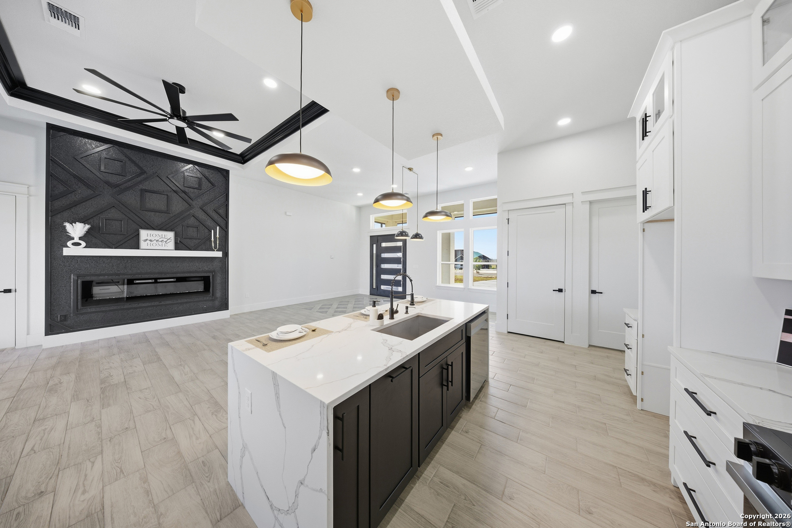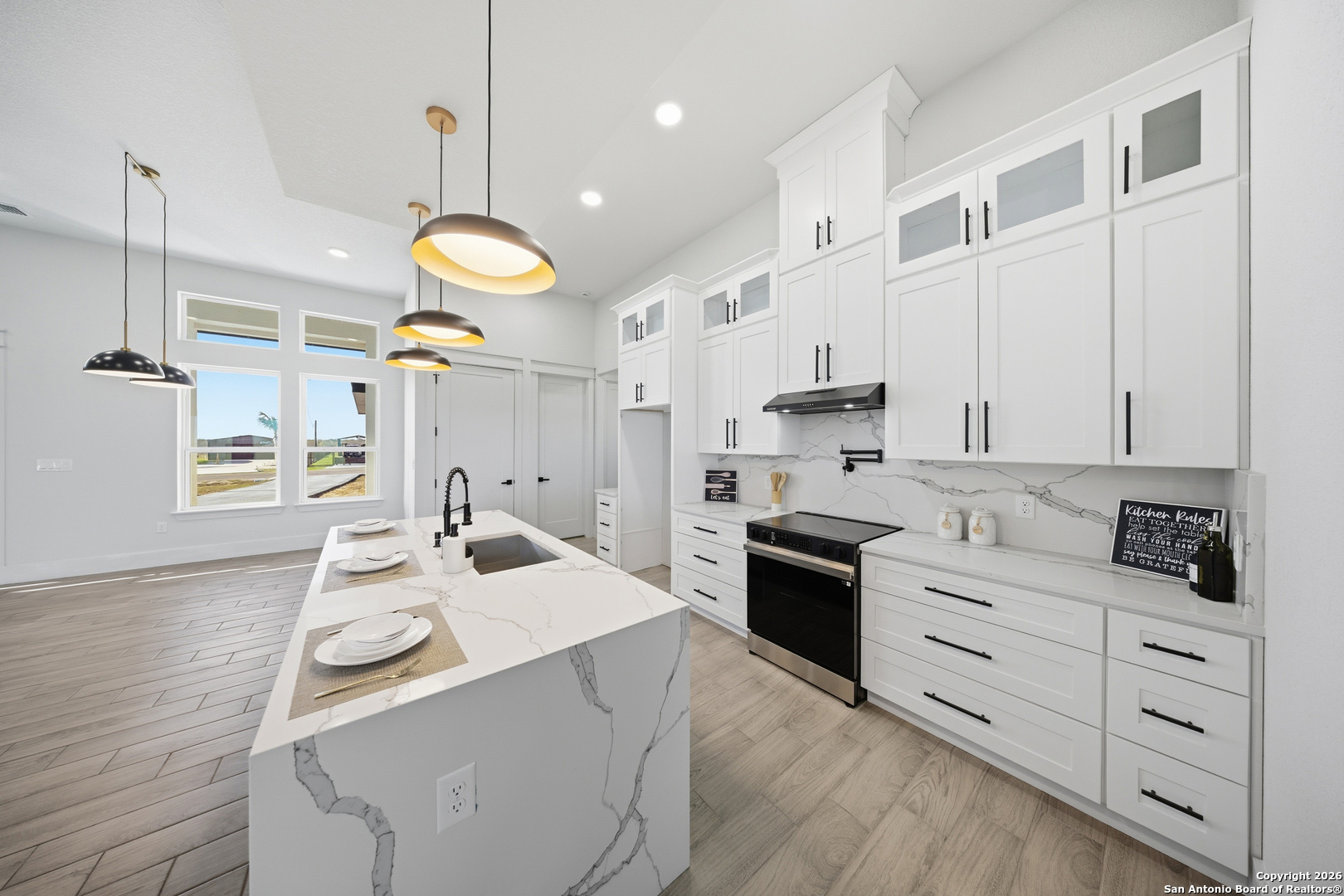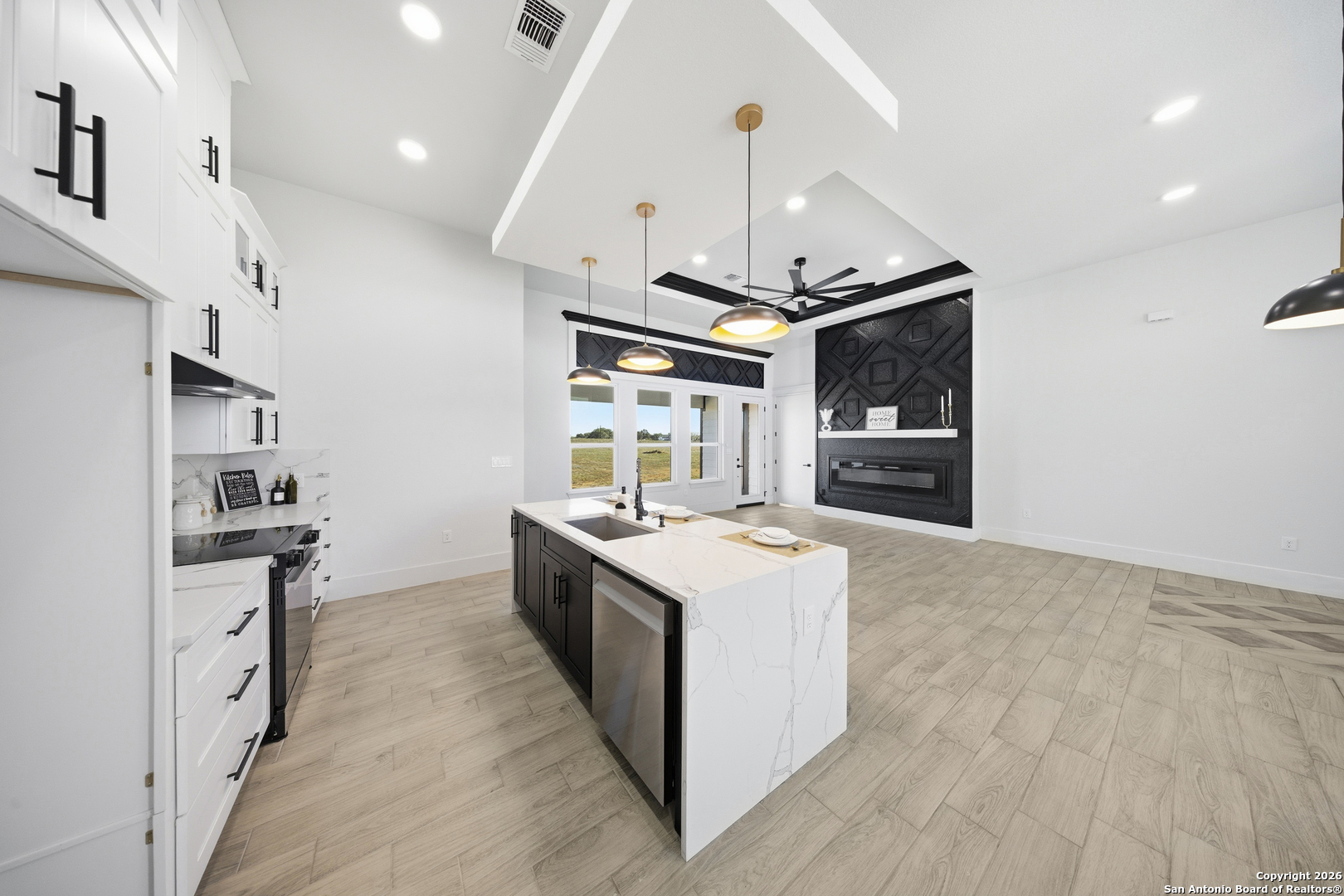 Modern ranch-style home on 1.12 acres in Hidden Ranch, Floresville. This new construction 4-bedroom, 3-bath home offers 2,040 sq ft with an open-concept layout, high ceilings, ceramic tile flooring, and abundant natural light. The spacious kitchen features a large island and ample cabinetry, ideal for entertaining. Private primary suite, well-sized secondary bedrooms, covered patio, and two car garage. No HOA. Enjoy peaceful country living with convenient access to Floresville and San Antonio.