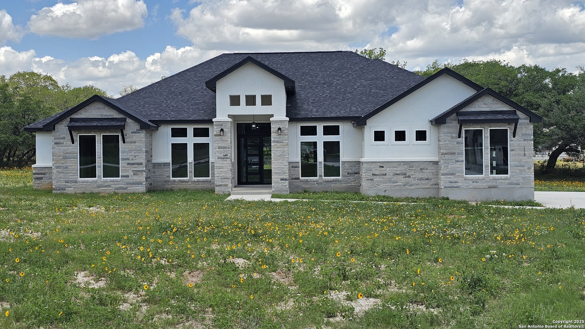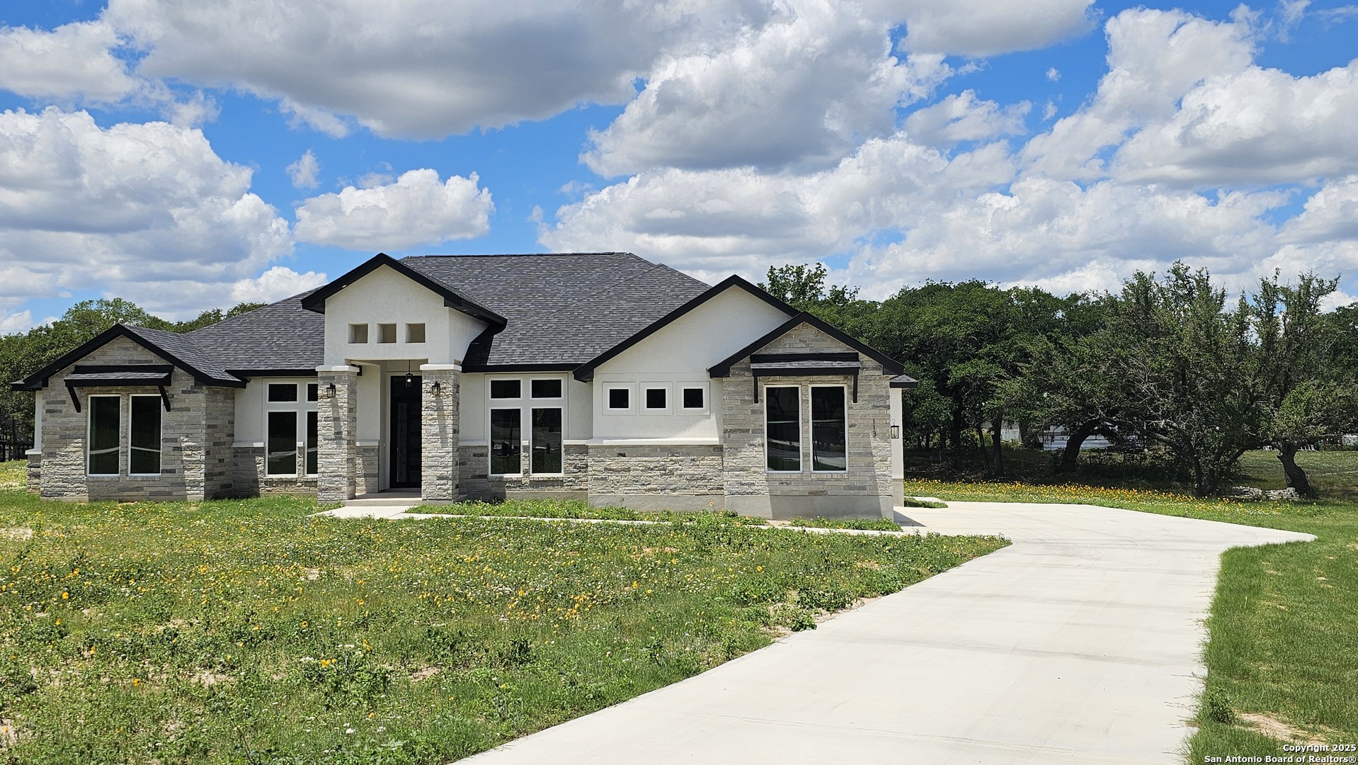 Beautiful 4BR/3.5BA custom home w/elegant elevation on 1.22 acre. A luxury iron door and high foyer welcome you next to study & formal dining room. Kitchen w/custom cabinetry and upgraded granite, b-splash, & S.S. appliances. LR w/stone fireplace & lots of natural light. Relax in M-BR w/exposed c-beams. M-BA w/garden tub, custom shower, & large walk-in closet. Add'l upgrades: 10-12ft. ceilings, custom cabinetry, accent lighting, 4 beamed ceilings, front side with stone, four sides stucco exterior, and oversize garage. Relax and/or entertain in large covered back patio highlighted with a wood fireplace to enjoy those cold evenings. Lots of mature oak trees for plenty of shade. Groceries and eateries minutes away back in town.