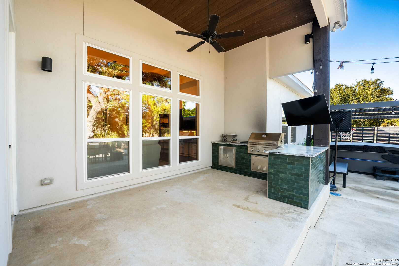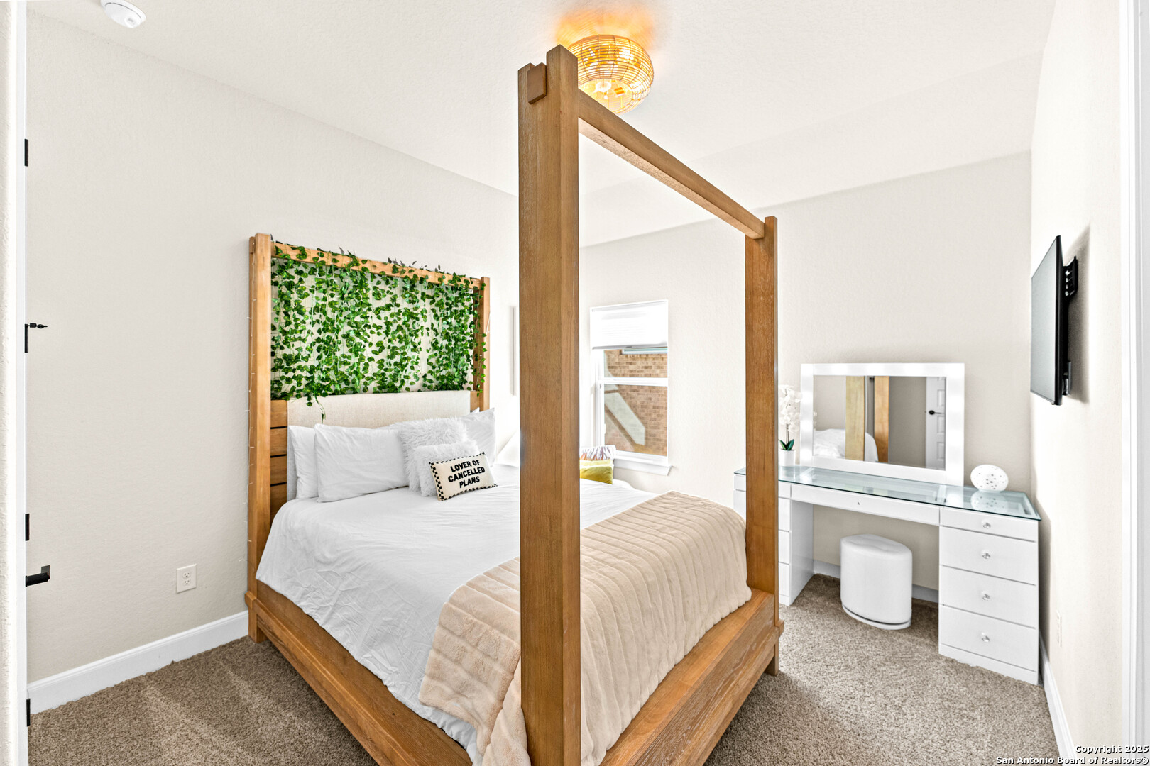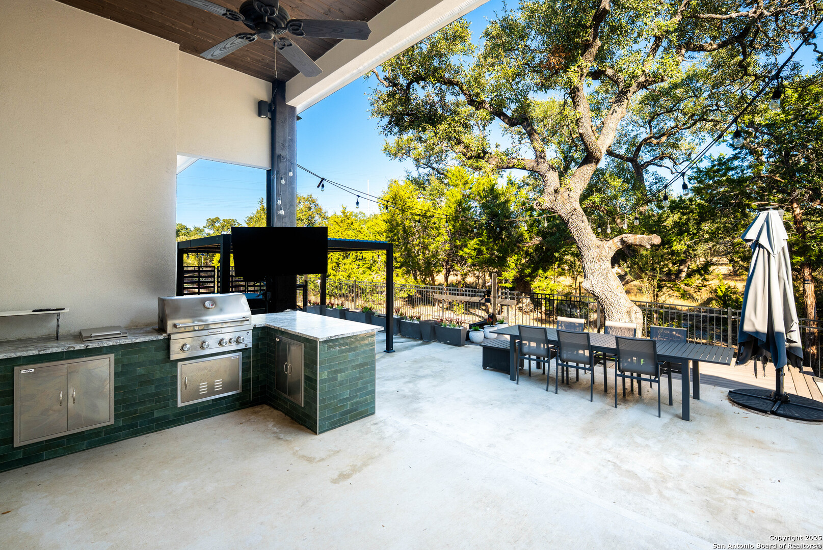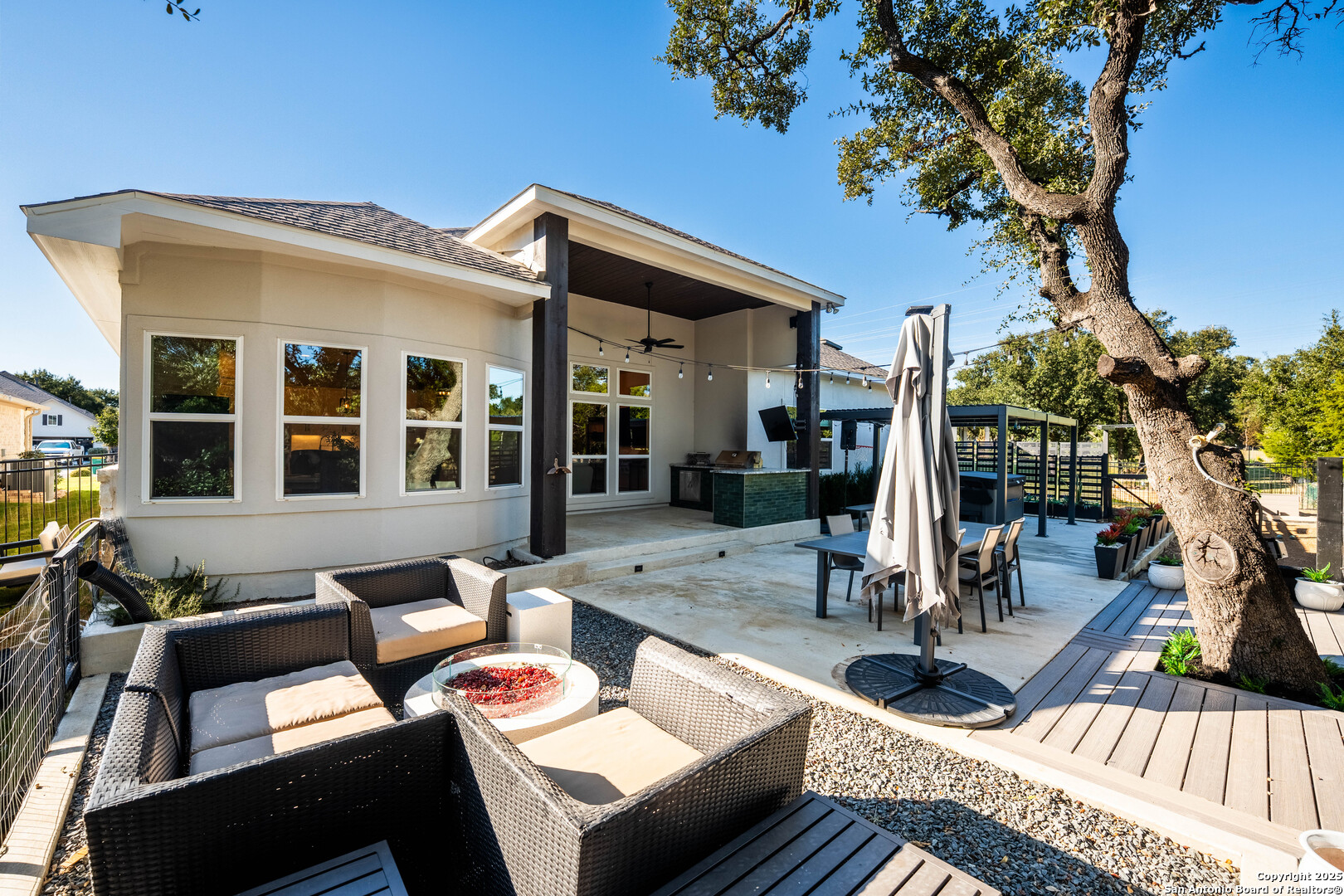 Welcome to 113 Milagro. Built by Scott Felder Homes in 2021 and backing to a peaceful greenbelt, this 2,813-square-foot home is sure to impress. Inside, you'll find 4 spacious bedrooms, 3 baths, an inviting office, and a versatile flex room. The kitchen is beautifully finished with quartz counters and opens to the living and dining areas. Two secondary bedrooms share a Jack-and-Jill bath, while the third offers its own private space for guests. The primary suite overlooks the back yard and has a generously sized bathroom with dual closets. Step outside to a covered patio, an outdoor kitchen, and a private yard with a horseshoe pit/bocce ball area and plenty of room to relax or entertain-perfectly framed by the greenbelt behind you. If you're familiar with Esperanza, you know that the community is comprised of "pods" or "villages". Milagro is its very own gated village, known as Soledad, offering an extra level of privacy and exclusivity. Any home on Milagro is a prized find, but 113 Milagro, along with the green space behind it, makes this home extra special. Gated, quiet, and incredibly sought-after. Pair that with a location just steps from the resort-style amenities-lazy river, splash pad, fitness center, dog park, and miles of walking trails-along with a neighborhood elementary in Boerne ISD, and it's easy to see why this community and this home stand out. Just 5 miles to Downtown Boerne and 30 minutes to the San Antonio airport, the location couldn't be easier for commuting, school, or weekend plans. If you're looking to move within Boerne or make the jump from San Antonio, this home brings together privacy, comfort, and community in all the right ways.
