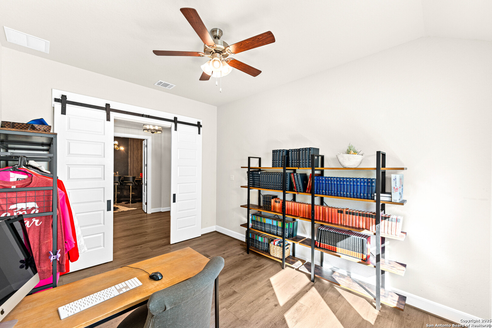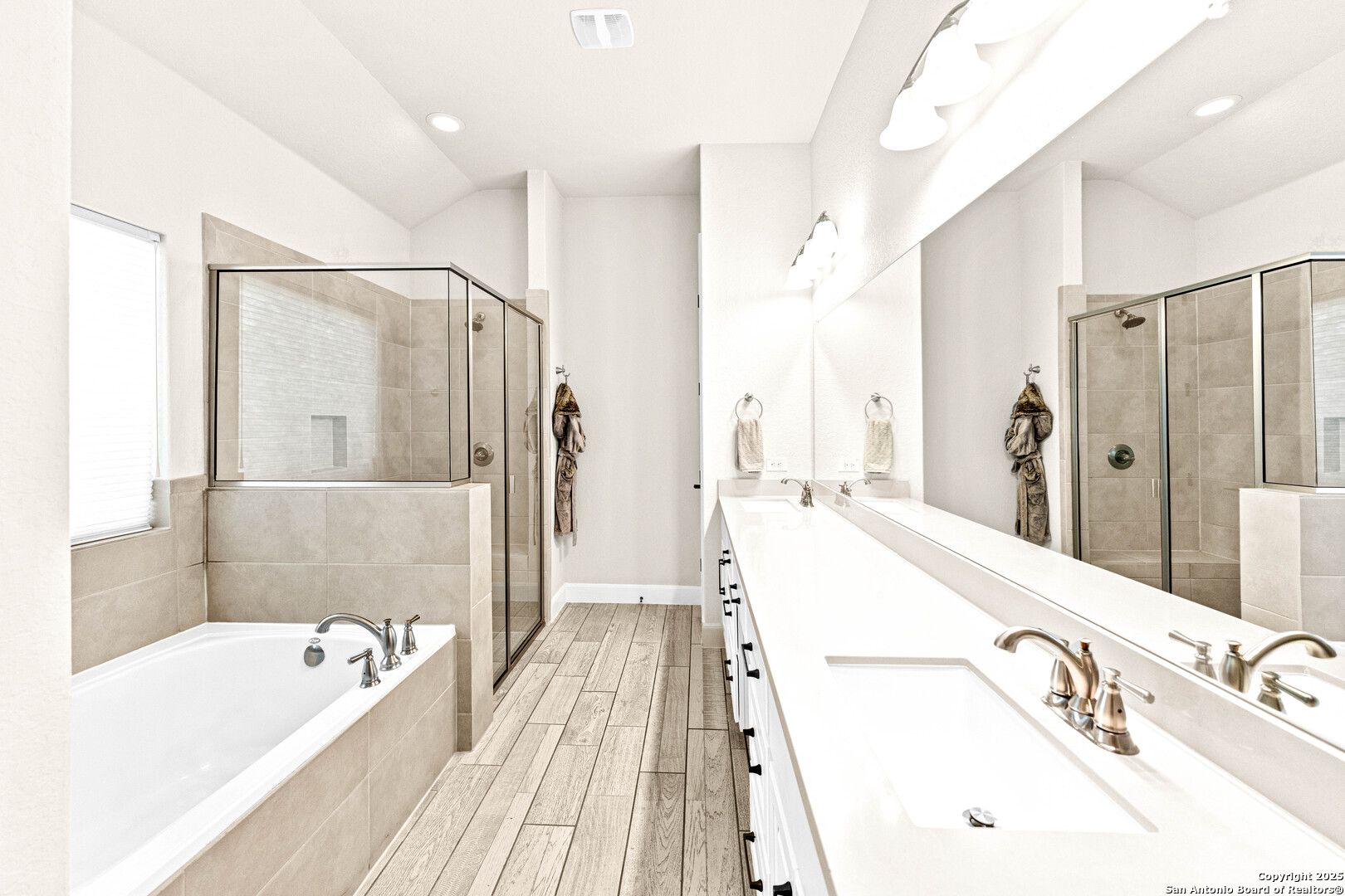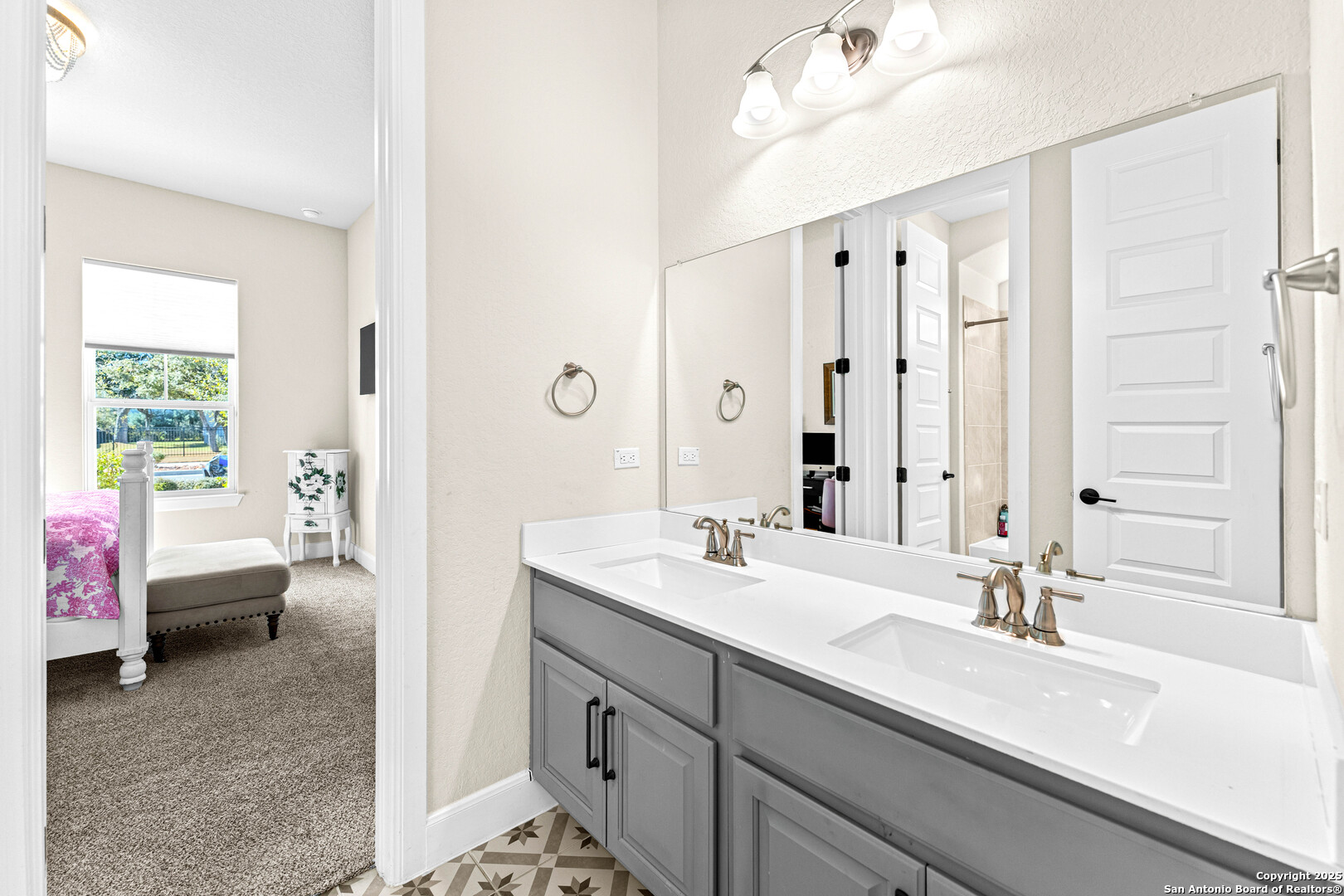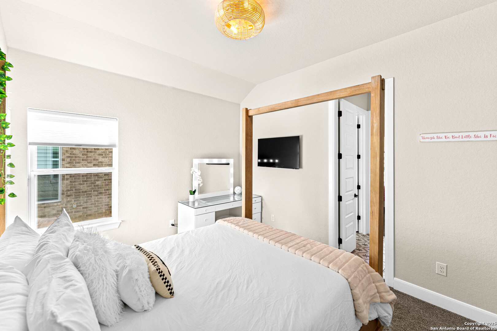 Welcome to 113 Milagro. Built by Scott Felder Homes in 2021 and backing to a peaceful greenbelt, this 2,813-square-foot home is sure to impress. Inside, you'll find 4 spacious bedrooms, 3 baths, an inviting office, and a versatile flex room. The kitchen is beautifully finished with quartz counters and opens to the living and dining areas. Two secondary bedrooms share a Jack-and-Jill bath, while the third offers its own private space for guests. The primary suite overlooks the back yard and has a generously sized bathroom with dual closets. Step outside to a covered patio, an outdoor kitchen, and a private yard with a horseshoe pit/bocce ball area and plenty of room to relax or entertain-perfectly framed by the greenbelt behind you. If you're familiar with Esperanza, you know that the community is comprised of "pods" or "villages". Milagro is its very own gated village, known as Soledad, offering an extra level of privacy and exclusivity. Any home on Milagro is a prized find, but 113 Milagro, along with the green space behind it, makes this home extra special. Gated, quiet, and incredibly sought-after. Pair that with a location just steps from the resort-style amenities-lazy river, splash pad, fitness center, dog park, and miles of walking trails-along with a neighborhood elementary in Boerne ISD, and it's easy to see why this community and this home stand out. Just 5 miles to Downtown Boerne and 30 minutes to the San Antonio airport, the location couldn't be easier for commuting, school, or weekend plans. If you're looking to move within Boerne or make the jump from San Antonio, this home brings together privacy, comfort, and community in all the right ways.