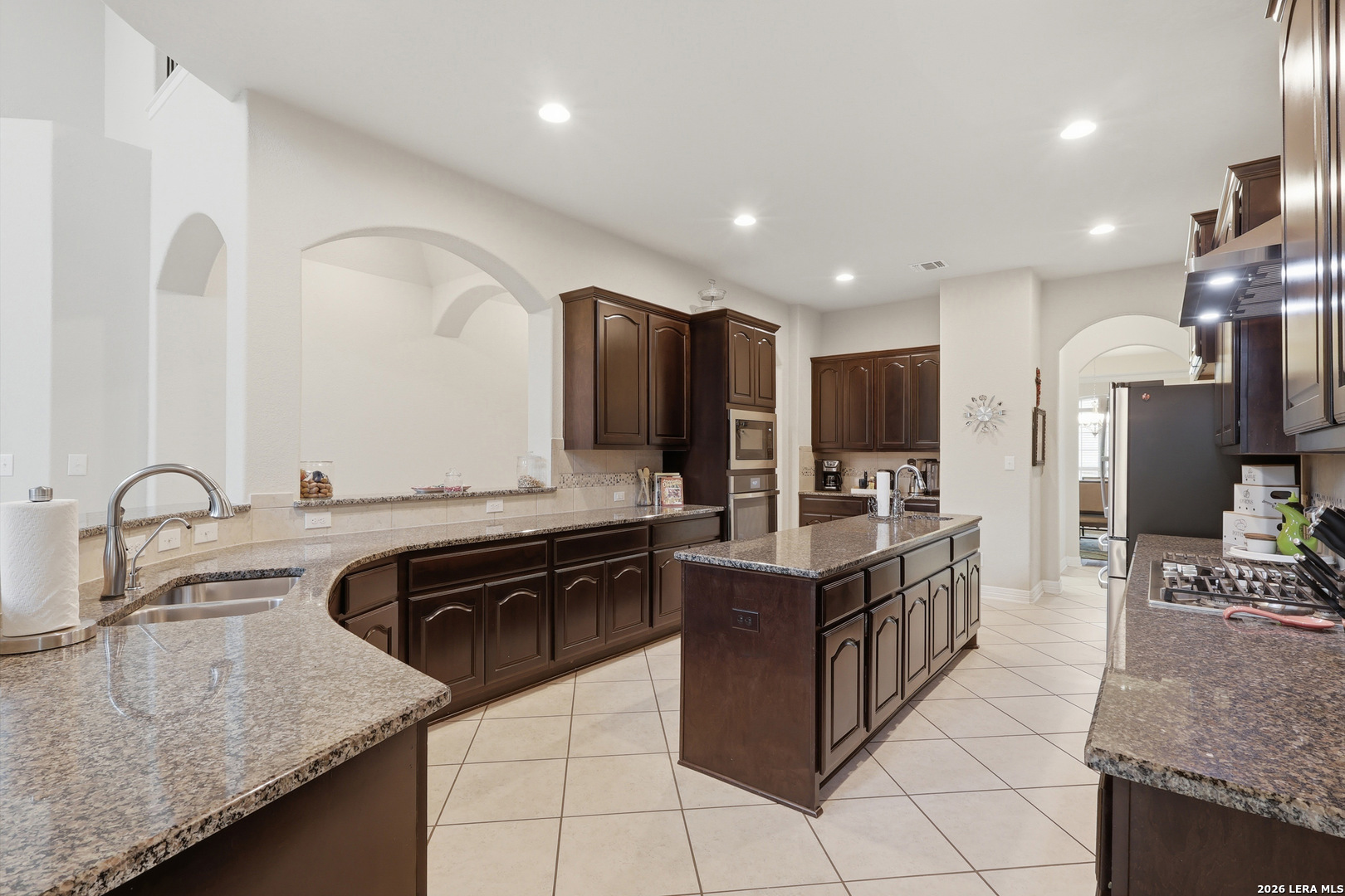Stunning luxury estate in Castroville offering nearly 4,900 sq ft on a spacious 0.69-acre lot. This 5-bedroom, 4.5-bath home features soaring ceilings, a grand staircase, and an open-concept design perfect for entertaining. The gourmet kitchen boasts granite countertops, custom cabinetry, gas cooking, and a large island overlooking the living area with a striking stone fireplace. The thoughtfully designed layout includes a private primary suite, main-level guest bedroom, and a dedicated theatre room for elevated living. Step outside to a covered patio and expansive backyard with added privacy fencing-ideal for relaxing or hosting. Located in Potranco Ranch with easy access to San Antonio, this home offers the perfect blend of luxury, space, and convenience.
