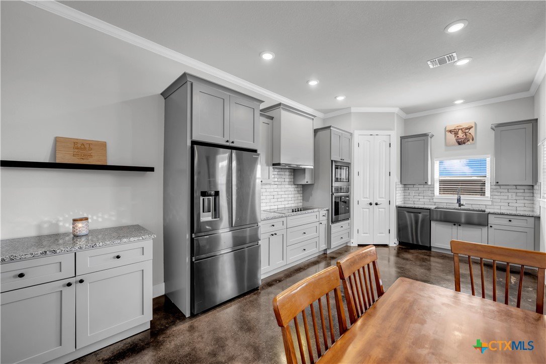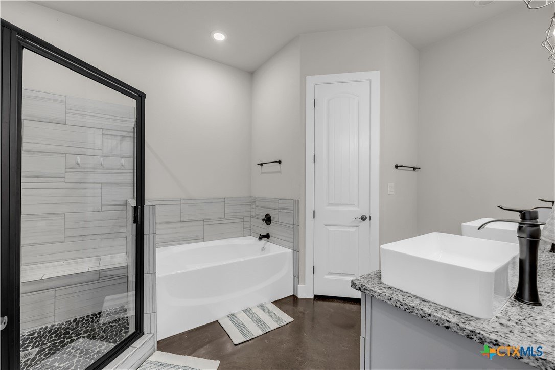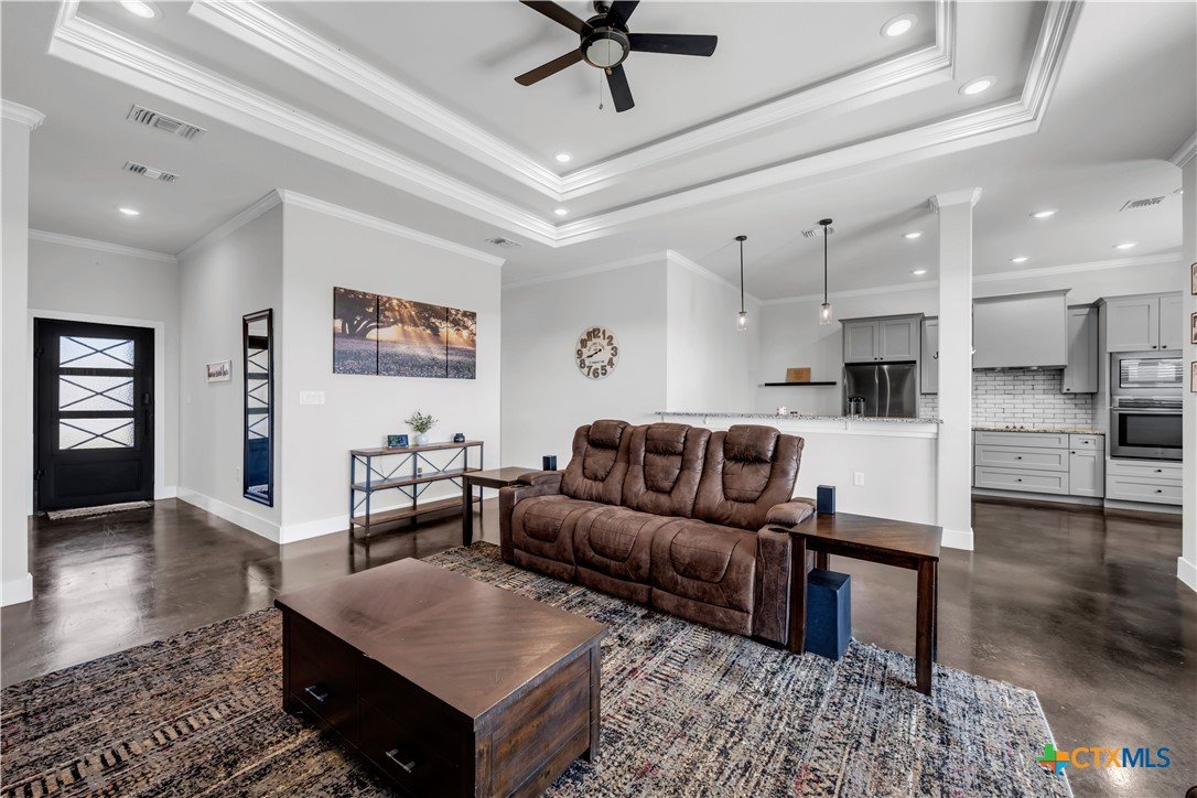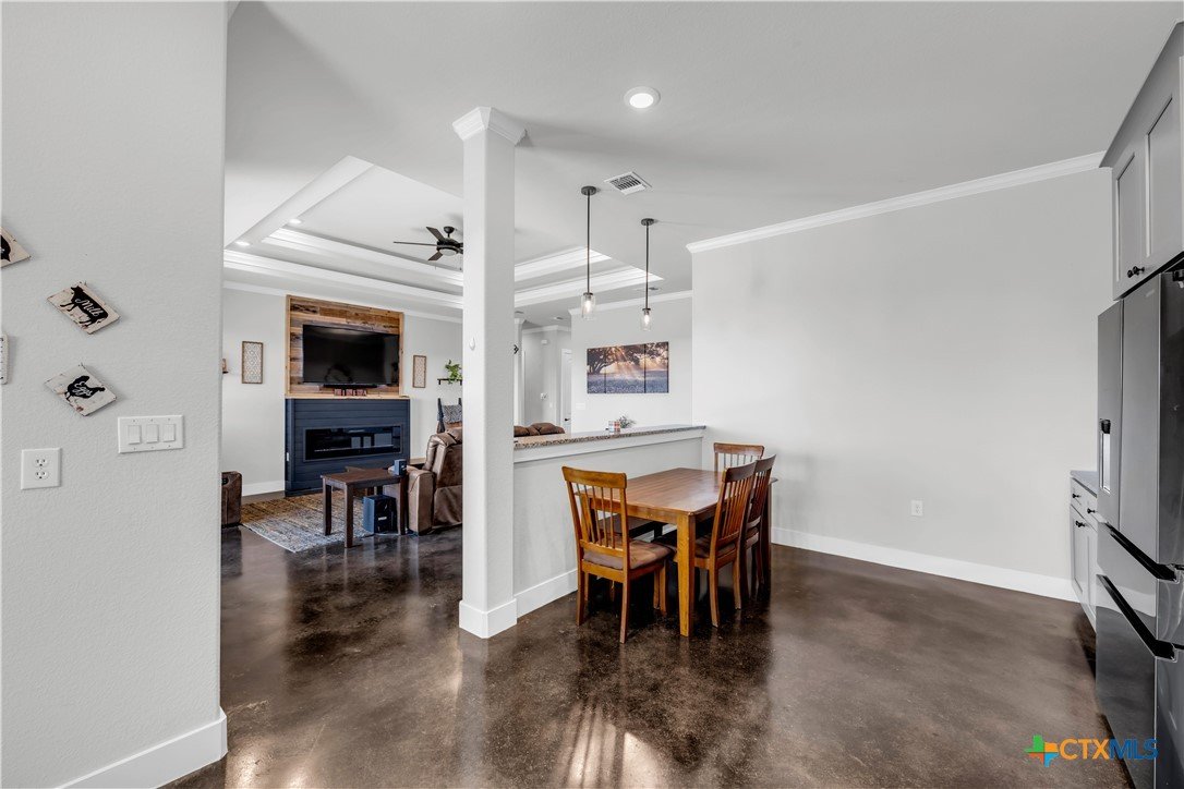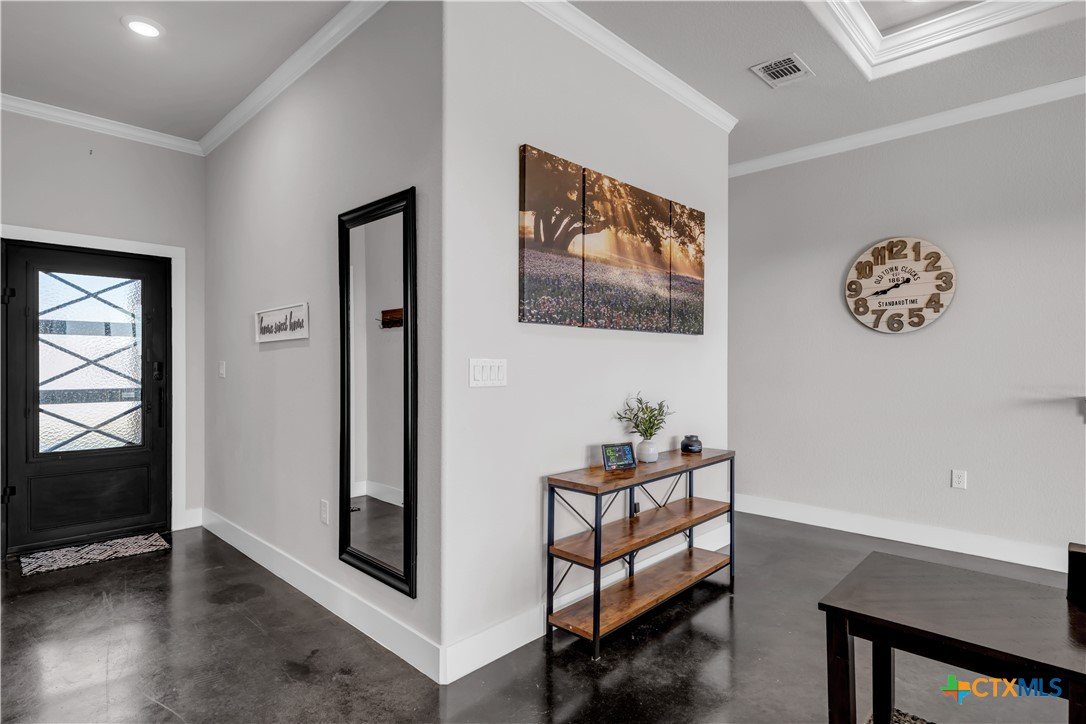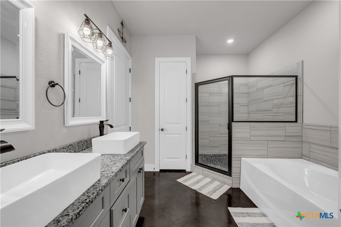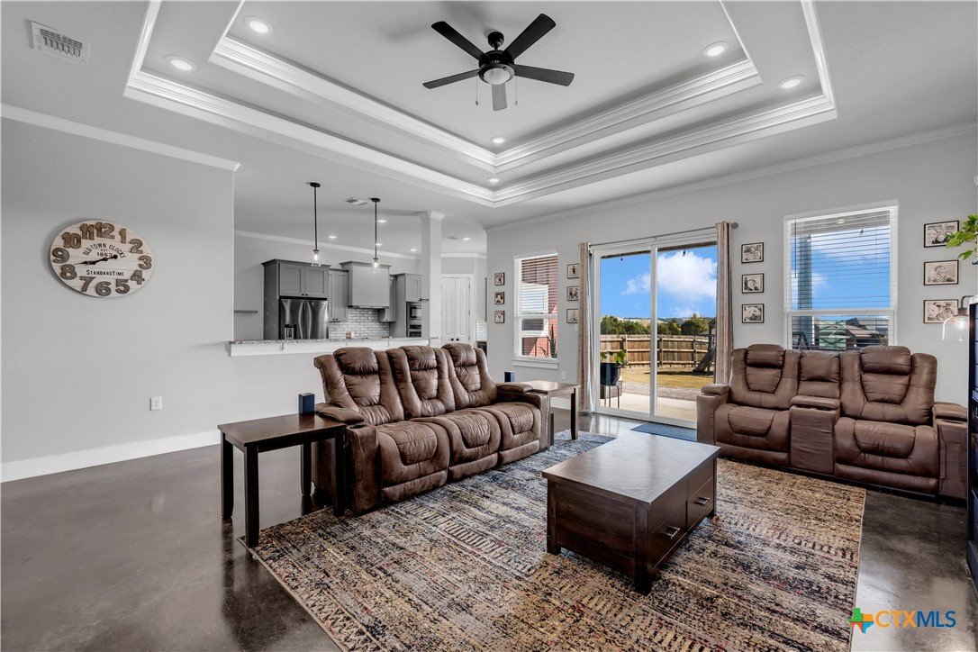 4 Bedrooms | 2.5 Baths | 1,840 Sq Ft Nestled in a family-friendly neighborhood near schools, this stunning home is located on a quiet cul-de-sac. Designed with comfort and style in mind, it offers a range of beautiful features: Open floor plan with high 10 ft, coffered ceilings Gorgeous stained concrete floors throughout Unique woodwork details in the half bath and on the master bedroom ceiling Master bathroom with tile surround shower and dual vanities Walk-in closets providing ample storage space Laundry room with a mud area and built-ins for added convenience A private fenced backyard with sprinkler system, perfect for relaxation or entertaining This home is the perfect blend of modern functionality and warm, inviting design.
