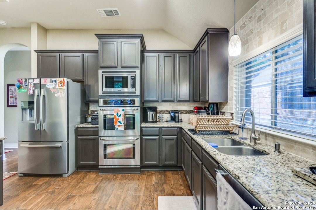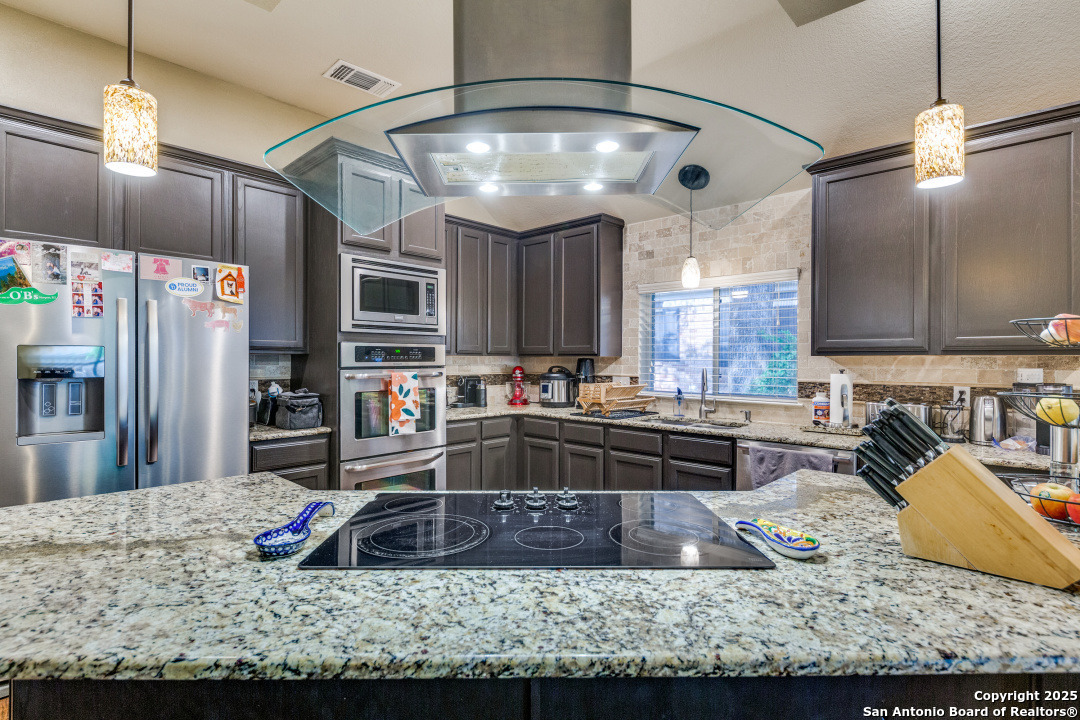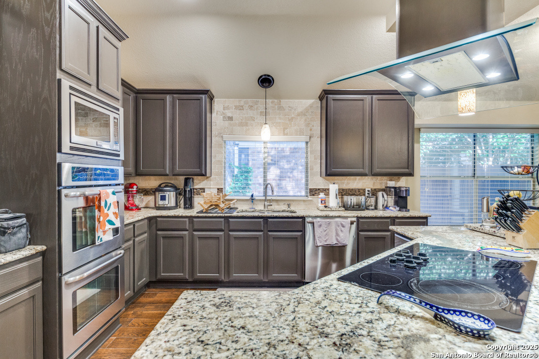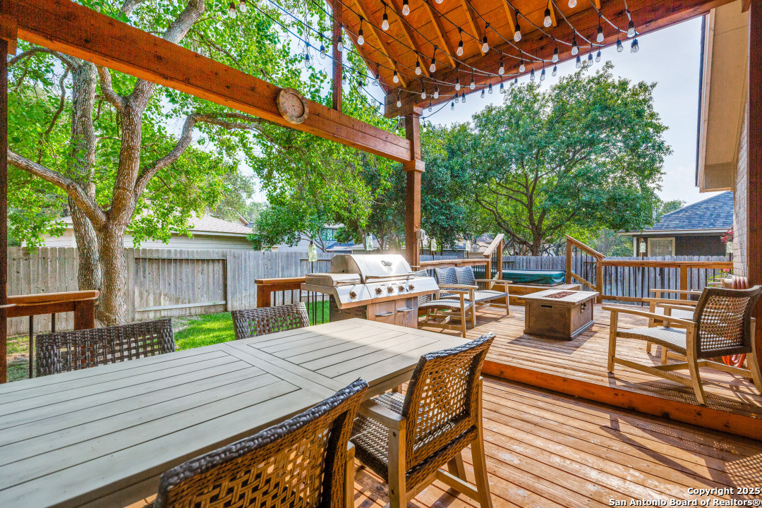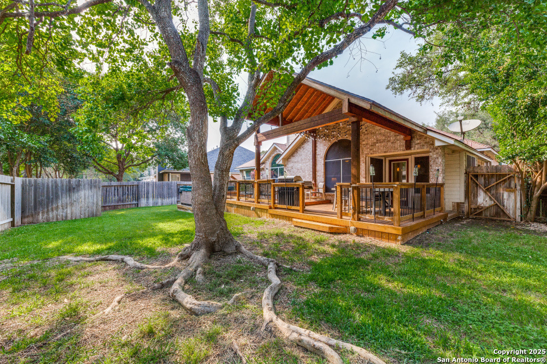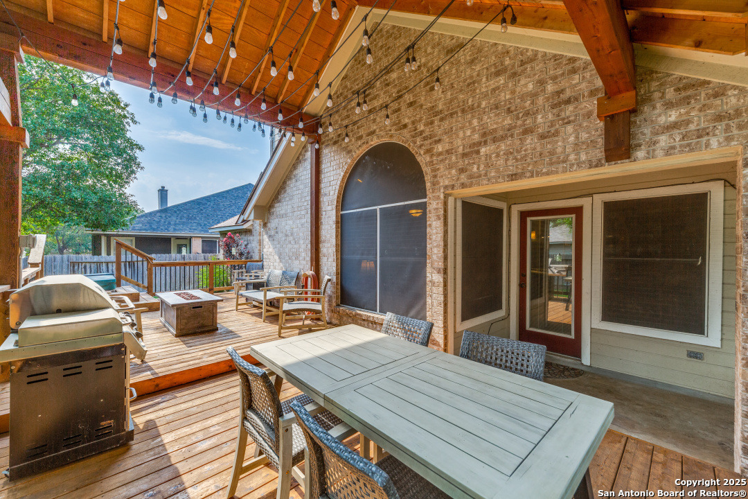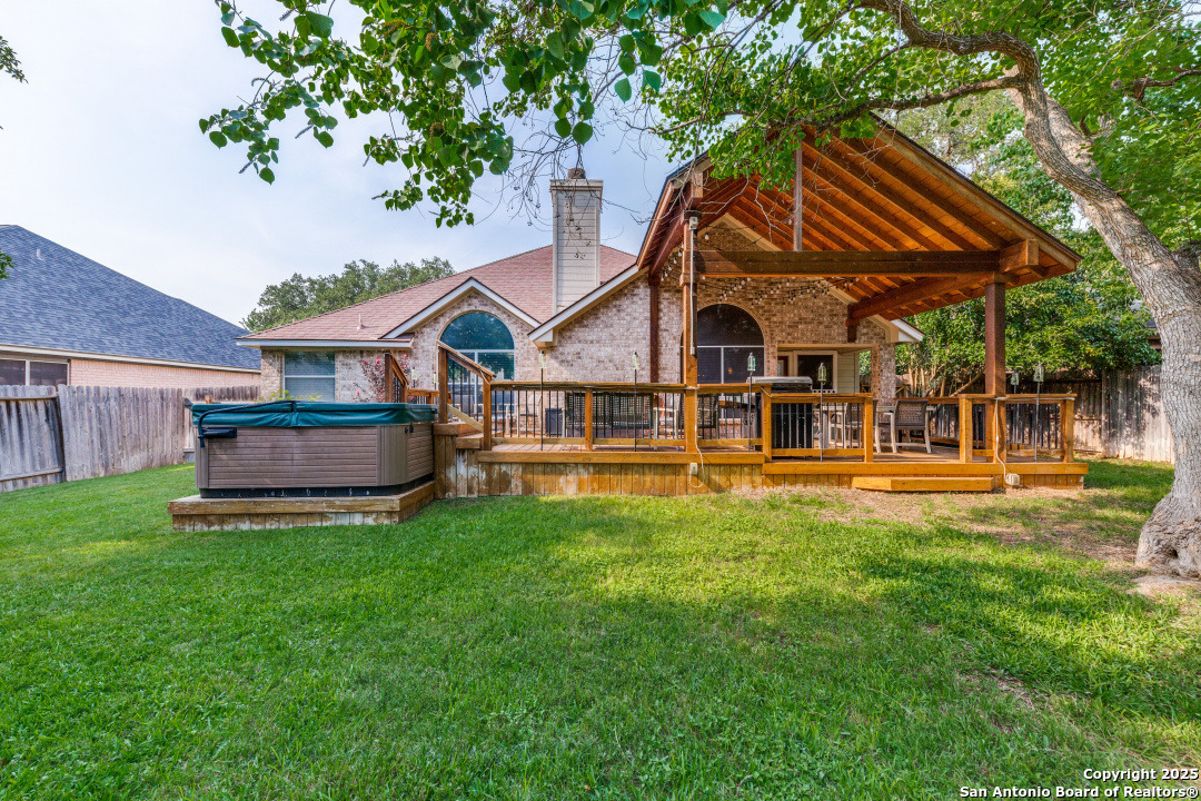STOP THE CAR! This stunning classic 1-story gated community home has it all! Attention to detail around every corner. Gourmet Kitchen with sleek vent hood. Double ovens, granite countertops, and open concept makes this perfect for entertaining. Master suite has a large sitting/study/area with a luxurious spa-style bathroom. Rainfall walk-in shower, huge walk-in closet decorated with all high-end finishes from floor to ceiling. Large covered deck and hot tub.