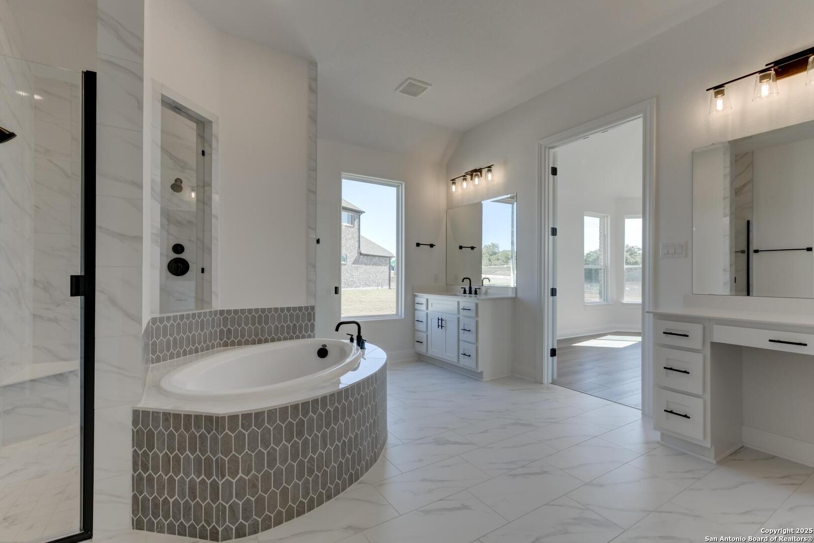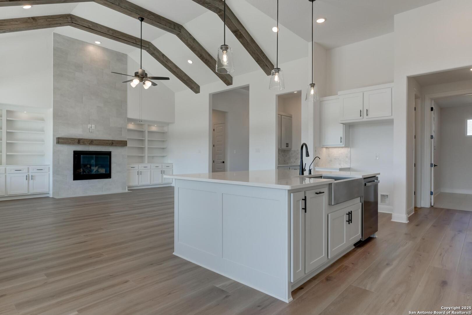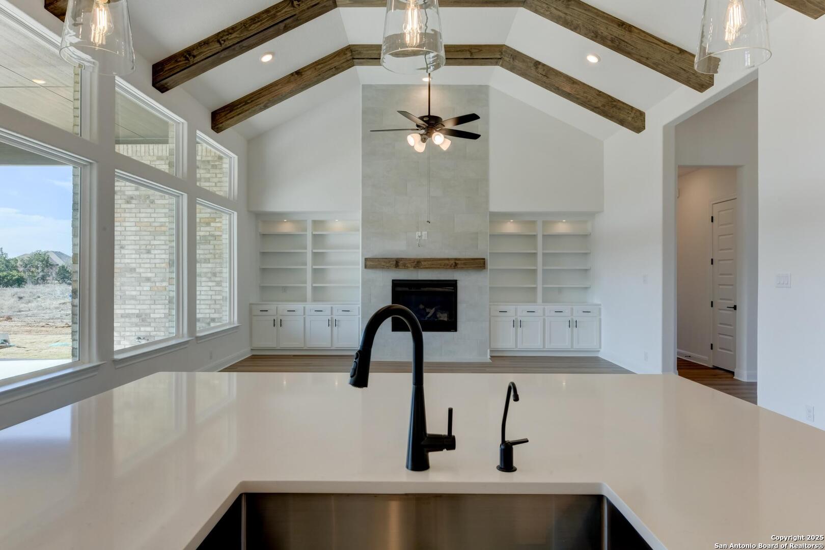 Elegant one-story home with a gourmet kitchen featuring a cooktop, built-in appliances, a walk-in pantry and a large center island open to the spacious family room features a warm, inviting fireplace. Private study located off the foyer perfect for working from home. Seperate dining room is great for entertaining and holiday meals. The luxurious primary suite includes walk-in closets, private bath with a spa-like oversized shower, seperate vanities, and garden tub.
