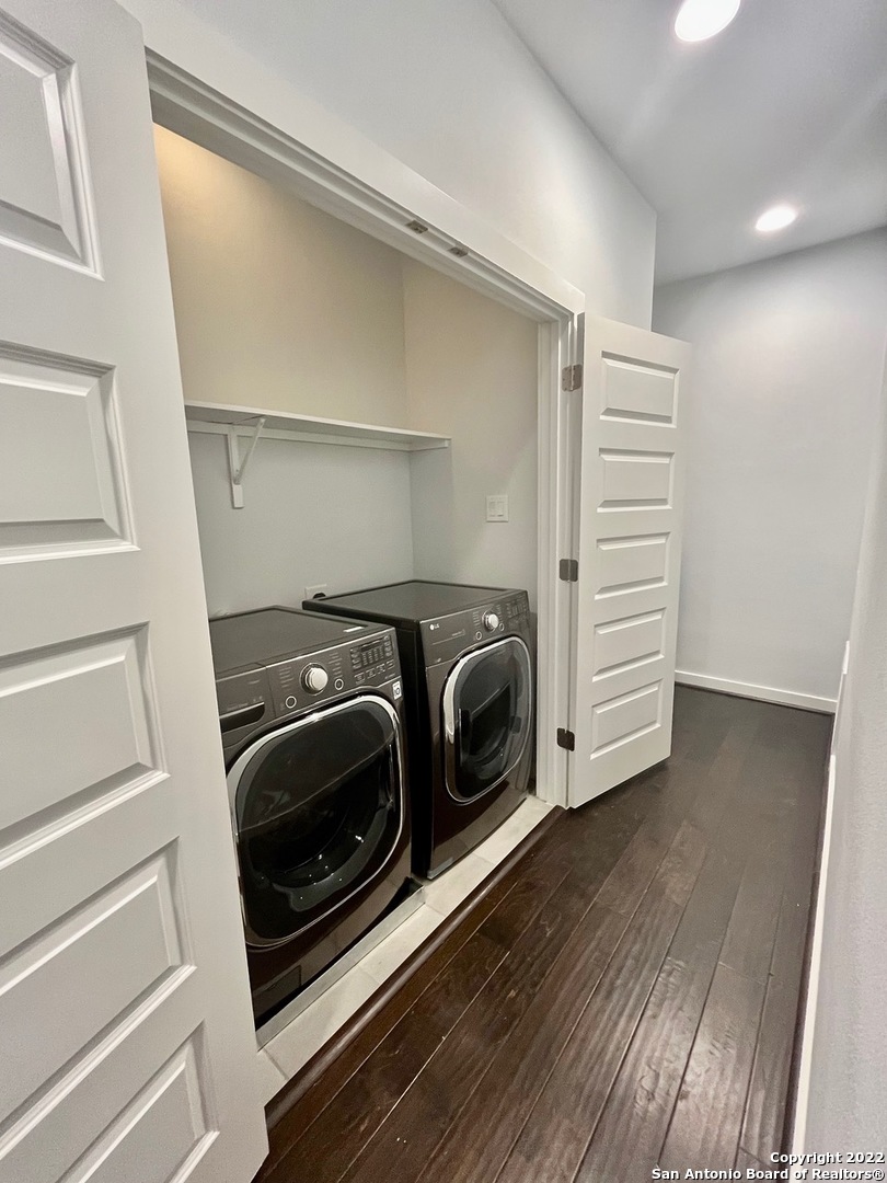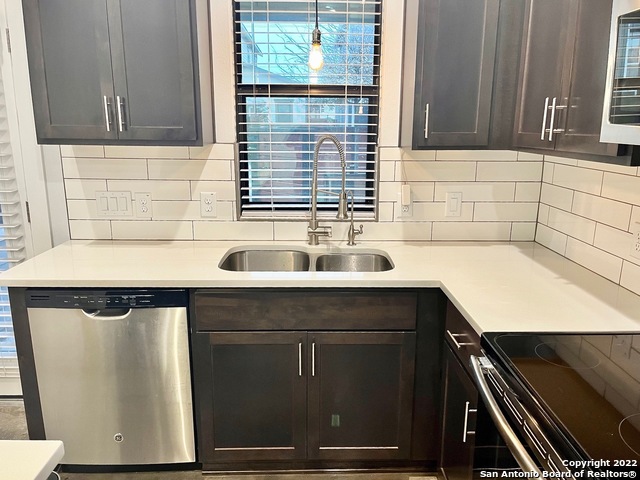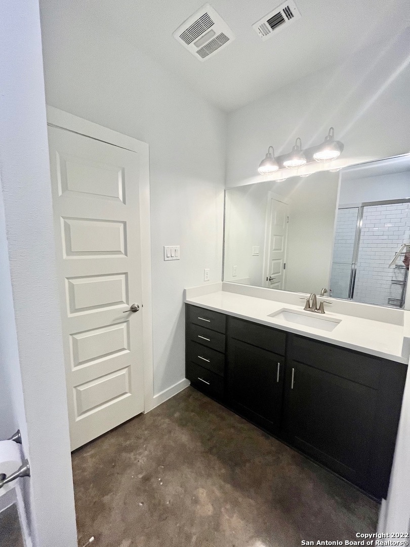 3 spacious bedrooms, 2.5 bathroom home within beautifully landscaped community in ideal location minutes to downtown, Pearl, Southtown, San Antonio Zoo, Brackenridge Park & Golf course. High ceilings. Gorgeous polished concrete floors. Ample window light. Open kitchen with island, pantry, quartz counters, subway tile and stainless appliances. Home includes refrigerator, Reverse Osmosis water filter, washer/dryer & water softener. Modern touches throughout including recessed lighting, wood accent wall, and faux wood blinds. Ceiling fans throughout. Enjoy the fenced backyard with covered patio. Home includes its own two car driveway. This house has so much to offer in a great location!