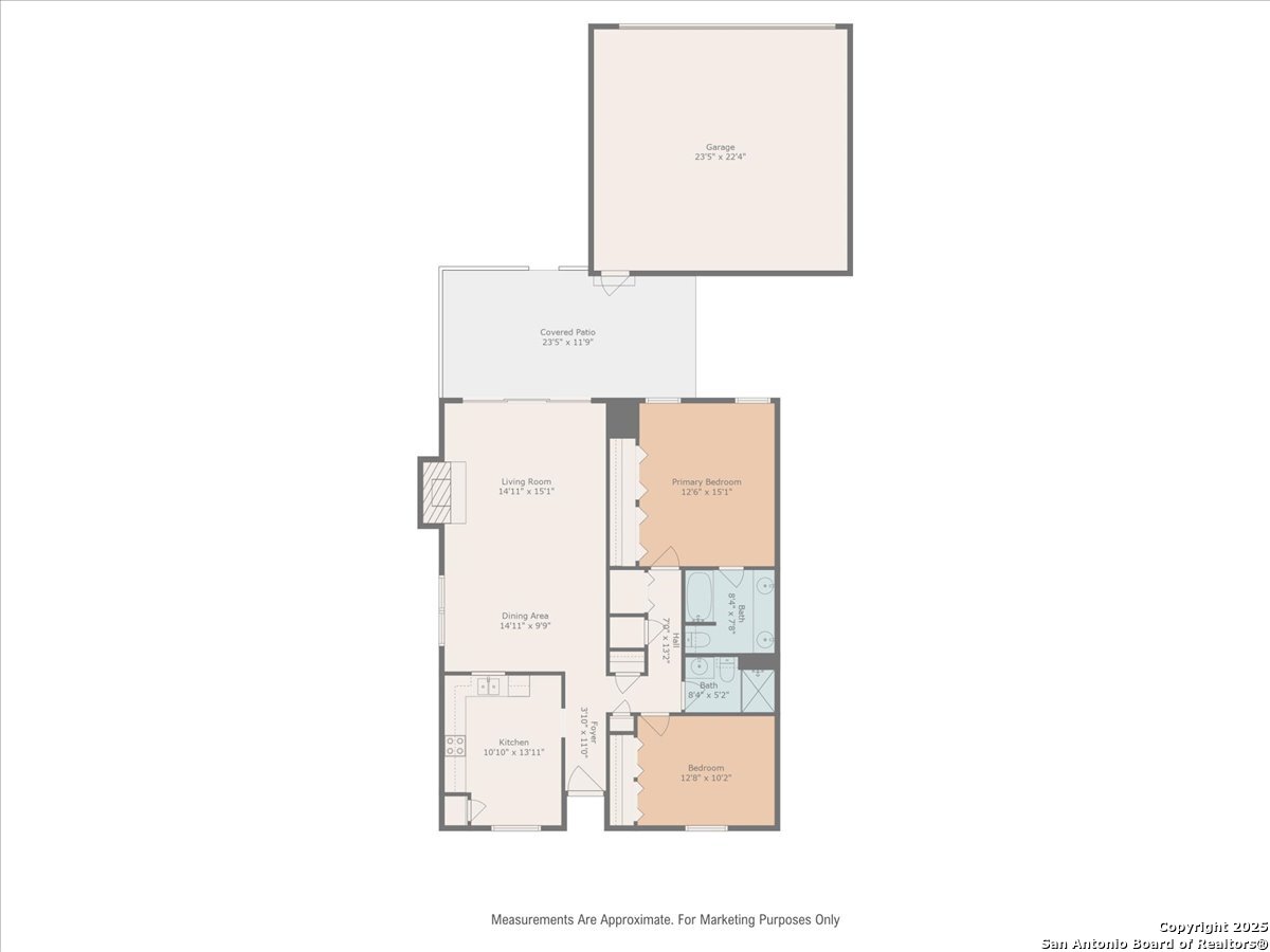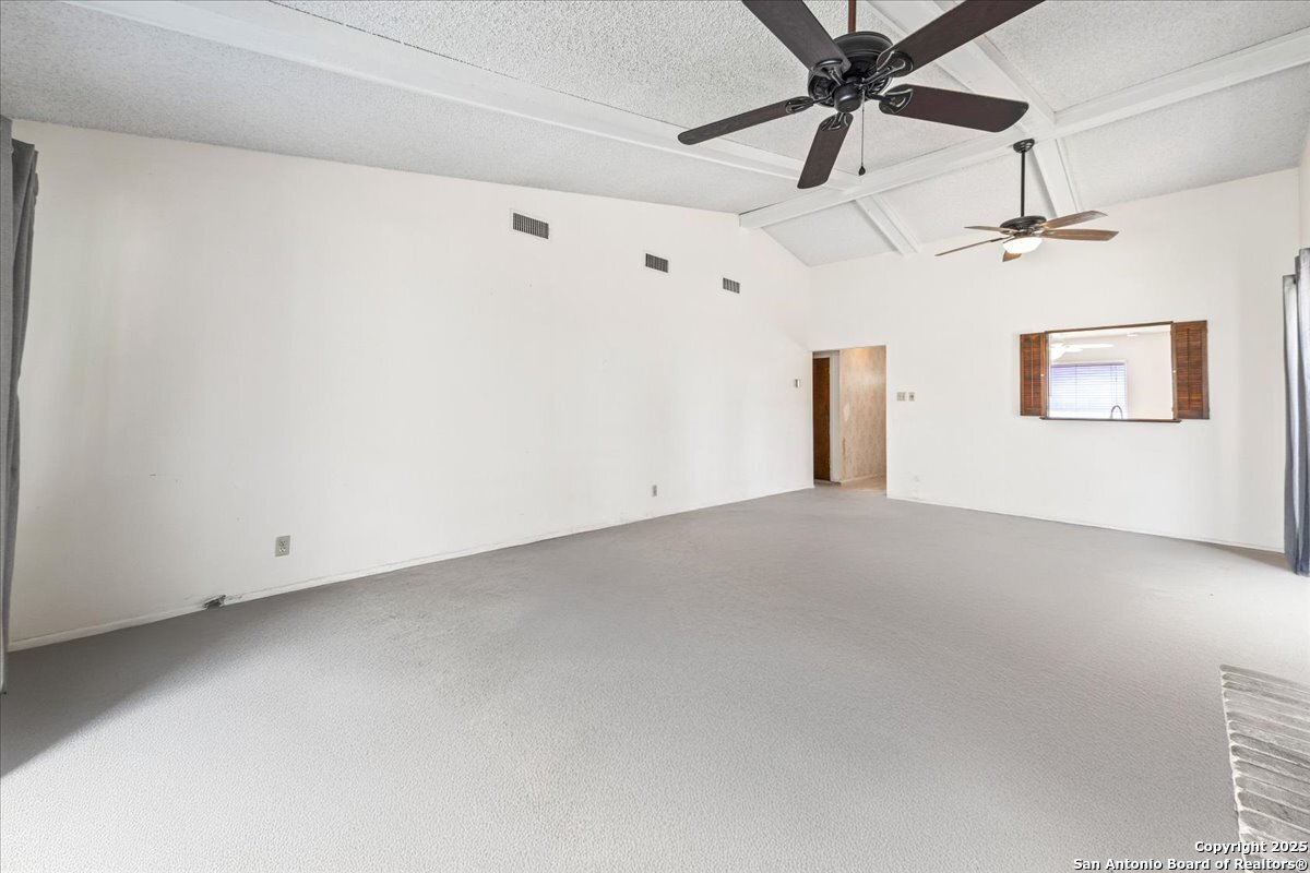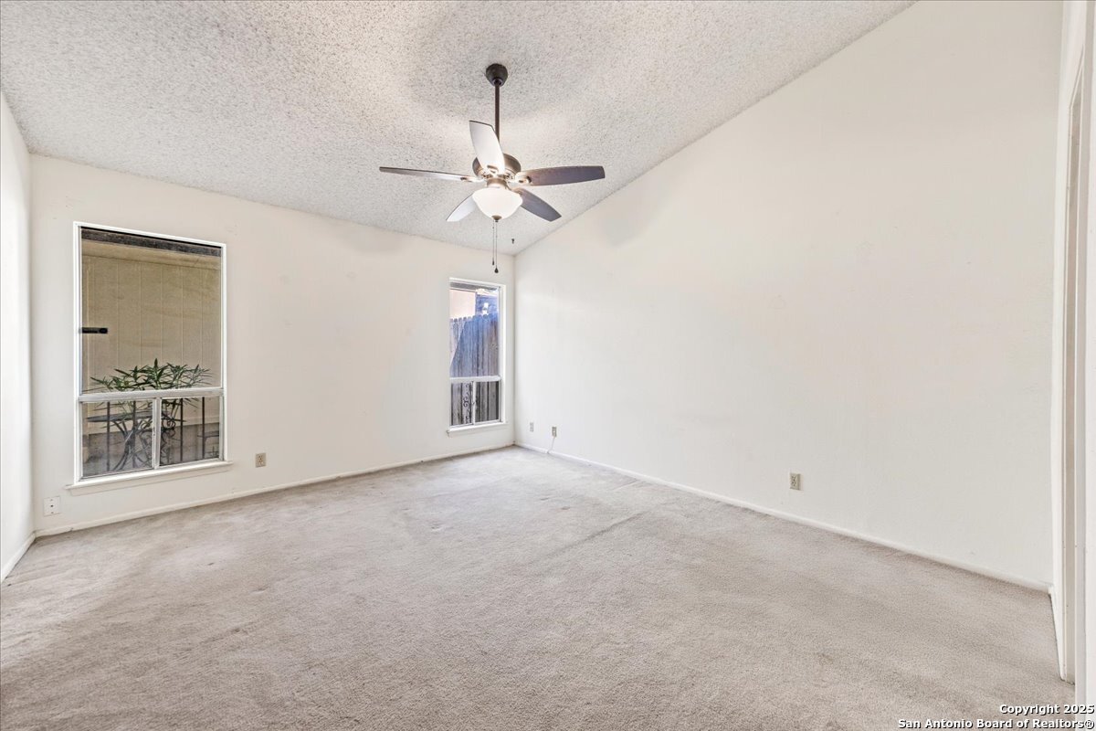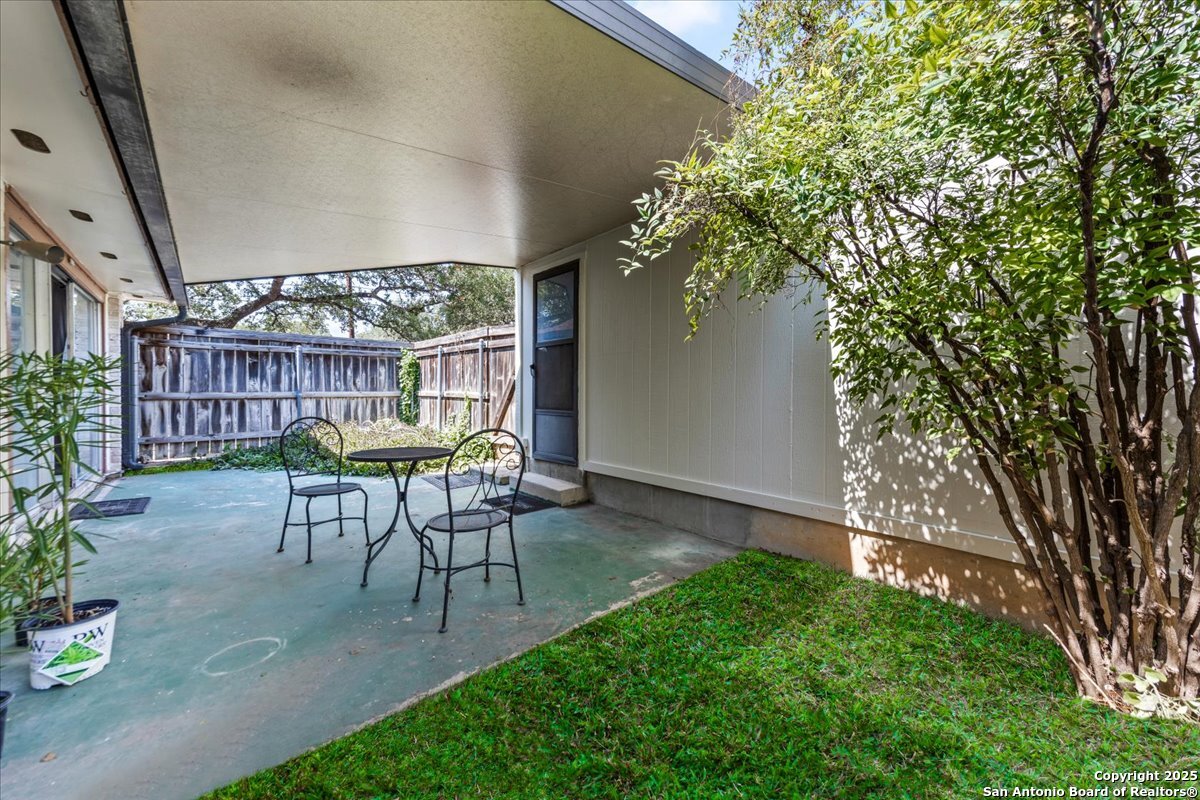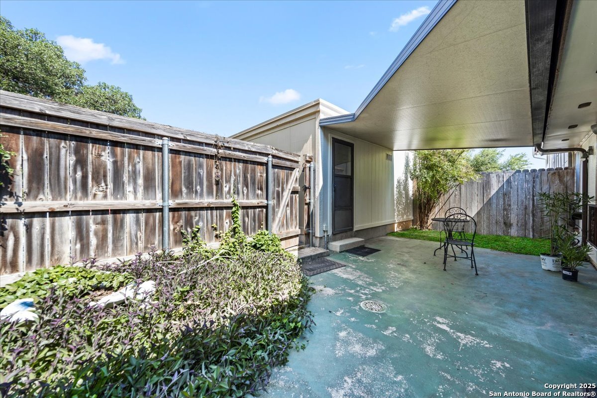 Welcome to this beautiful specious one story condominium located in the medical area , enjoy the high Ceiling and the perfect patio and more ! This condominium offers 2 beds , 2 full bath with 2 oversized car garage , New Ac installed in September 2025 with 10 years warranty , new fresh exterior paint . HOA dues include water and trash, along with upkeep of all common areas. Enjoy the beautiful community pool during the summer of san Antonio.