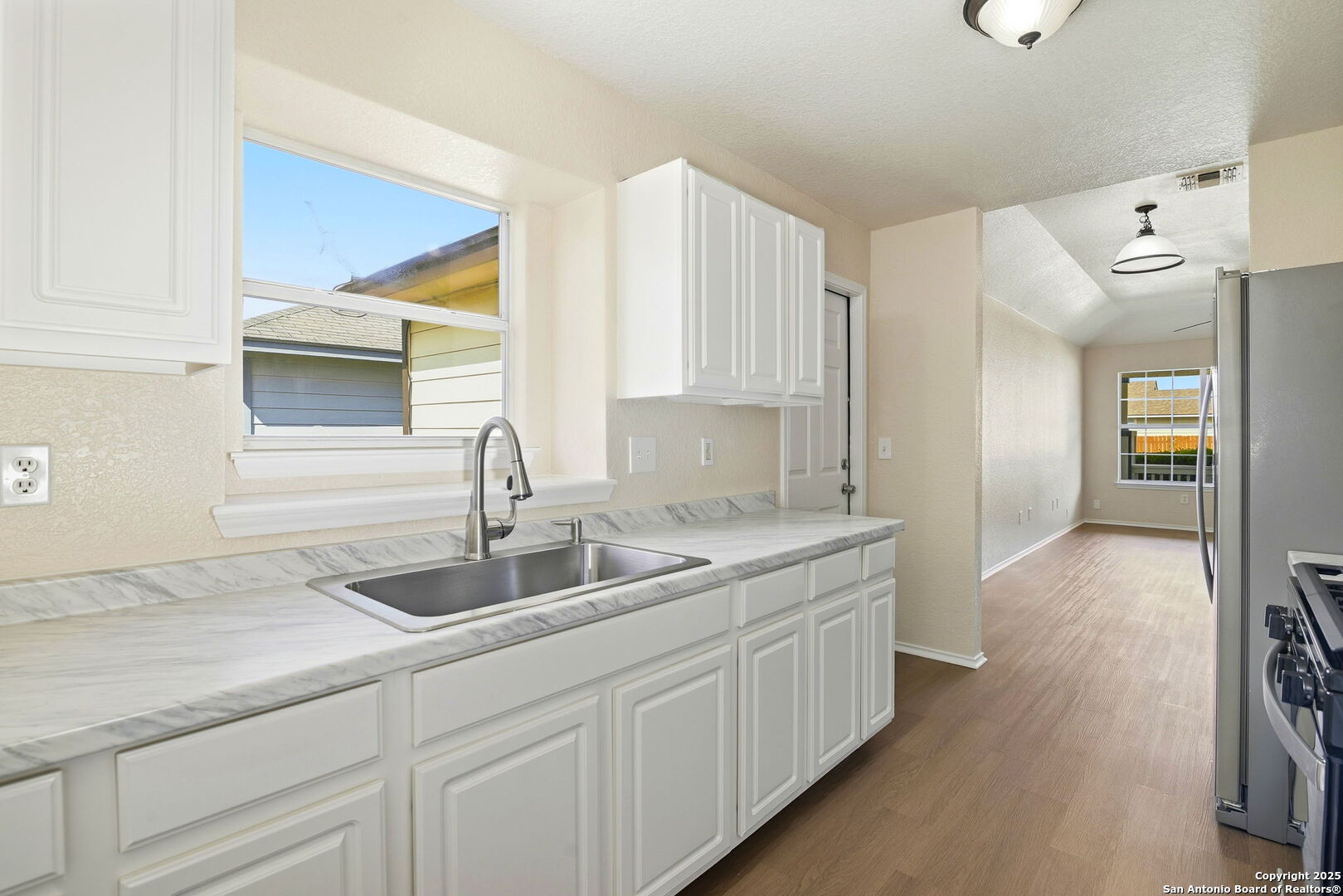 MUST SEE!!! COMPLETLEY RENOVATED AMAZING LOOKING 1 STORY, 3 BEDROOM 2 BATH HOME OPEN AND SPACIOUS WITH NEW FLOORING THROUGHOUT HOME, OPEN LIVING ROOM, NICE OPEN KITCHEN WTH NEW STAINLESS STEEL APPLIANCES , NICE SIZE MASTER BEDROOM WITH IT'S OWN BATH, TWO ADDITIONAL BEDROOMS ARE A NICE SIZE, GOOD SIZED BACKYARD FOR PLENTY AFTERNOON AND EVENING FAMILY GATHERINGS, HOME CONVENIENTLY CLOSE TO LACKLAND AFB, SEA WORLD, TOYOTA PLANT AND ALL MAJOR HIGHWAYS.