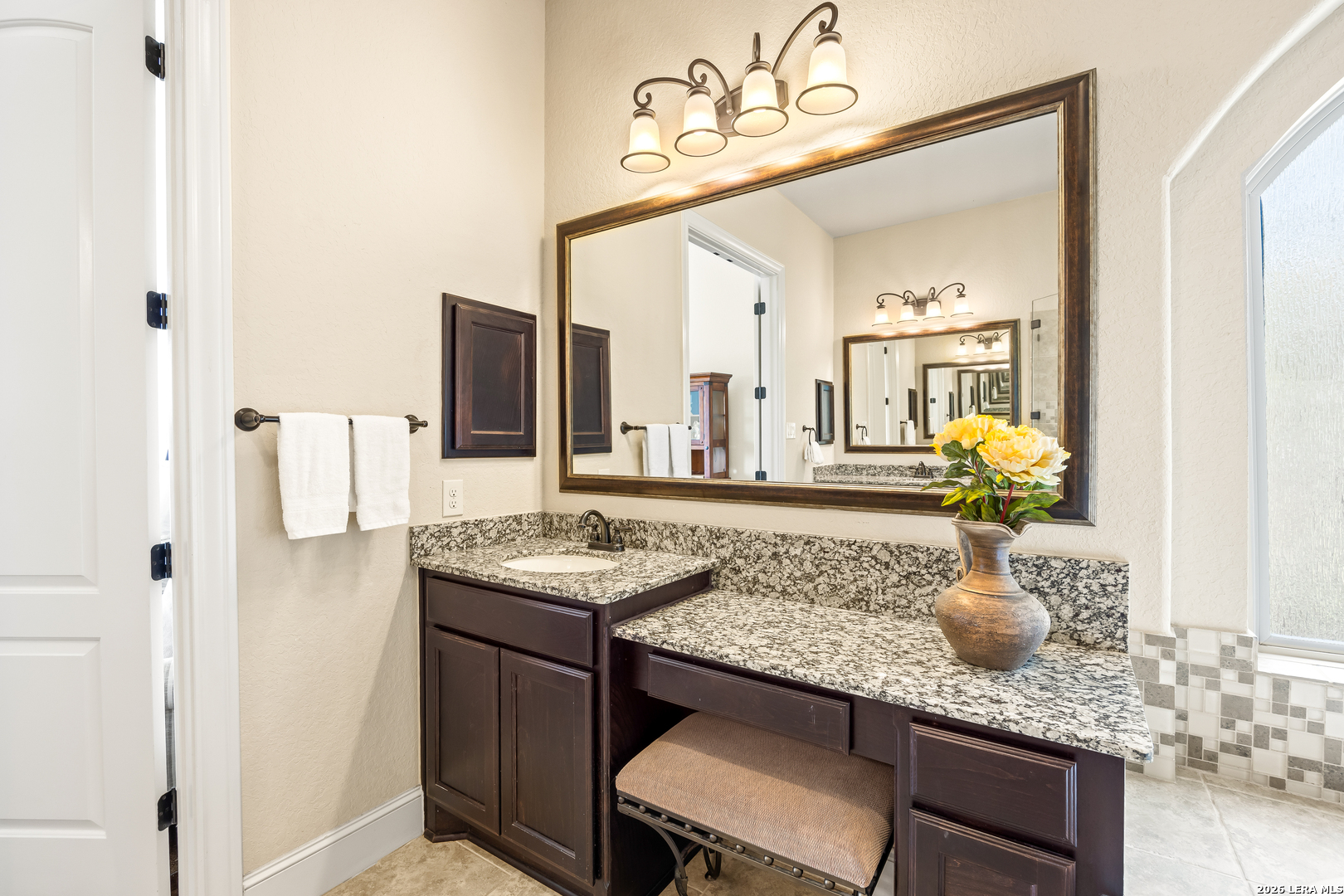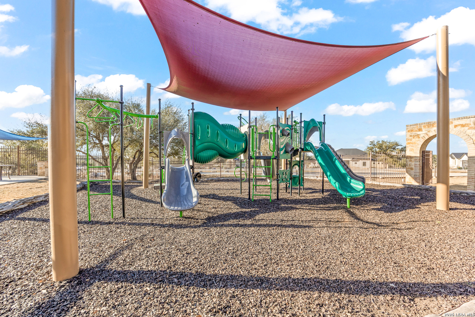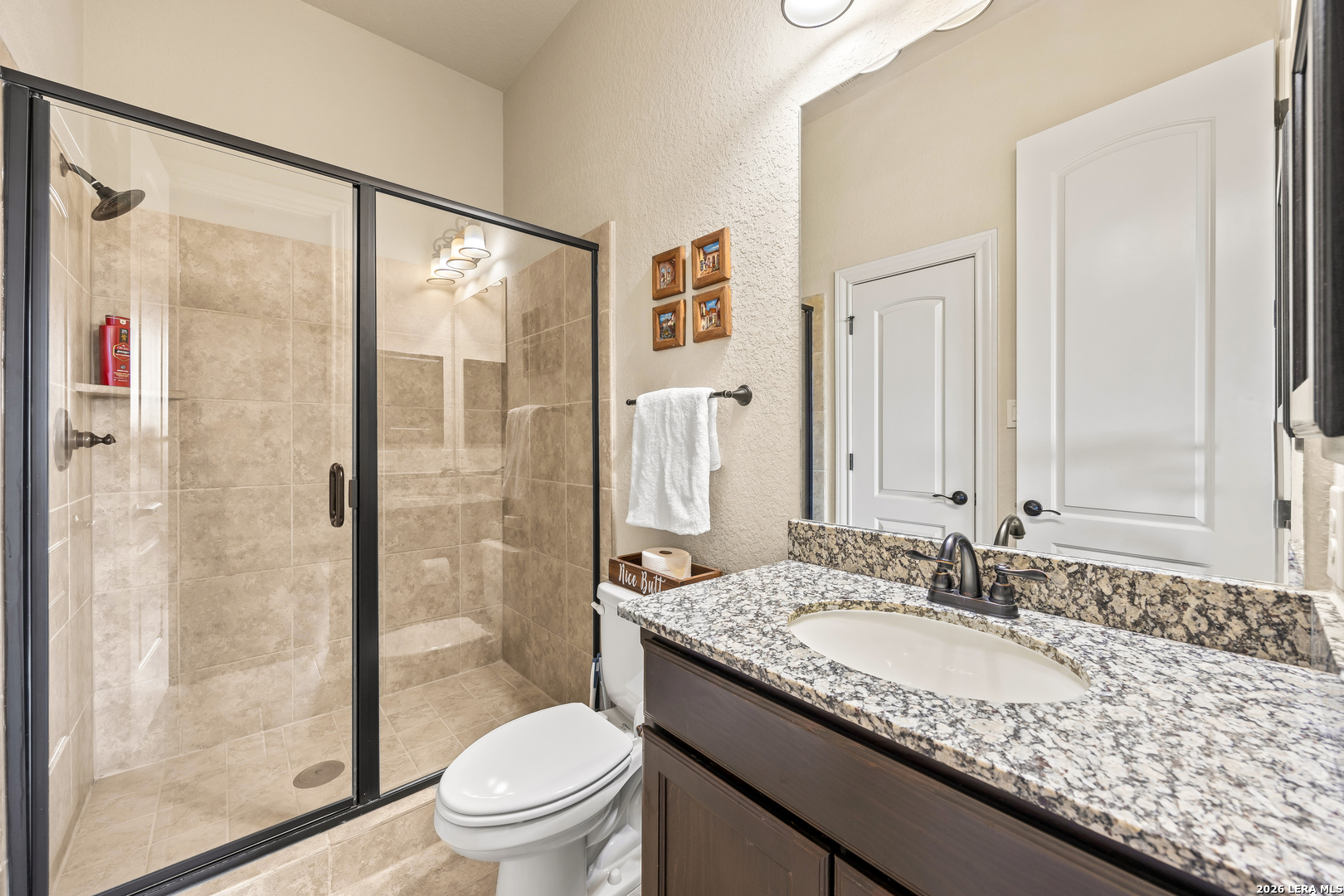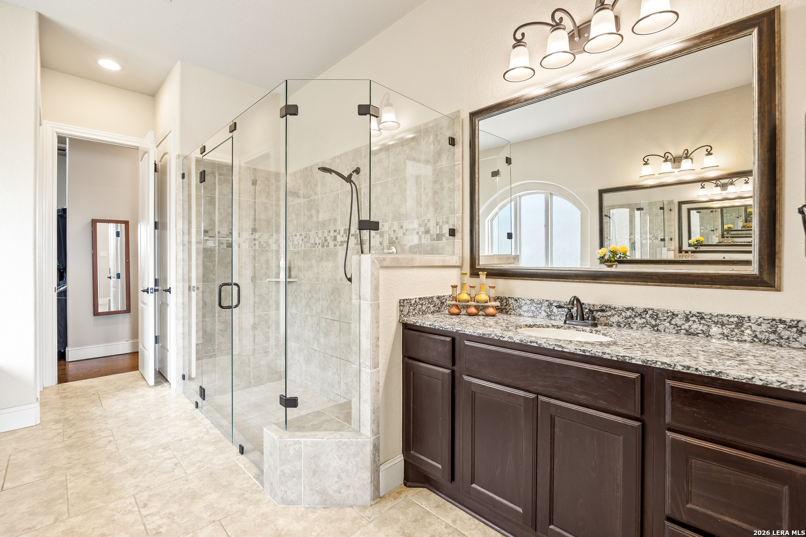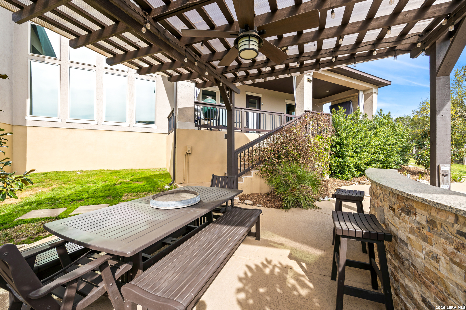 Experience the perfect blend of Hill Country beauty and refined living in this exceptional estate set on 1.44 private acres in the highly sought-after Vintage Oaks community. Backing to a serene greenbelt, this home offers privacy, open views, and a peaceful natural setting that makes every day feel like a retreat. The backyard is designed for both relaxation and entertaining, featuring a custom pool and spa with beautiful natural stone, a covered patio with its own outdoor chimney, a separate fire pit, and a stunning pergola that shelters a beautifully designed outdoor kitchen and grilling area-ideal for gatherings, sunset dinners, and evenings under the Texas sky. Inside, nearly 5,000 square feet of thoughtfully designed space welcomes you with soaring 20-foot ceilings, abundant natural light, and a dramatic floor-to-ceiling stone fireplace that anchors the main living area. The chef's kitchen impresses with an oversized island, double ovens, granite countertops, a Butler's pantry, and a 5-burner gas cooktop, all flowing seamlessly into the living and dining spaces. The main level features the spacious primary suite and a secondary bedroom with en-suite bath, offering comfort and flexibility. Upstairs, enjoy a large, beautiful media or movie room, an expansive loft, and additional bedrooms designed for both comfort and style. A custom-floored four-car garage provides ample space for vehicles, storage, or hobbies. Vintage Oaks residents enjoy resort-style amenities including a 7,800+ sq. ft. fitness center, lazy river, Olympic-style pool, clubhouse, basketball and tennis courts, soccer and baseball fields, playgrounds, and plenty of hiking trails that wind through scenic Hill Country surroundings. A rare opportunity to own a home where luxury, privacy, and lifestyle come together in one extraordinary setting.