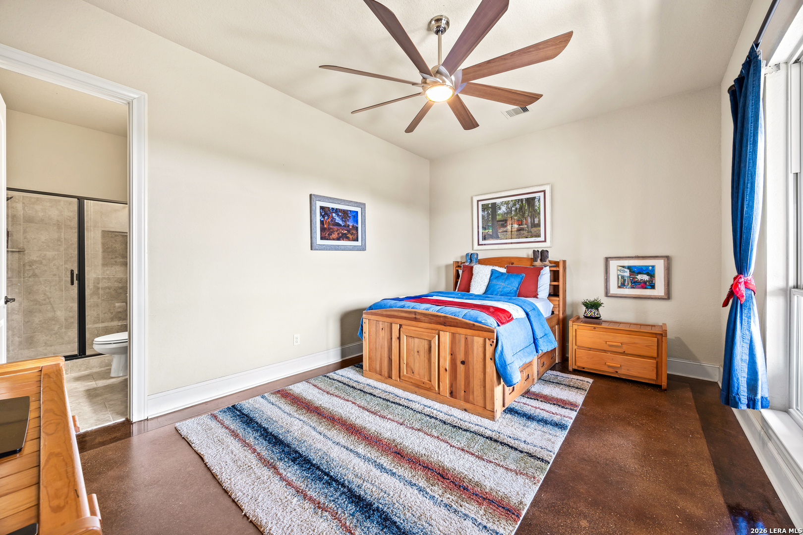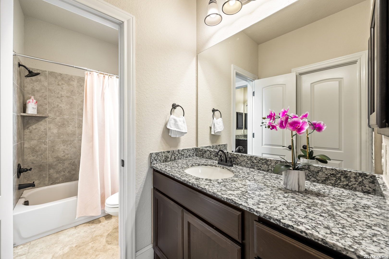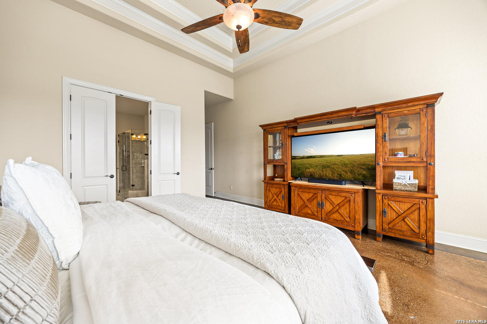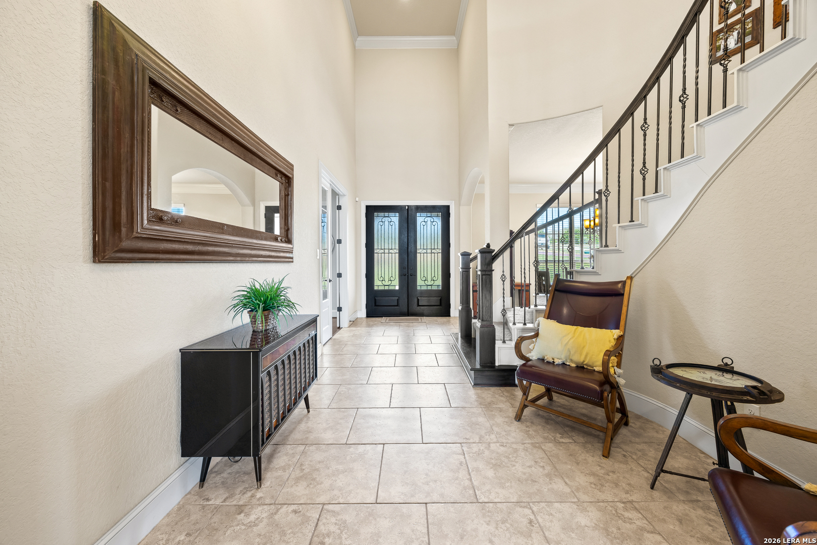 Experience the perfect blend of Hill Country beauty and refined living in this exceptional estate set on 1.44 private acres in the highly sought-after Vintage Oaks community. Backing to a serene greenbelt, this home offers privacy, open views, and a peaceful natural setting that makes every day feel like a retreat. The backyard is designed for both relaxation and entertaining, featuring a custom pool and spa with beautiful natural stone, a covered patio with its own outdoor chimney, a separate fire pit, and a stunning pergola that shelters a beautifully designed outdoor kitchen and grilling area-ideal for gatherings, sunset dinners, and evenings under the Texas sky. Inside, nearly 5,000 square feet of thoughtfully designed space welcomes you with soaring 20-foot ceilings, abundant natural light, and a dramatic floor-to-ceiling stone fireplace that anchors the main living area. The chef's kitchen impresses with an oversized island, double ovens, granite countertops, a Butler's pantry, and a 5-burner gas cooktop, all flowing seamlessly into the living and dining spaces. The main level features the spacious primary suite and a secondary bedroom with en-suite bath, offering comfort and flexibility. Upstairs, enjoy a large, beautiful media or movie room, an expansive loft, and additional bedrooms designed for both comfort and style. A custom-floored four-car garage provides ample space for vehicles, storage, or hobbies. Vintage Oaks residents enjoy resort-style amenities including a 7,800+ sq. ft. fitness center, lazy river, Olympic-style pool, clubhouse, basketball and tennis courts, soccer and baseball fields, playgrounds, and plenty of hiking trails that wind through scenic Hill Country surroundings. A rare opportunity to own a home where luxury, privacy, and lifestyle come together in one extraordinary setting.