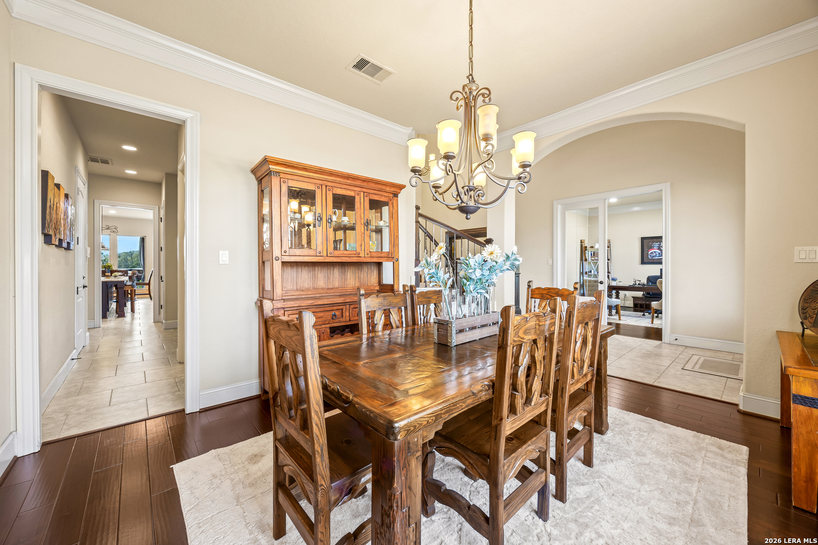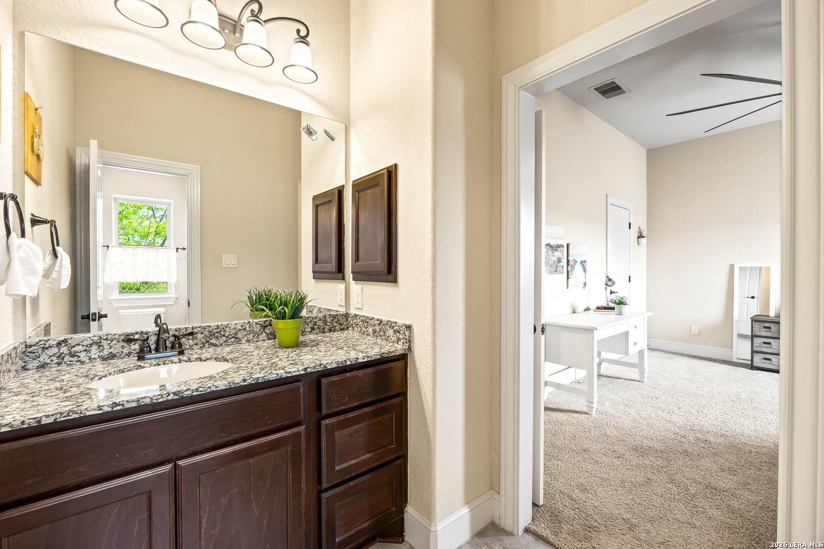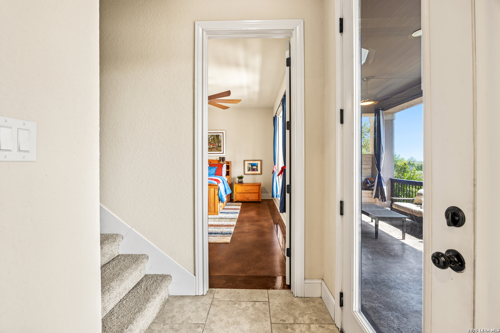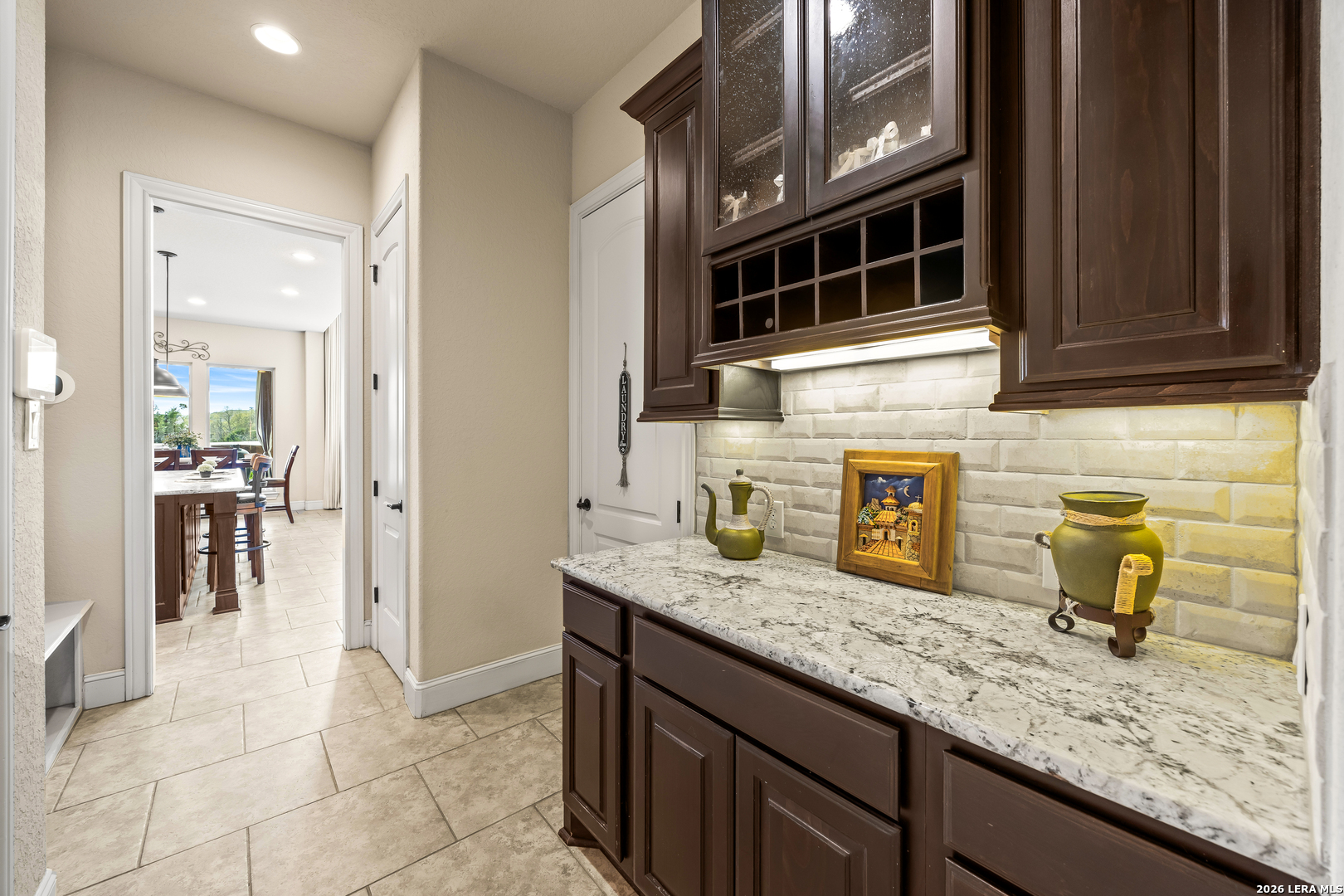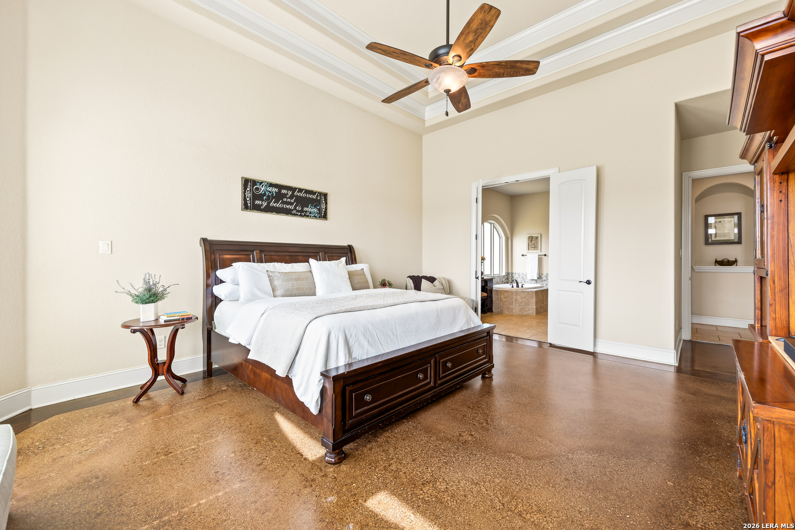 Experience the perfect blend of Hill Country beauty and refined living in this exceptional estate set on 1.44 private acres in the highly sought-after Vintage Oaks community. Backing to a serene greenbelt, this home offers privacy, open views, and a peaceful natural setting that makes every day feel like a retreat. The backyard is designed for both relaxation and entertaining, featuring a custom pool and spa with beautiful natural stone, a covered patio with its own outdoor chimney, a separate fire pit, and a stunning pergola that shelters a beautifully designed outdoor kitchen and grilling area-ideal for gatherings, sunset dinners, and evenings under the Texas sky. Inside, nearly 5,000 square feet of thoughtfully designed space welcomes you with soaring 20-foot ceilings, abundant natural light, and a dramatic floor-to-ceiling stone fireplace that anchors the main living area. The chef's kitchen impresses with an oversized island, double ovens, granite countertops, a Butler's pantry, and a 5-burner gas cooktop, all flowing seamlessly into the living and dining spaces. The main level features the spacious primary suite and a secondary bedroom with en-suite bath, offering comfort and flexibility. Upstairs, enjoy a large, beautiful media or movie room, an expansive loft, and additional bedrooms designed for both comfort and style. A custom-floored four-car garage provides ample space for vehicles, storage, or hobbies. Vintage Oaks residents enjoy resort-style amenities including a 7,800+ sq. ft. fitness center, lazy river, Olympic-style pool, clubhouse, basketball and tennis courts, soccer and baseball fields, playgrounds, and plenty of hiking trails that wind through scenic Hill Country surroundings. A rare opportunity to own a home where luxury, privacy, and lifestyle come together in one extraordinary setting.