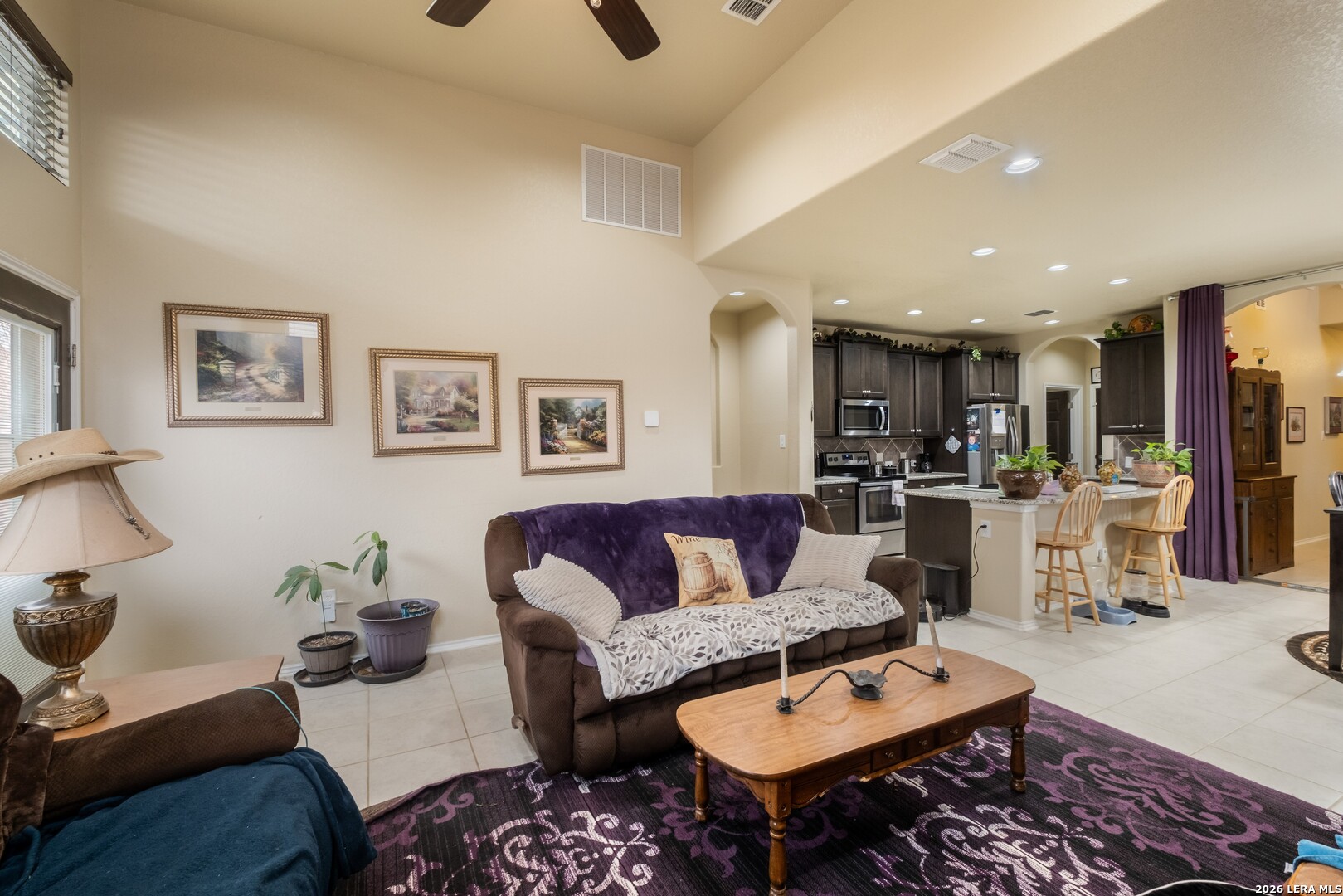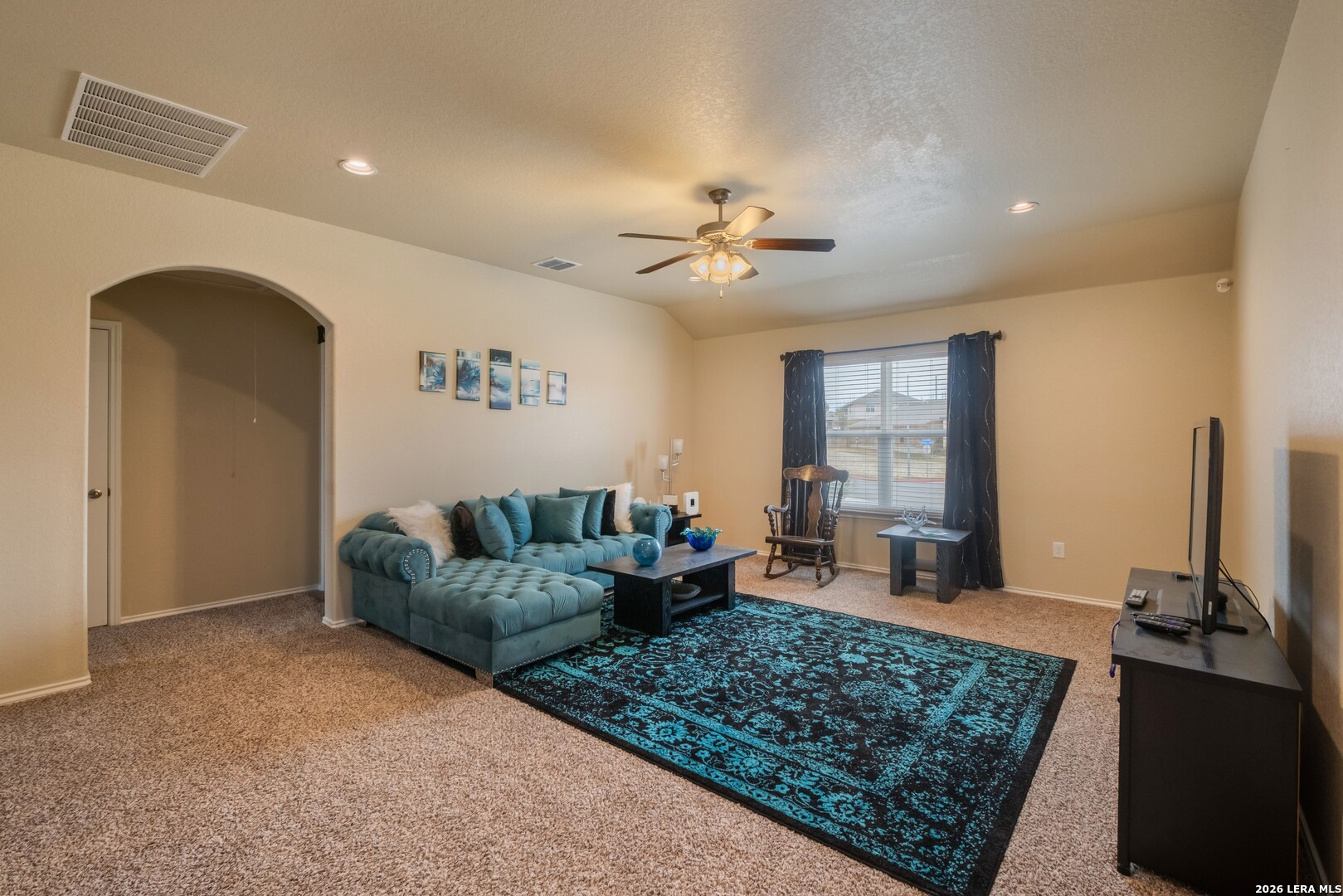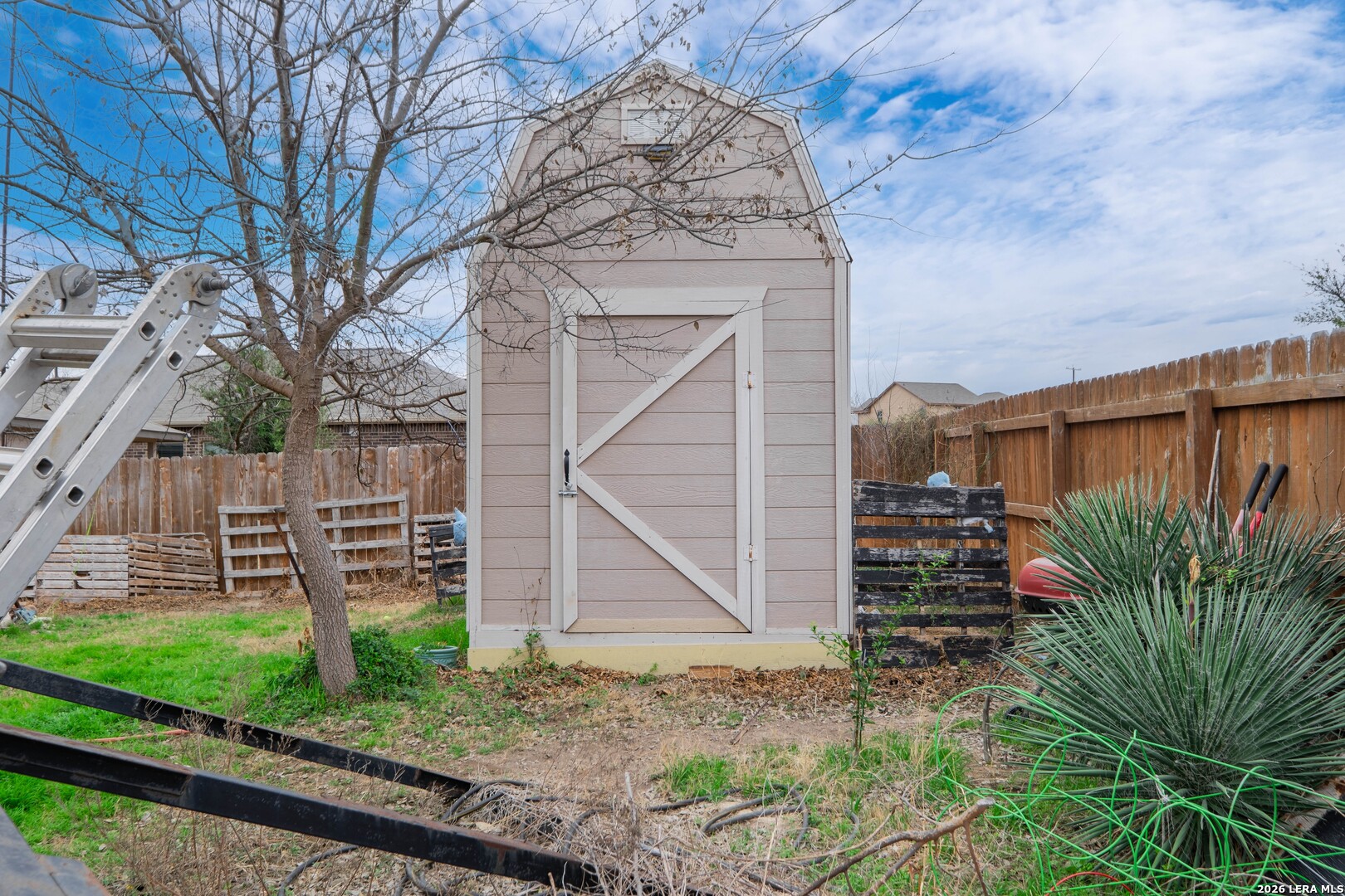 Nestled in a cul-de-sac within a gated community, this 4-bedroom, 3.5-bath, two-story home offers privacy, security, and an exceptional layout ideal for everyday living and multigenerational arrangements. Equipped with solar panels for energy efficiency and an attached 2-car garage, the home blends comfort with long-term savings. Step inside the foyer, which opens to an inviting open-concept living, dining, and kitchen area highlighted by elegant interior archways that add architectural character. The living room features high ceilings, creating a bright and airy atmosphere. The spacious kitchen offers a large center island, granite countertops, and a pantry, making it ideal for both daily use and entertaining. The primary suite is conveniently located on the main level at the rear of the home for added privacy. This carpeted retreat features a tray ceiling, high ceilings, and an ensuite bath with a double vanity, walk-in shower, and walk-in closet. Upstairs, a thoughtfully designed split floorplan includes three additional bedrooms and two full bathrooms, including a Jack-and-Jill bath. All upstairs bedrooms and the expansive family room are carpeted, providing a comfortable and cohesive space for relaxation, play, or gatherings. The spacious backyard is enclosed by a wooden privacy fence and includes a storage shed, offering ample room for outdoor activities, pets, or future enhancements. Conveniently located just minutes from TJ Maxx, Costco, Walmart, H-E-B Plus, and a wide variety of additional shopping, dining, and everyday amenities. With its versatile layout, spacious upper-level living area, and private main-level primary suite, this home is perfectly suited for multigenerational living or anyone seeking flexible space in a desirable neighborhood.