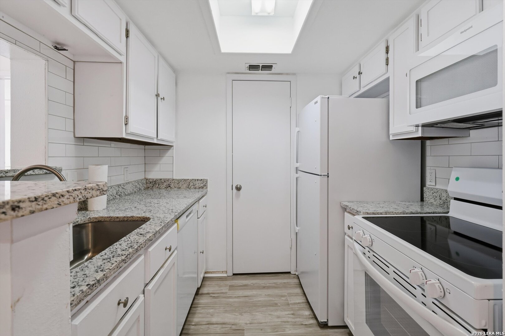 Welcome to this beautifully updated 1-bedroom, 1-bath condominium located on the third floor, offering both comfort and convenience in a prime San Antonio location. This well-maintained unit is ideally situated just minutes from major highways, shopping centers, dining, and the airport, making everyday living effortless. The interior features fresh paint throughout, new laminate flooring, granite countertops in both the kitchen and bathroom, brand-new kitchen appliances, and a recently installed water heater. The living room is highlighted by a cozy fireplace, creating a warm and inviting space perfect for relaxing evenings at home. Residents also enjoy access to the community pool, ideal for leisure and social gatherings, along with beautifully maintained grounds that provide a pleasant outdoor setting. Schedule your private showing today.