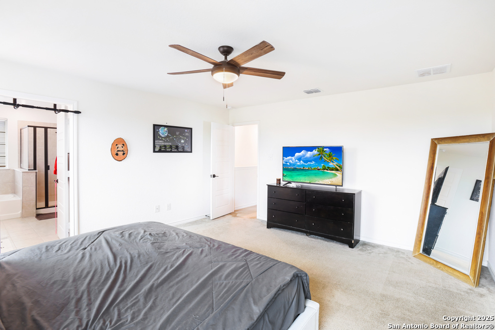 OPEN HOUSE = Sunday, 11-09, 1:00-3:00 p.m. = Motivated Seller - Assumable VA Loan at an incredible 2.875 (for qualified buyers)! This well-maintained 3 bedroom, 2.5 bathroom home in West San Antonio offers both value and comfort with a spacious open layout and community amenities that include a pool, playground, and basketball court. The bright interior features a generous kitchen with bar seating, abundant cabinetry, and ample countertop space - perfect for both cooking and entertaining. Upstairs, all bedrooms are thoughtfully arranged around a versatile loft that can serve as a home office, playroom, or media space. The primary suite provides a relaxing retreat with an en suite bathroom that includes a separate tub and shower, while the additional bedrooms offer plenty of room for family or guests. Outside, the large backyard has a covered patio and provides endless potential to create your own private oasis - plus this backs up to a farm and you'll have no neighbors behind you. Conveniently located near top-rated schools and with easy access to Loop 1604, this home delivers the perfect balance of modern living, community connection, and exceptional opportunity for those seeking a low-interest VA loan.