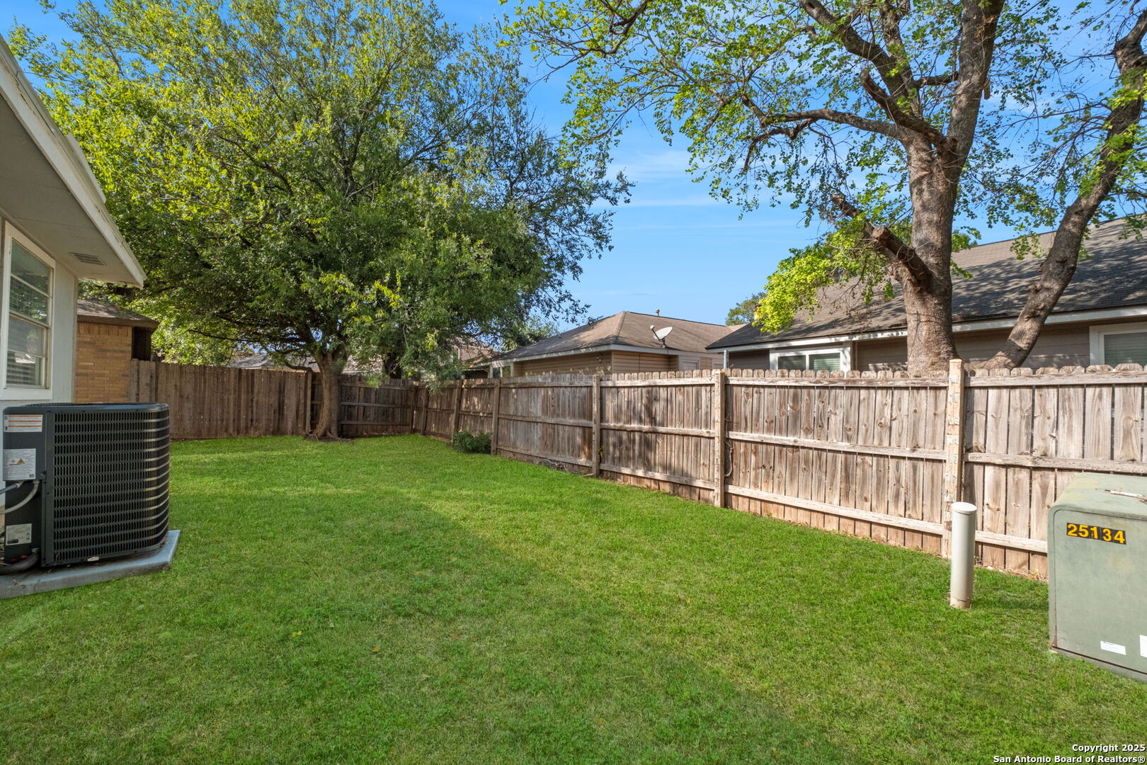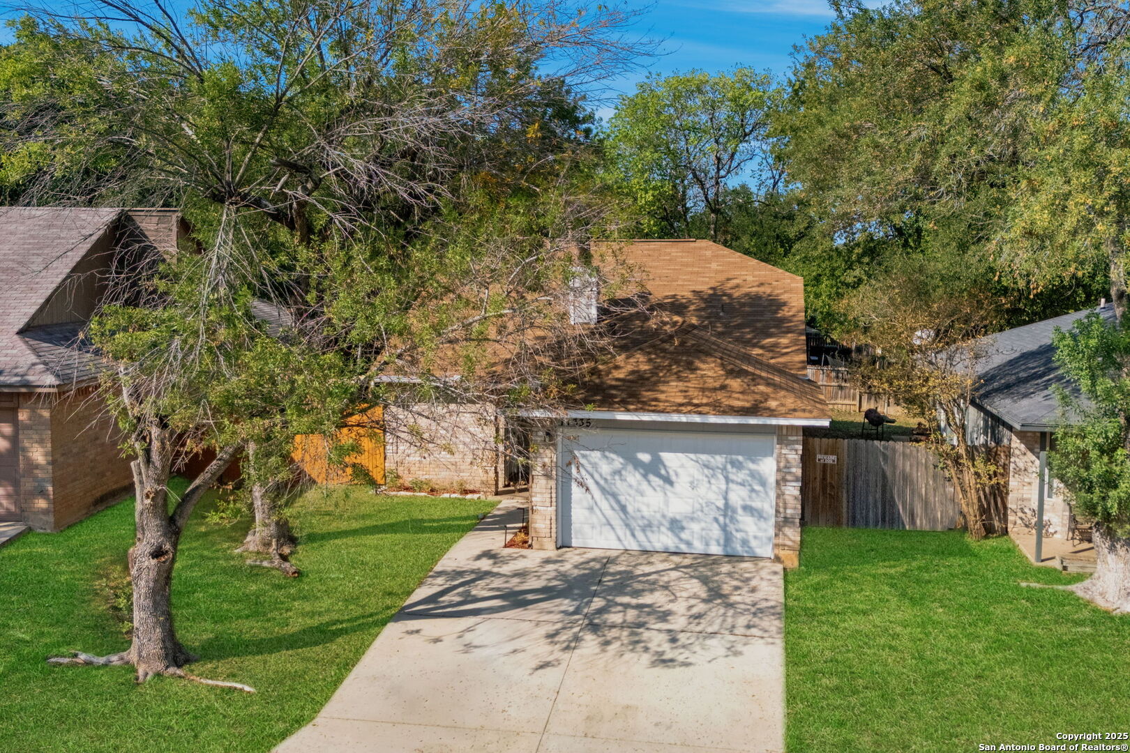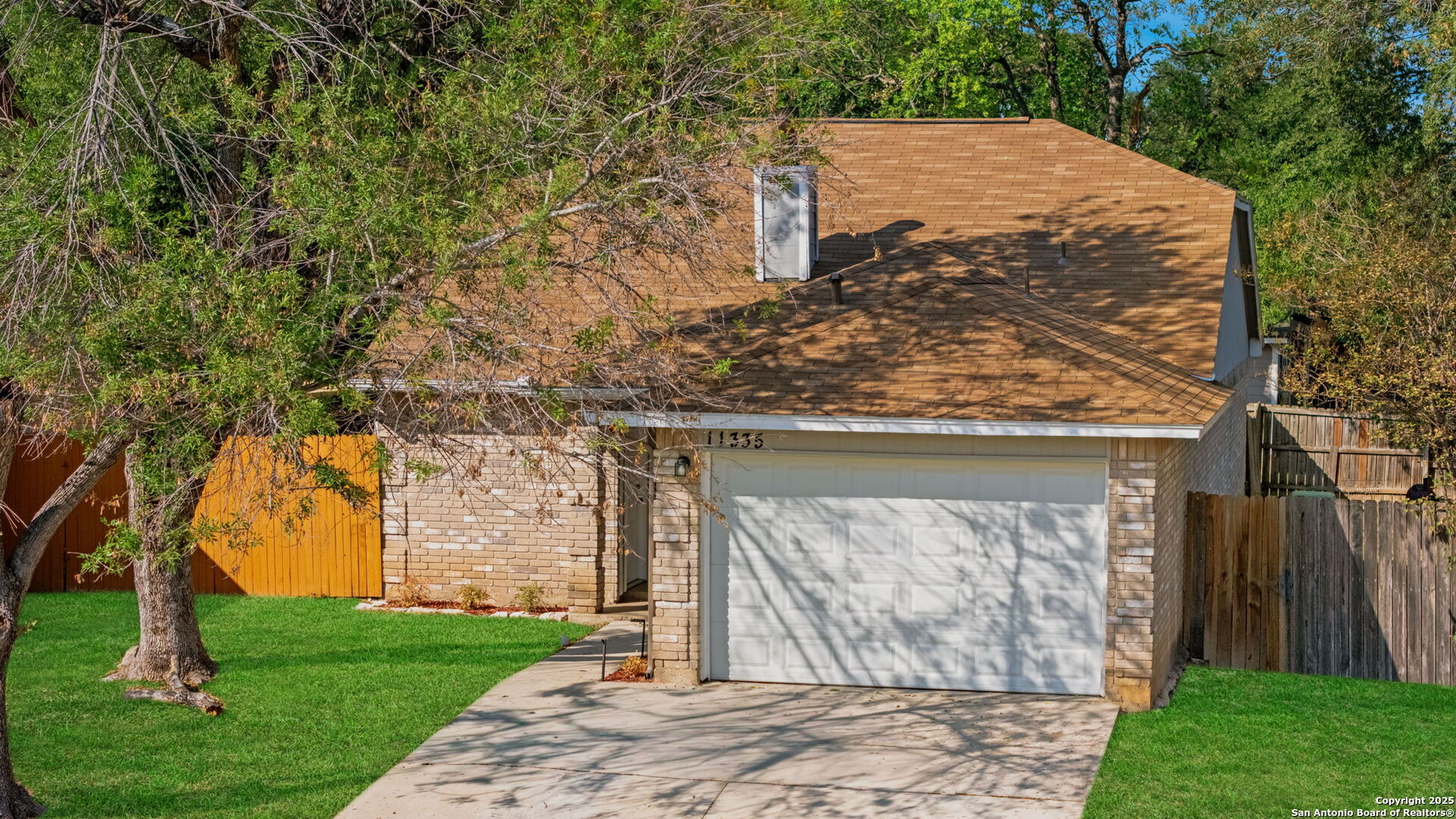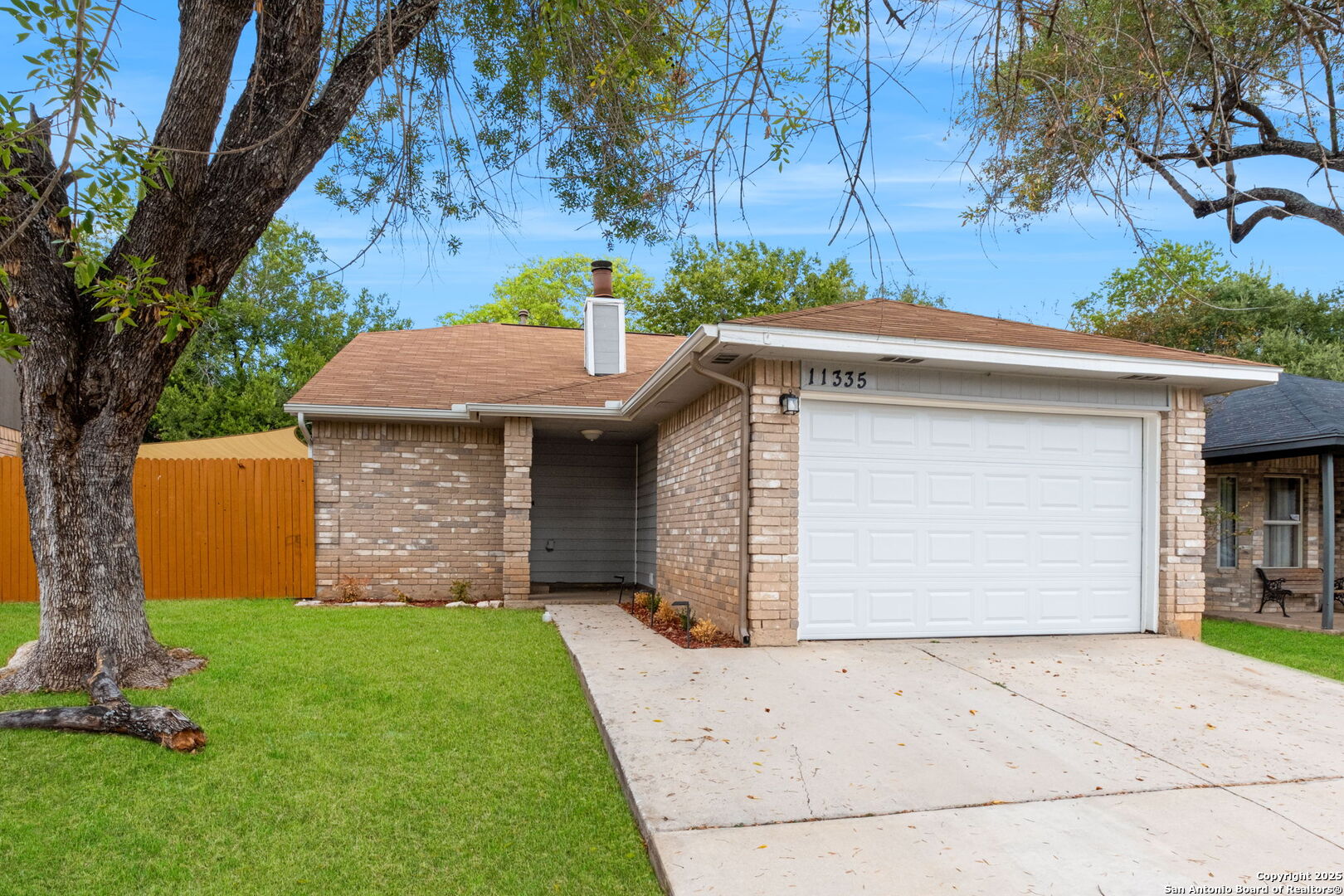 This well-maintained home in the Big Country neighborhood with no HOA features vaulted ceilings that create an open and airy feel throughout the living and dining areas. The living room includes a beautiful brick fireplace as a focal point, while large bay windows in both the living area and primary room invite in abundant natural light. The kitchen showcases white cabinetry and a tile backsplash, complemented by stainless steel appliances that were installed recently. The attached garage includes painted epoxy-finished floors that add durability and polish. Step outside to the covered patio and enjoy the low-maintenance backyard enclosed by a privacy fence, an ideal space for casual outdoor living or entertaining. Conveniently located just minutes away from Lackland Air Force Base, with easy access to Loop 1604 and major highways. Also a quick drive to SeaWorld, shopping, dining, and recreation.