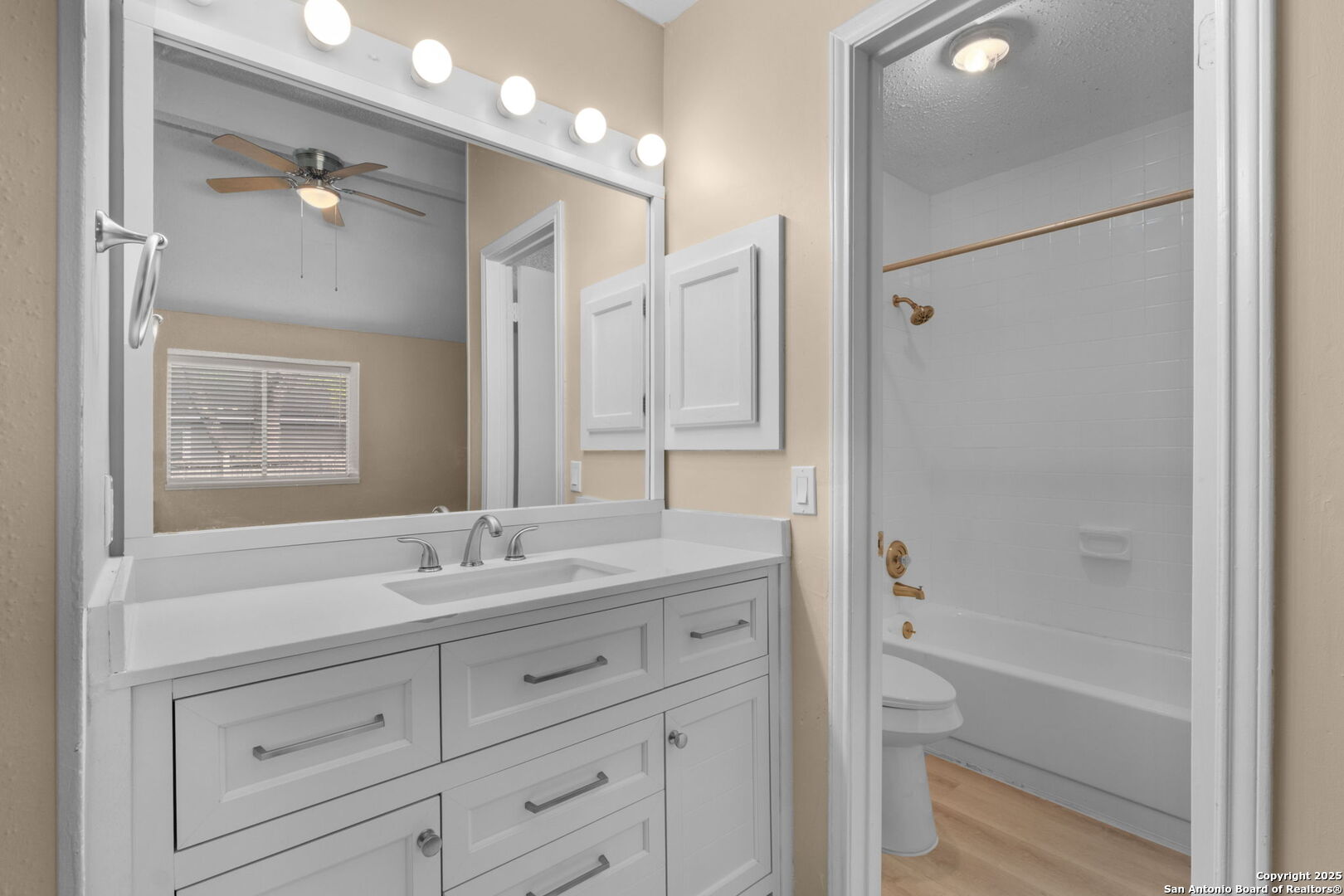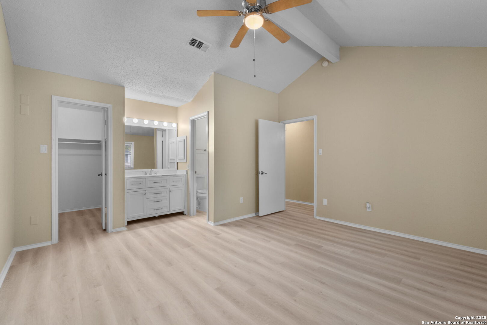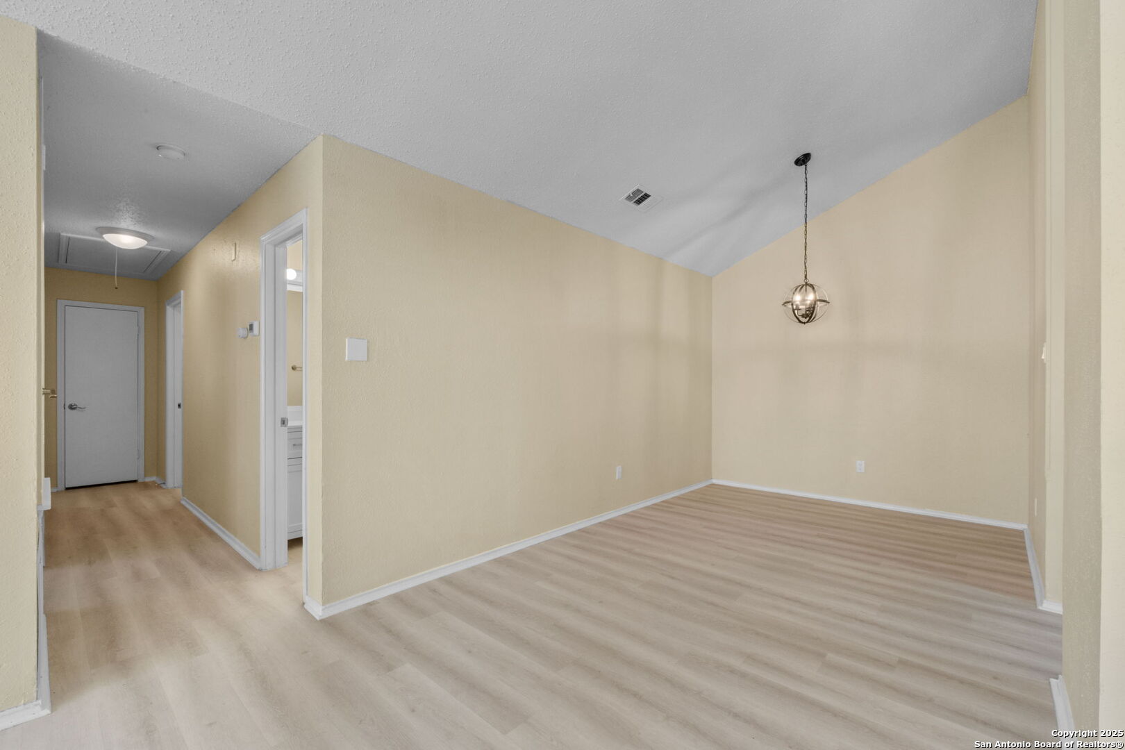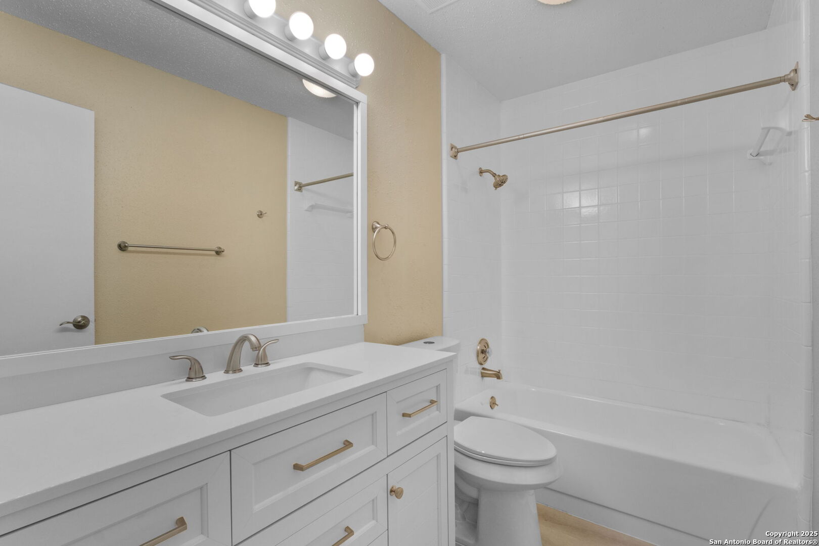 This well-maintained home in the Big Country neighborhood with no HOA features vaulted ceilings that create an open and airy feel throughout the living and dining areas. The living room includes a beautiful brick fireplace as a focal point, while large bay windows in both the living area and primary room invite in abundant natural light. The kitchen showcases white cabinetry and a tile backsplash, complemented by stainless steel appliances that were installed recently. The attached garage includes painted epoxy-finished floors that add durability and polish. Step outside to the covered patio and enjoy the low-maintenance backyard enclosed by a privacy fence, an ideal space for casual outdoor living or entertaining. Conveniently located just minutes away from Lackland Air Force Base, with easy access to Loop 1604 and major highways. Also a quick drive to SeaWorld, shopping, dining, and recreation.